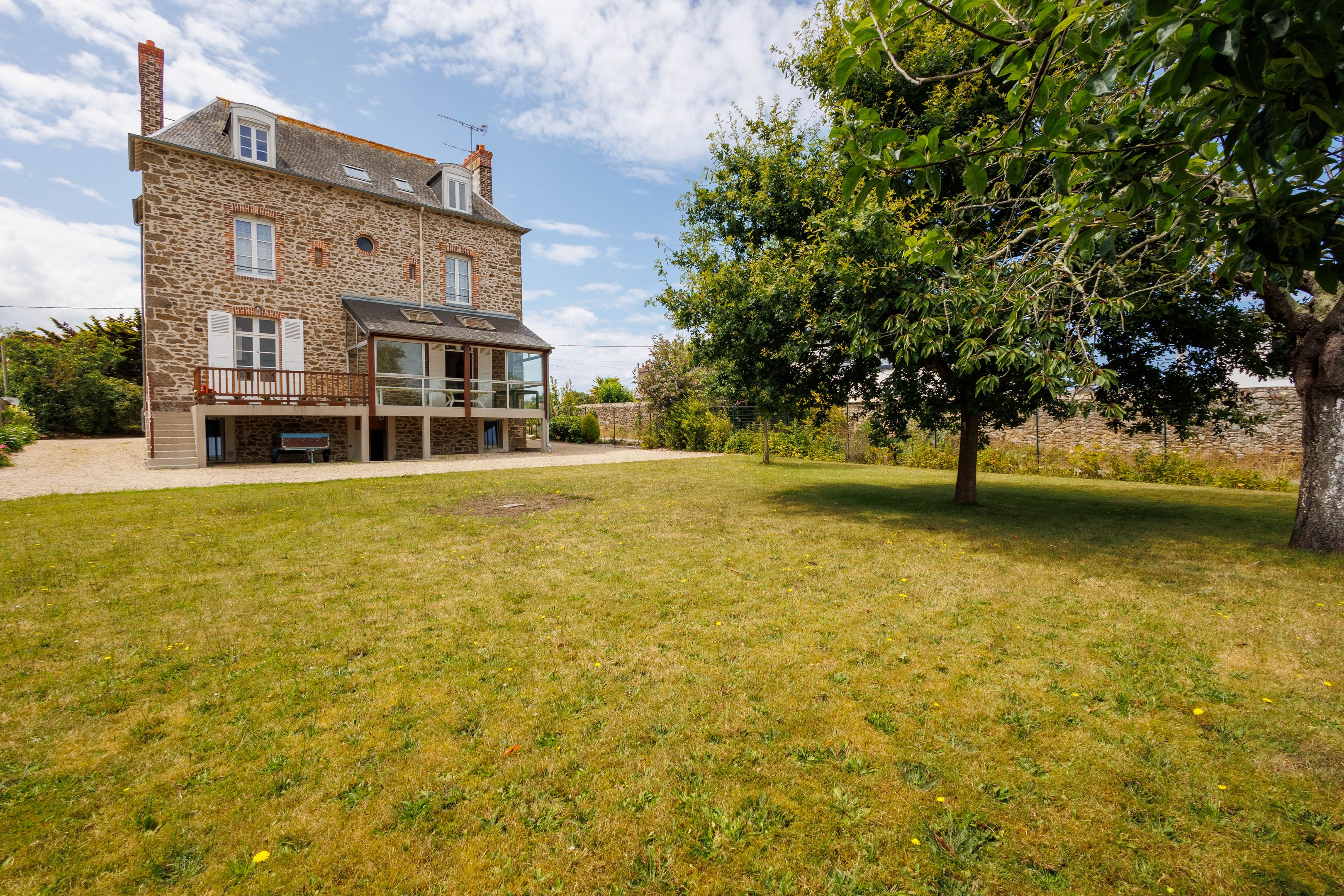 VENDU par Breteuil - Villa "La Chênaie" - À proximité de Saint-Énogat et des écoles. Sur un terrain de 1 162m², très belle villa dinardaise du XIXème siècle de 204m² bénéficiant de prestations de qualité, d’un excellent plan et d’agréables extérieurs. Galerie d’entrée, séjour - salle à manger avec parquet-moulures-cheminée ouvrant sur un jardin d’hiver de 16m², cuisine avec accès à une terrasse, salon ou chambre, salle d'eau. Aux étages : 8 chambres (dont une avec aperçu mer), 2 salles de bains, 2 toilettes séparées. Sous-sol complet (cuisine d’été, buanderie, cave à vins, garage à vélos). Cour en gravier et paisible jardin avec arbres fruitiers.
