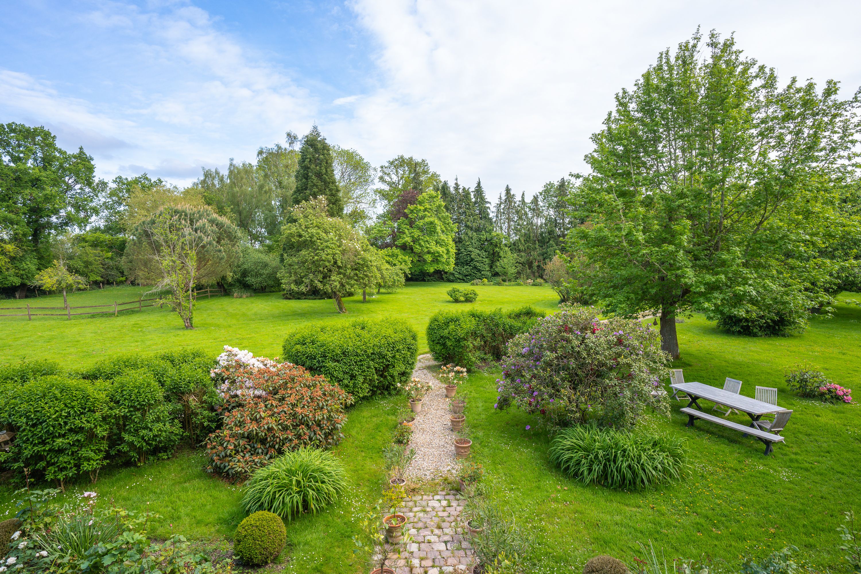 À 7 km de Honfleur et 20 km de Deauville, dans un environnement privilégié à l'abri des regards, belle propriété historique édifiée sur plus de 2 hectares de terrain clos, arboré et piscinable. Maison principale datant de 1751, ancien prieuré, de 300 m² habitables sur 3 niveaux : entrée, salle à manger avec cheminée, cuisine indépendante équipée, toilettes invités, salon avec cheminée, petit salon, bureau, 4 chambres avec placards et cheminée dont une suite parentale et une avec salle d'eau, salle de bains, toilettes indépendantes, grand plateau de 60 m² aménagé en dortoir avec salle de bains et toilettes. Accessible par l'extérieur : chaufferie/buanderie. En dépendance, un pressoir offrant un appartement T3 et une partie à réhabiliter ; une dépendance avec double garage, atelier et stockage ; une longère à rénover. Jardin plat et paysagé avec roseraie et paddock.