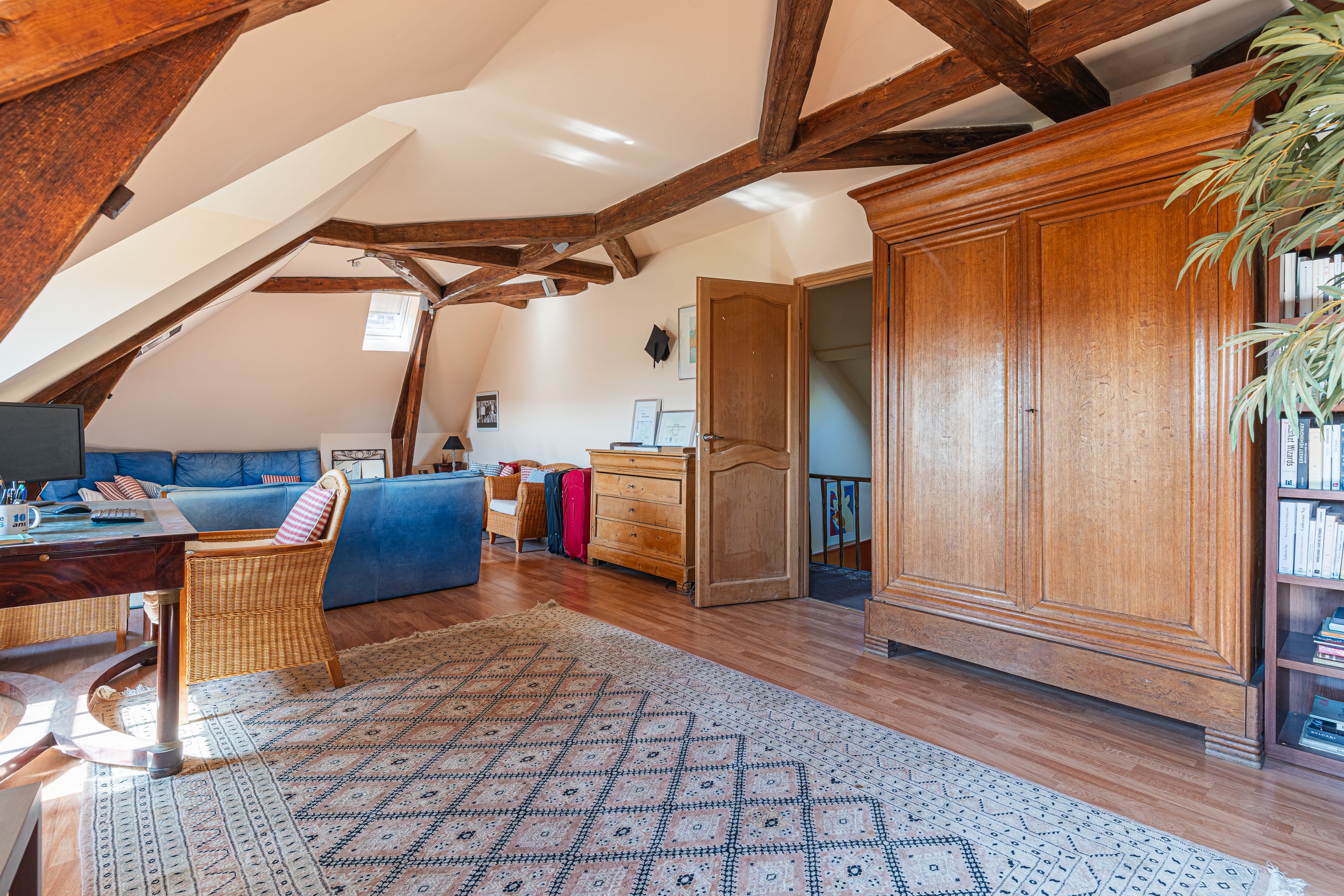 À 5min du centre-ville de Villers-sur-Mer, magnifique propriété composée de deux maisons édifiées sur un terrain clos et arboré de 2749m2. La maison principale de 200m2 comprend au rez-de-chaussée : entrée, séjour avec cheminée, salle à manger, cuisine ouverte aménagée et équipée, toilettes invitées ; au 1er étage : quatre chambres dont une suite parentale avec salle de bains, salle d’eau, toilettes indépendantes ; au 2ème étage : deux chambres, salle d’eau. Cave en sous-sol. La longère d’environ 80m2 : pièce à vivre ouverte sur la terrasse, cuisine, deux chambres, salle d’eau avec toilettes. Garage, débarras, abri de jardin.
