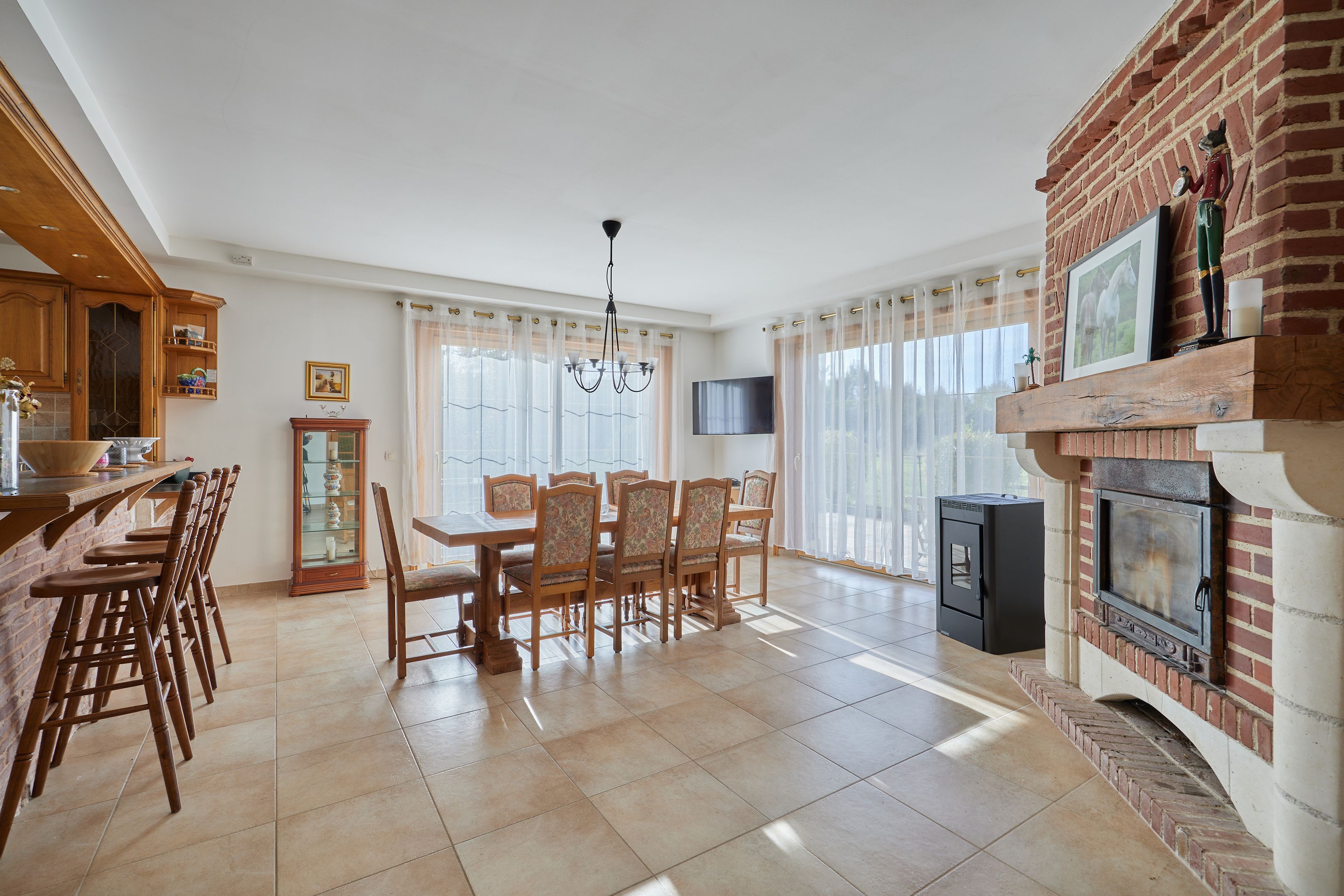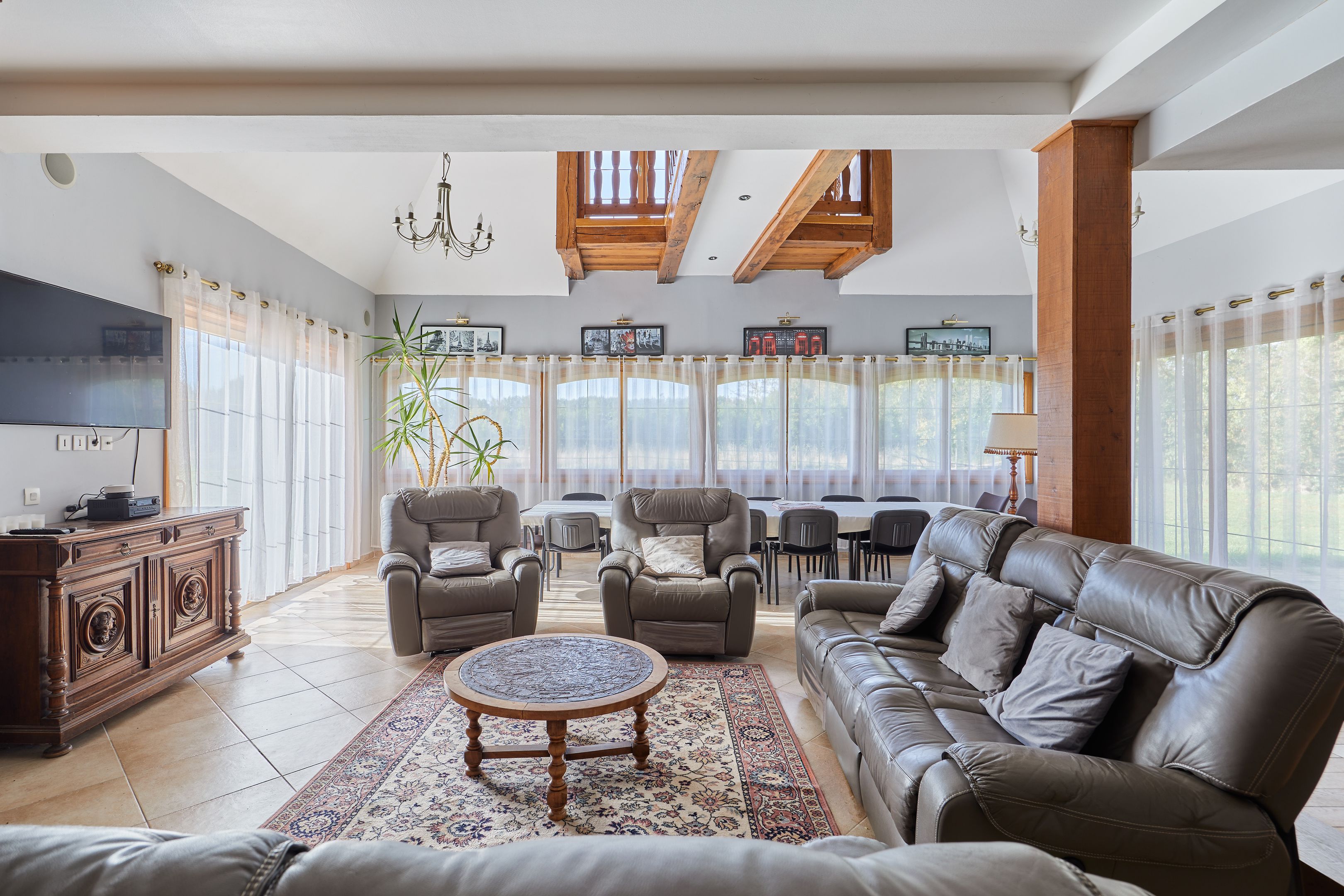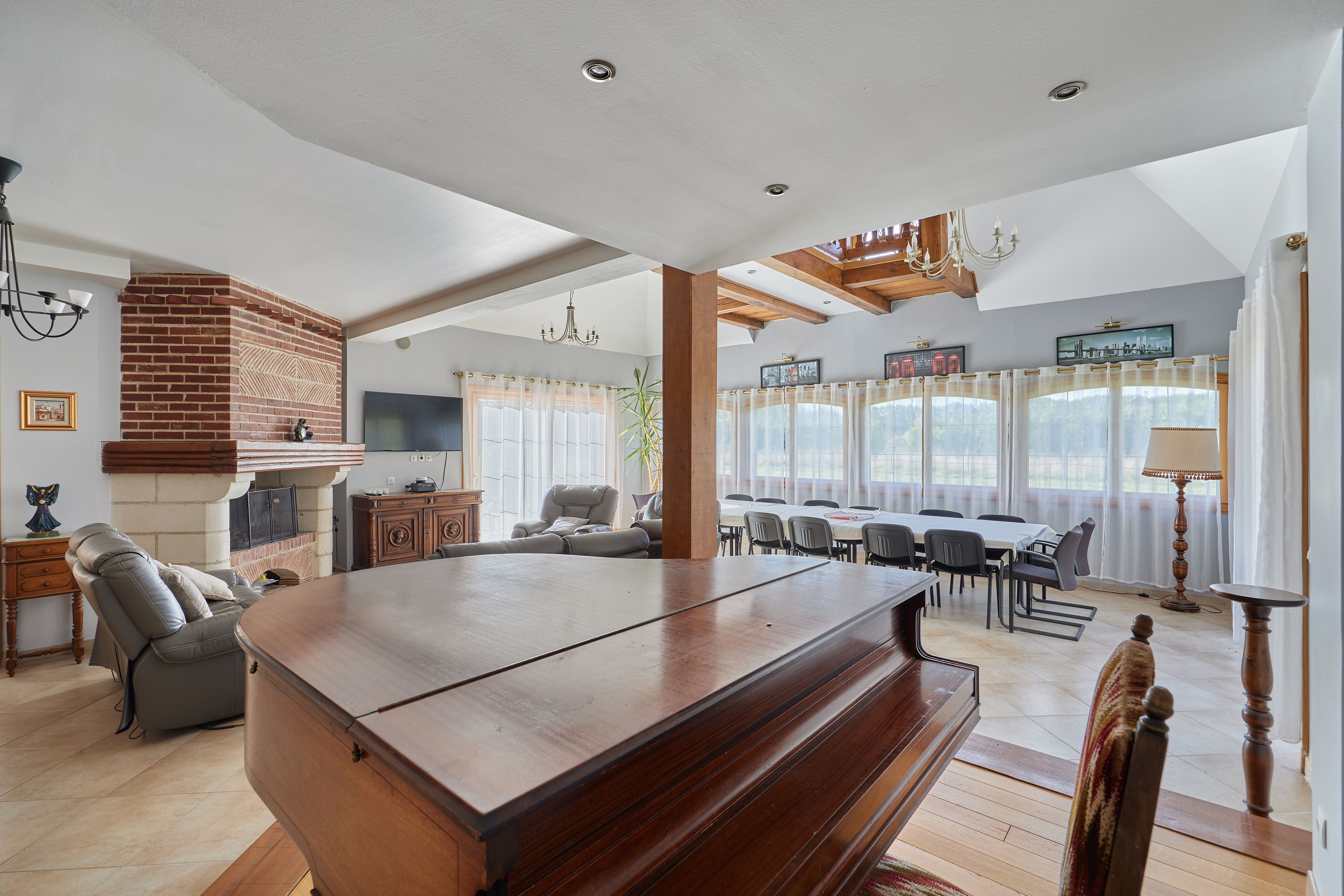 À 10min de Deauville-Trouville, belle propriété normande aux volumes généreux édifiée sur un terrain plat d'environ 6000m2. Au rez-de-chaussée : entrée, salon avec cheminée, salle-à-manger avec poêle, cuisine ouverte, bureau, chambre avec salle d'eau et toilettes, toilettes invités. Au 1er étage : mezzanine desservant 6 chambres chacune avec leur salle d'eau et balcon, deux toilettes indépendants. Au dernier étage : salle de jeux, deux chambres. Sous-sol complet d'environ 200m2 avec espace buanderie et double garage.