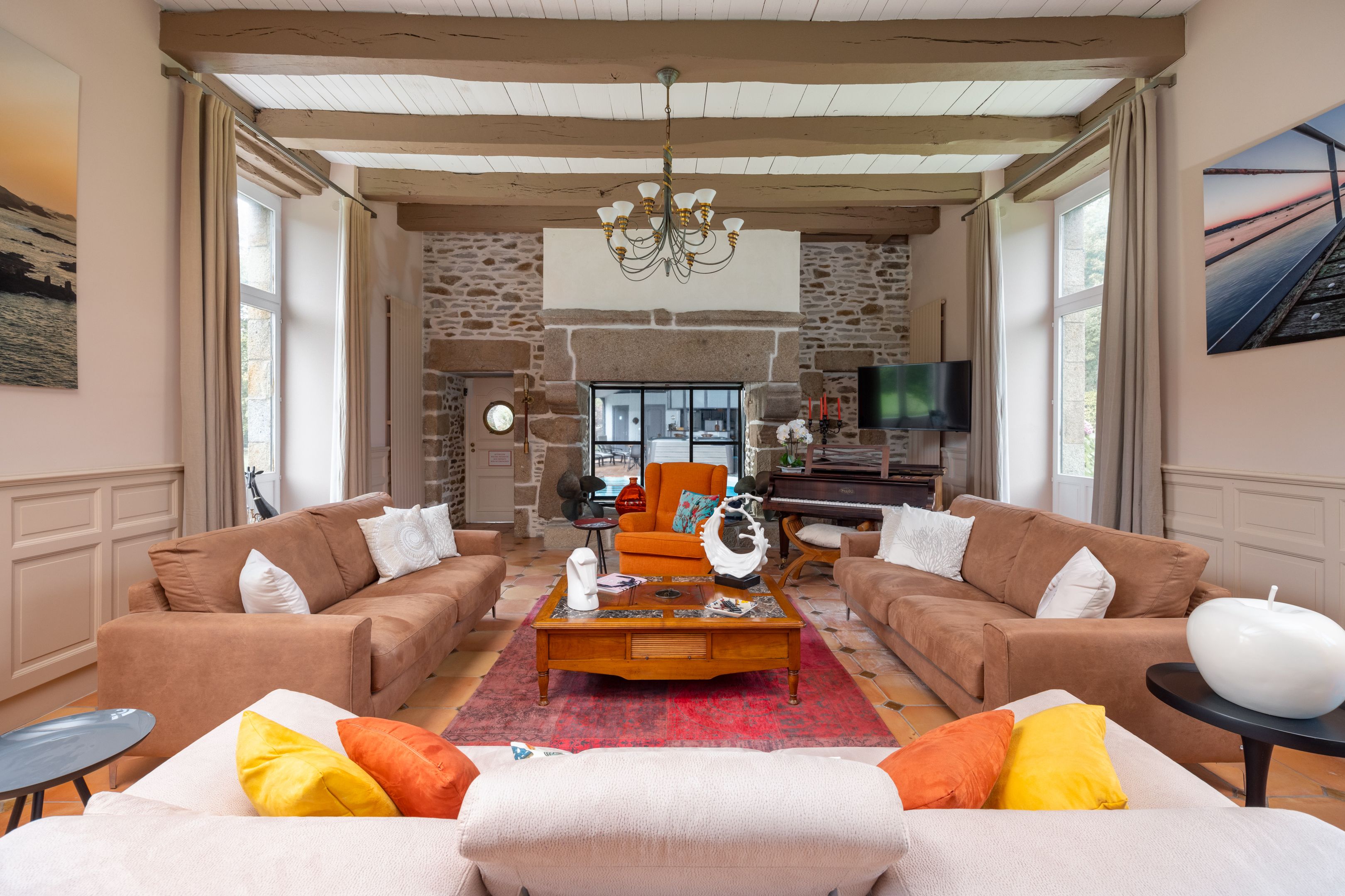 Galerie d'entrée, vaste salle de réception baignée de lumière, magnifique salon avec cheminée, cuisine entièrement aménagée et équipée, espace aquatique composé d'une piscine, sauna et spa. Aux étages : 6 vastes suites avec salons et salle de bains. Enfin charmante dépendance avec salon, chambre et salle d'eau. Possibilité d'exploitation en chambre d'hôtes. Dossier photos complet sur demande.