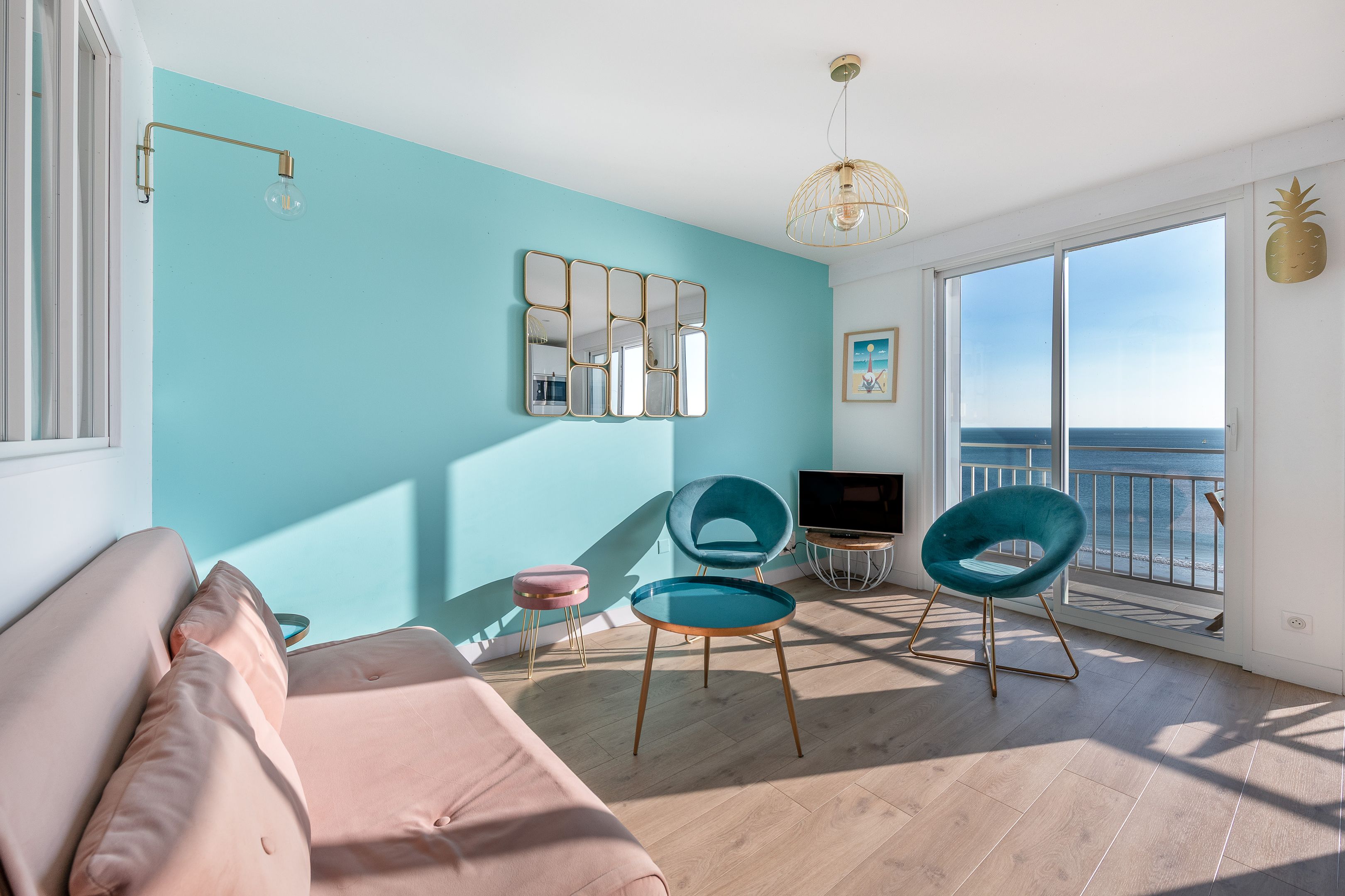 Face mer dernier étage. A proximité des commerces de l'avenue Lajarrige dans une résidence sécurisée, très bel appartement entièrement rénové d'environ 37m², situé au dernier étage desservi par ascenseur. Entrée, séjour donnant sur une terrasse face mer, cuisine aménagée et équipée, coin nuit, salle d'eau et toilettes séparées. Local vélo.Pied à terre et/ou excellente rentabilité locative.