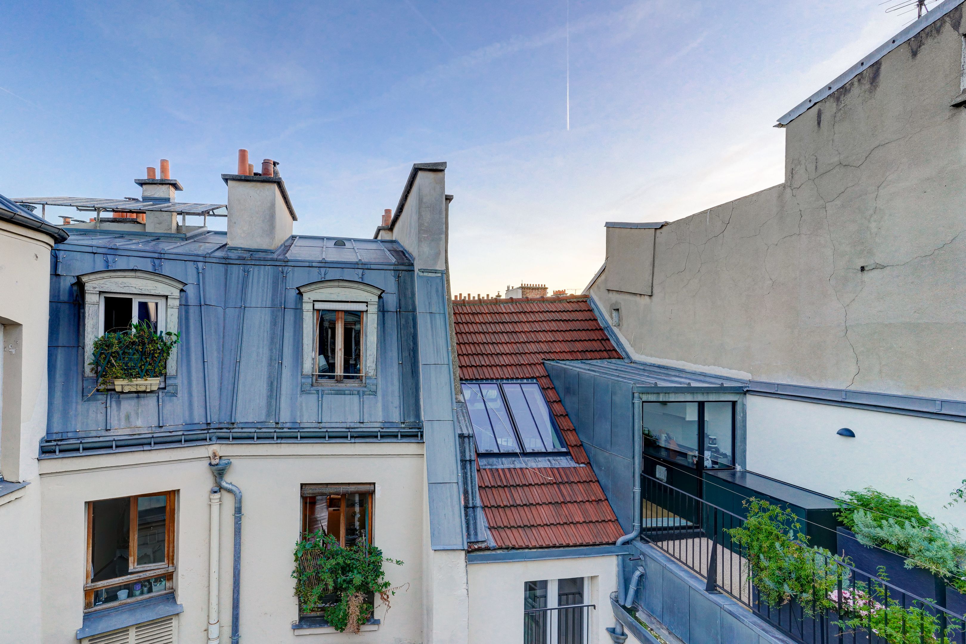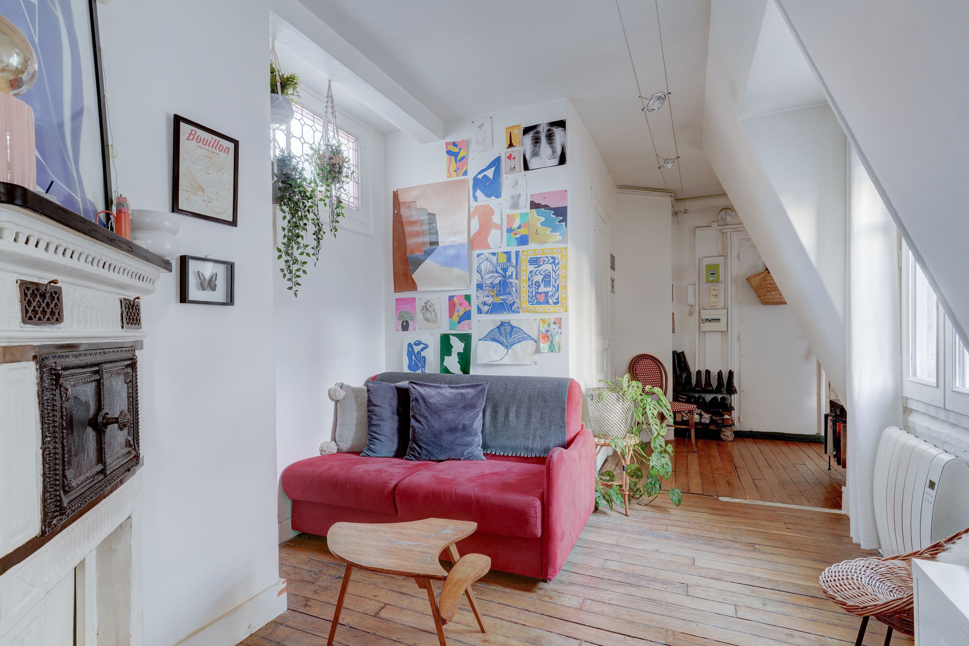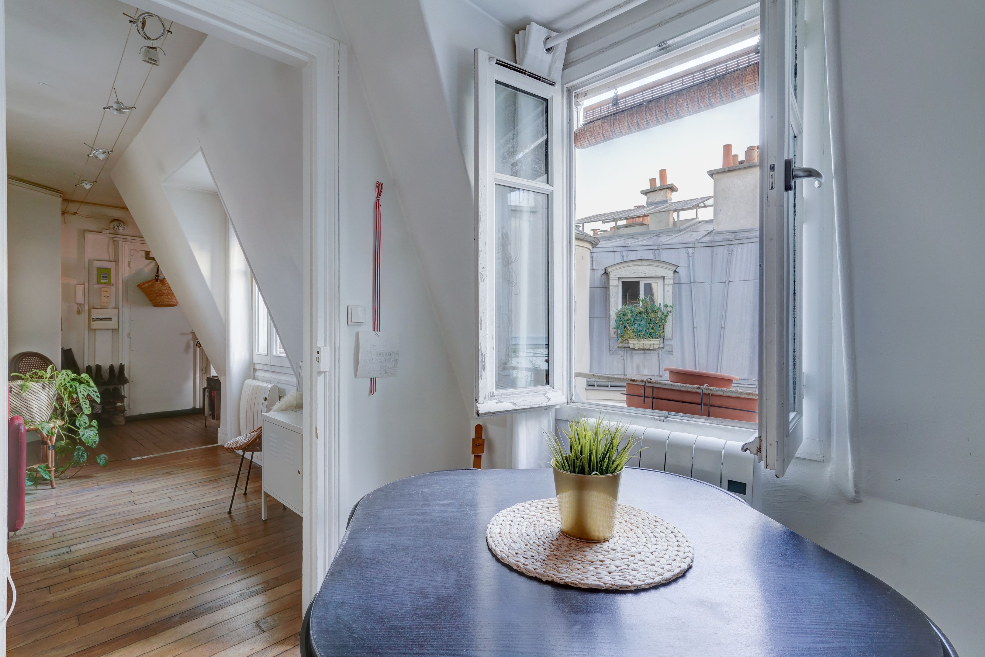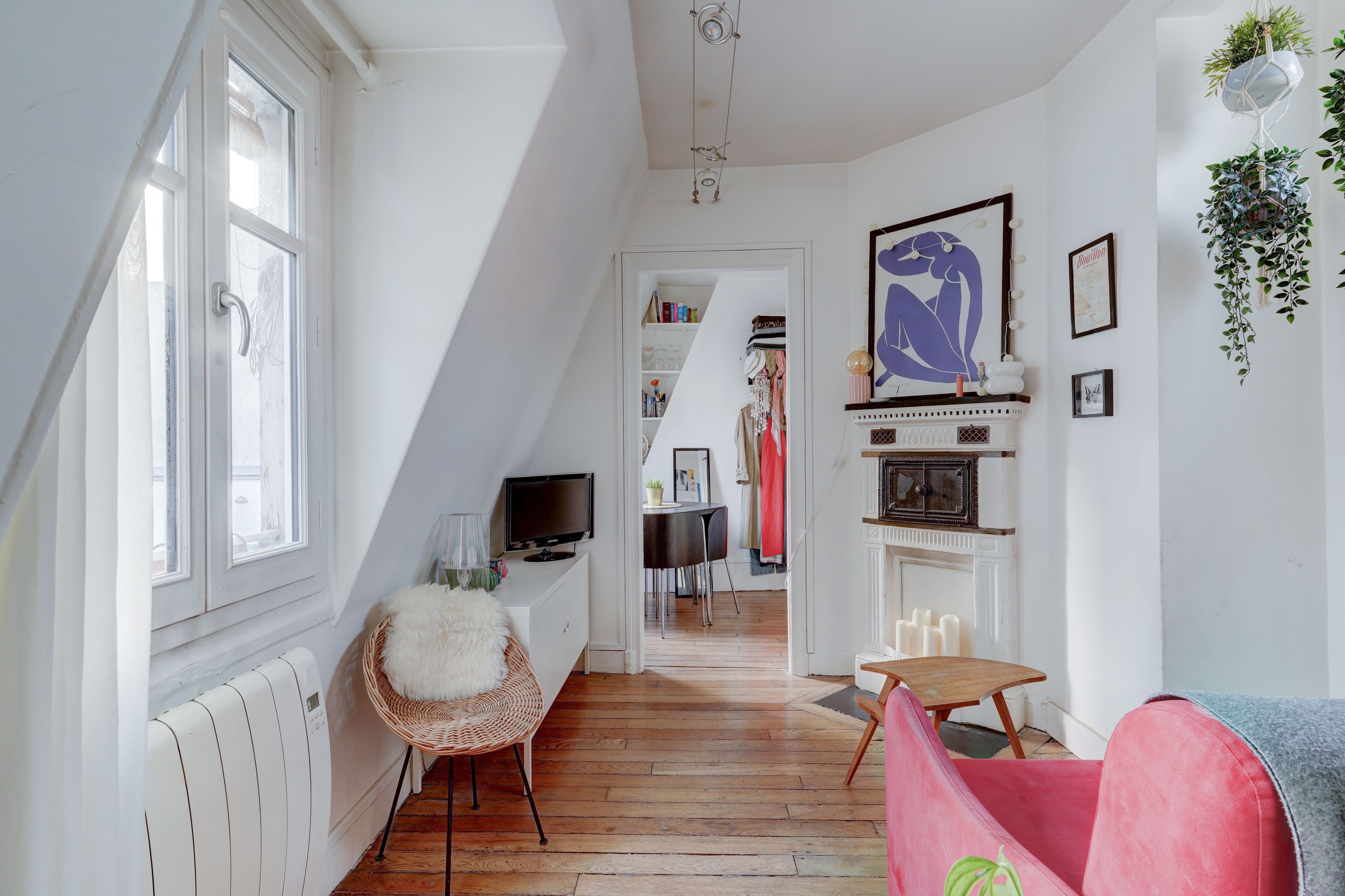 Immeuble pierre de taille, charmant appartement de 26,53m² loi Carrez (30,14 au sol), situé au 5ème et dernier étage, desservi par ascenseur. Entrée, séjour exposé sud, salle à manger avec cheminée, cuisine séparée, une chambre, salle d'eau avec toilettes. Cave saine au sous-sol. Lumineux et ensoleillé, vue sur les toits de Paris, calme, à rénover, beau potentiel.