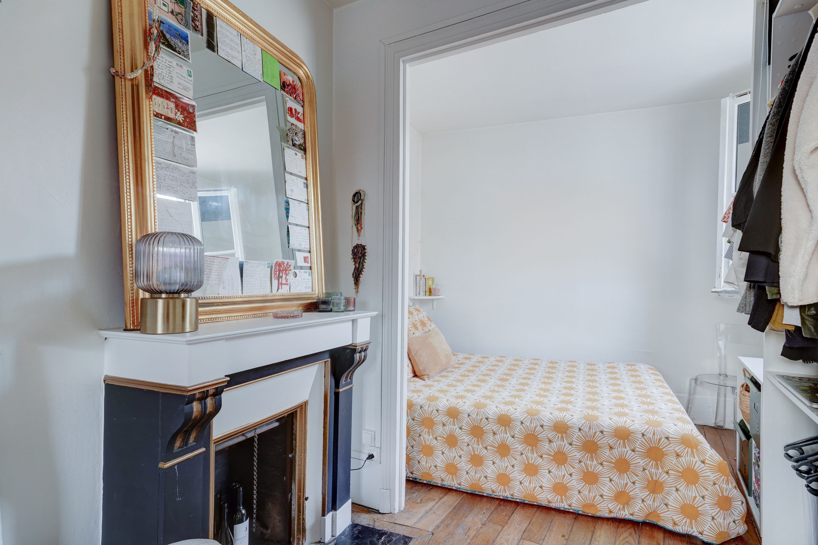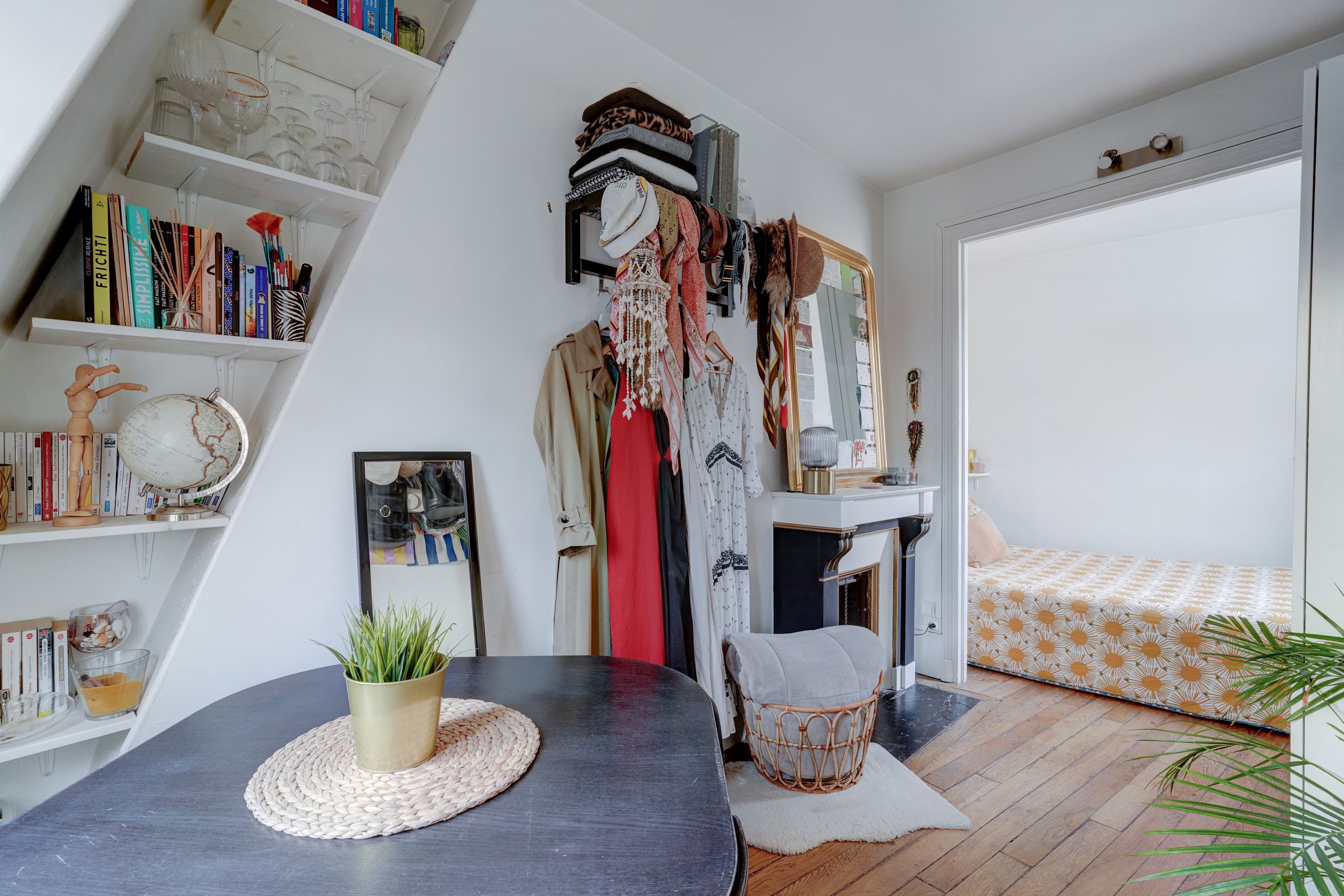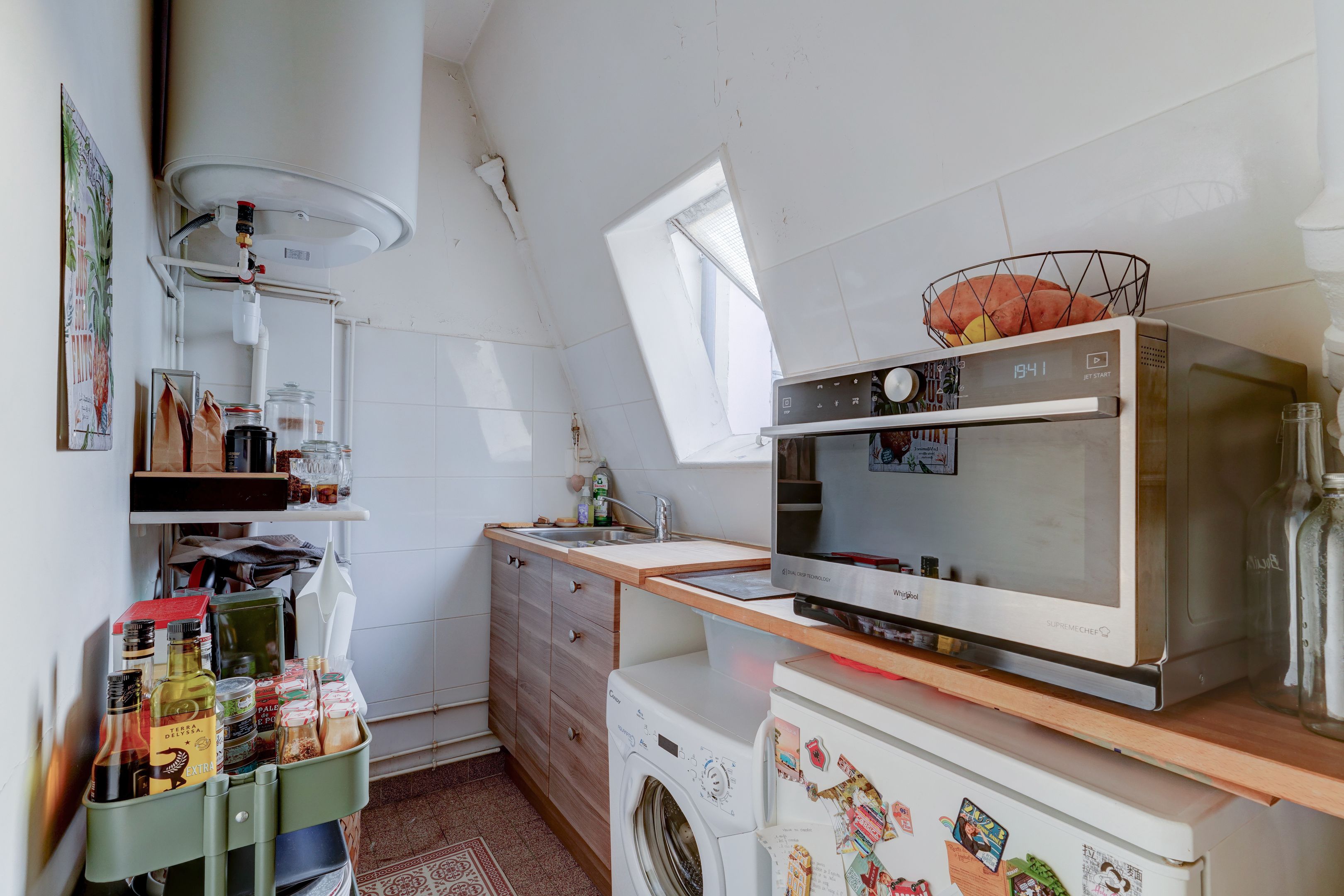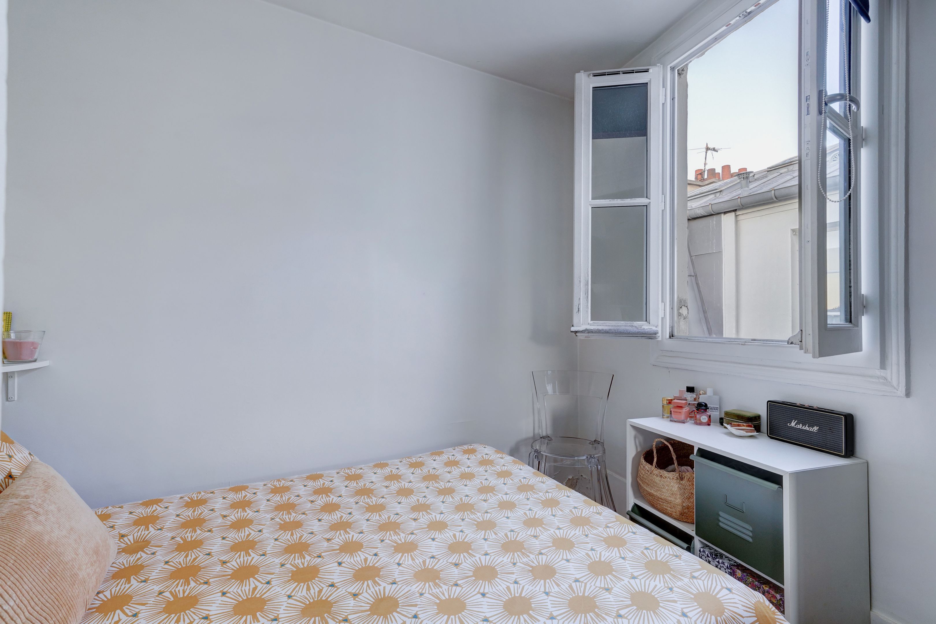 Immeuble pierre de taille, charmant appartement de 26,53m² loi Carrez (30,14 au sol), situé au 5ème et dernier étage, desservi par ascenseur. Entrée, séjour exposé sud, salle à manger avec cheminée, cuisine séparée, une chambre, salle d'eau avec toilettes. Cave saine au sous-sol. Lumineux et ensoleillé, vue sur les toits de Paris, calme, à rénover, beau potentiel.