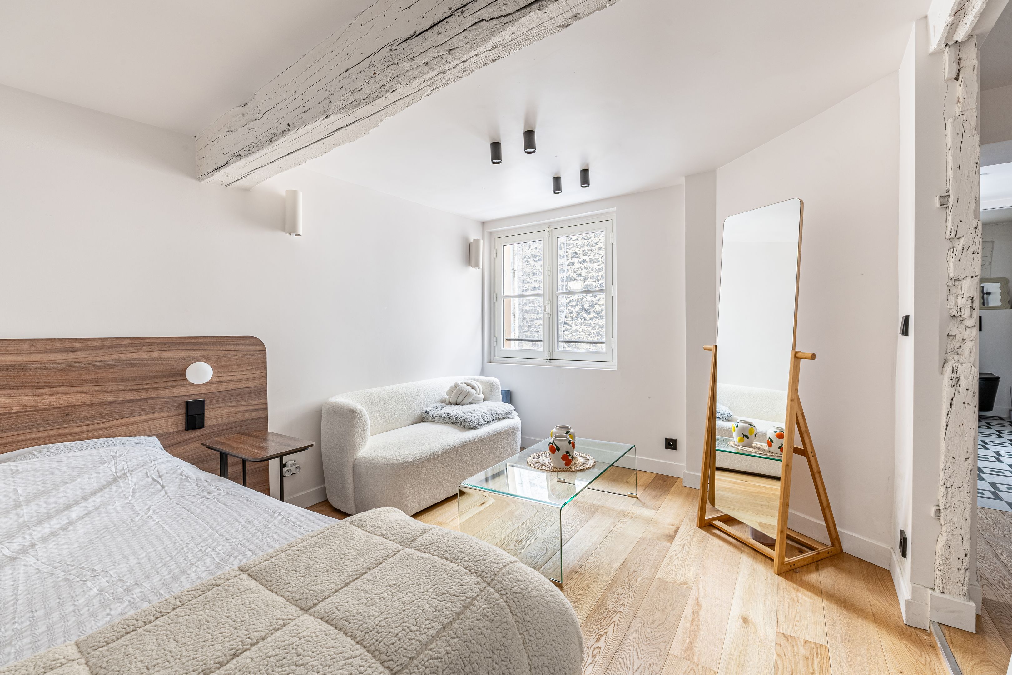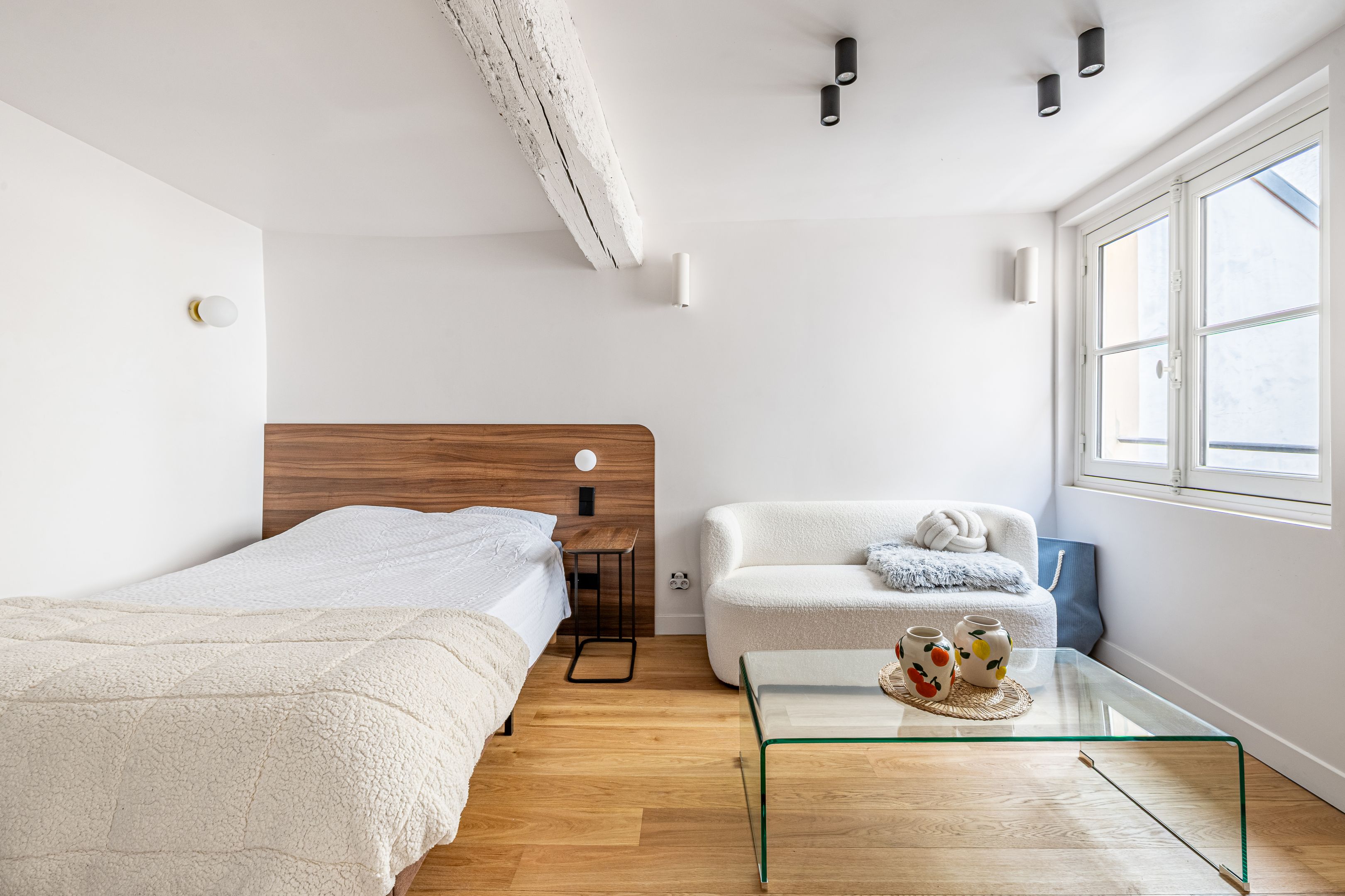 Idéalement situé au pied des commerces de la rue du Bac, au 4ème et dernier étage d'un immeuble du début du 18ème siècle, desservi par escalier, studio entièrement rénové de 22 m² ayant conservé le charme de l'ancien. Pièce à vivre, cuisine équipée et aménagée, salle d'eau avec toilettes.