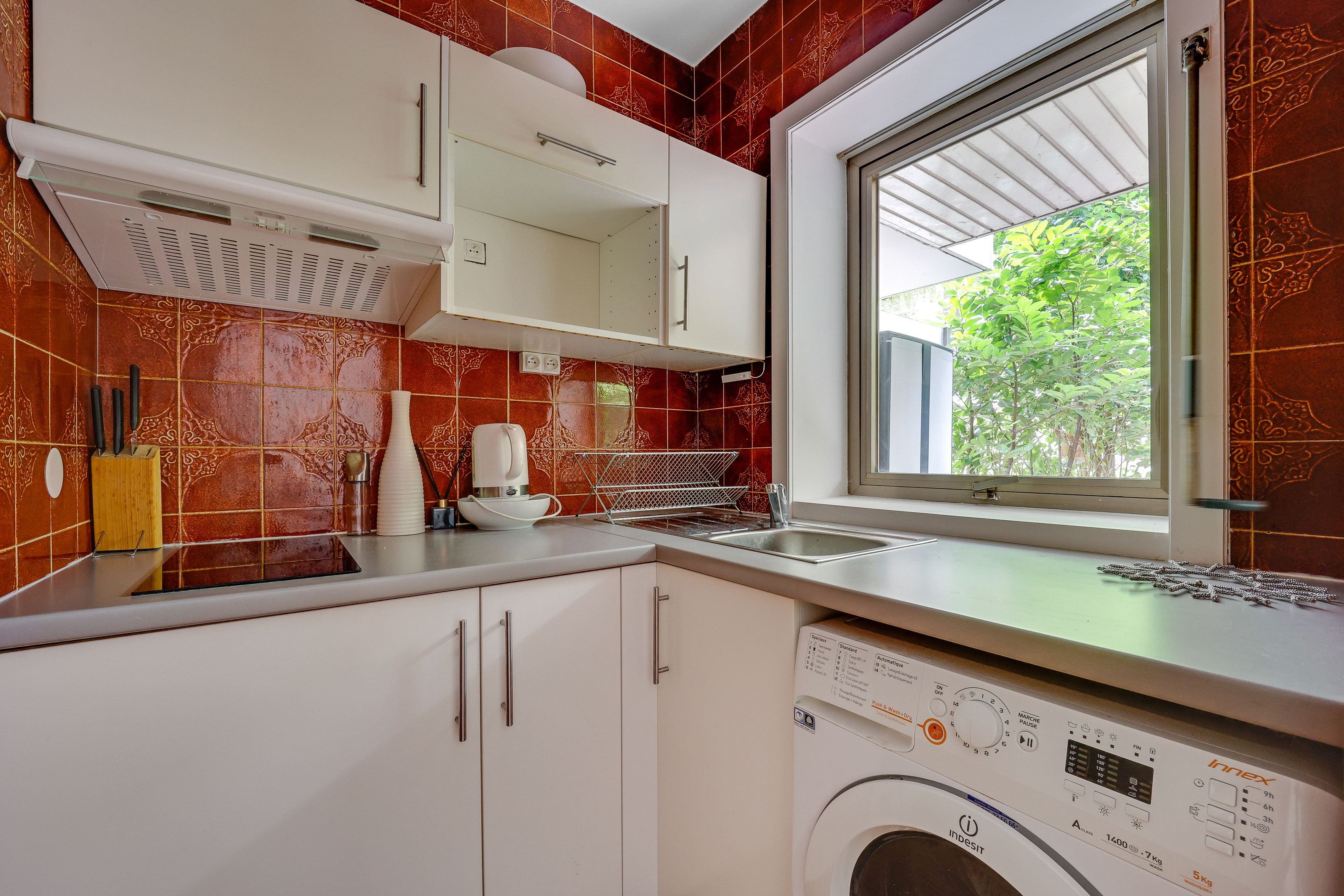 Dans une copropriété semi-récente de bon standing, disposant des services d'une gardienne, un studio de 29m² en rez-de-jardin. Entrée, pièce de vie avec la jouissance d’un jardin de 30m2 de plain-pied, cuisine indépendante, une salle de bains avec un cabinet de toilette.