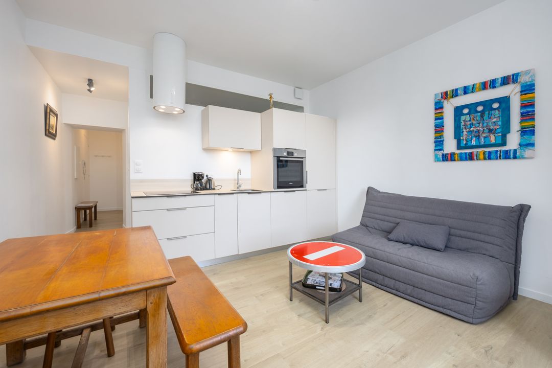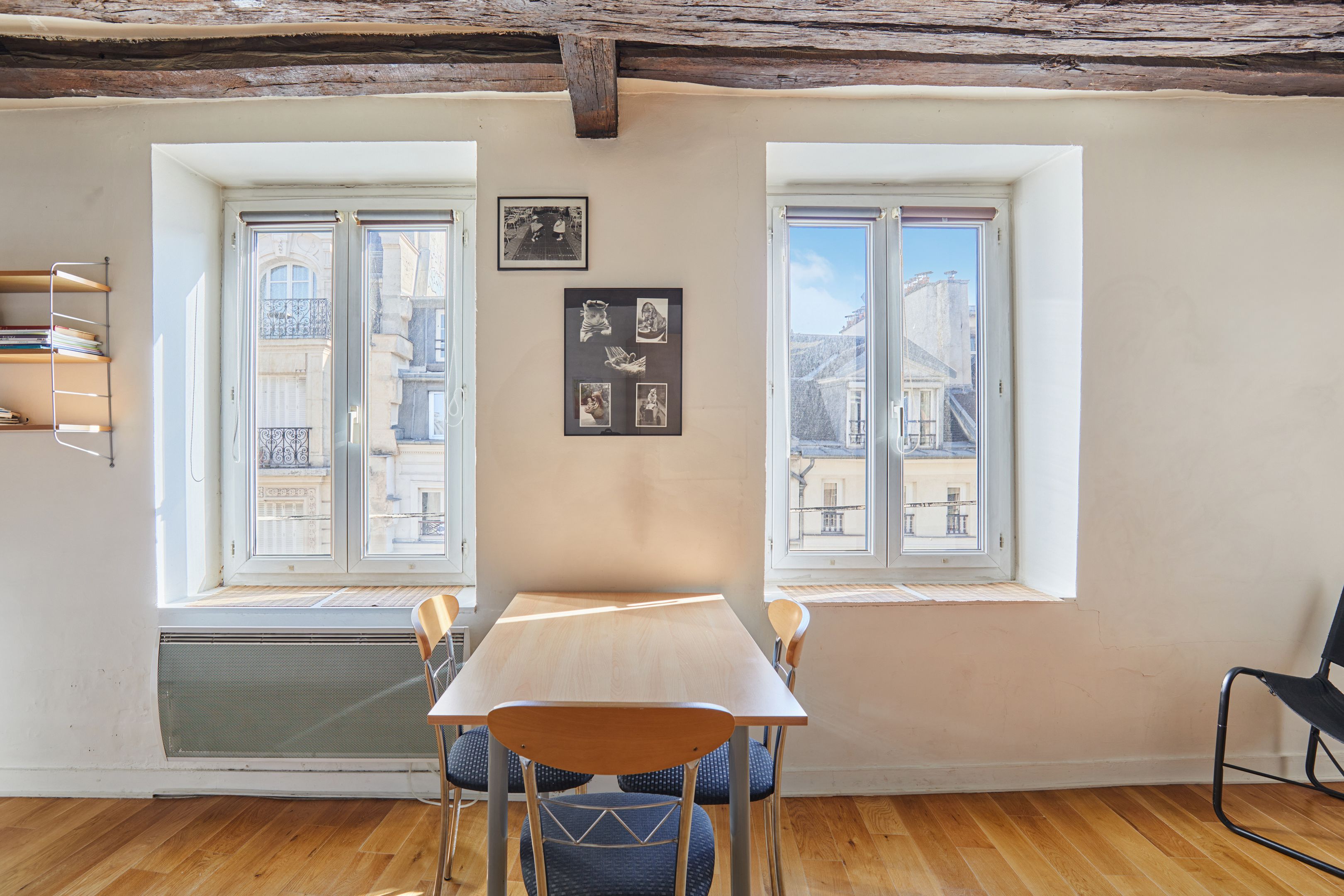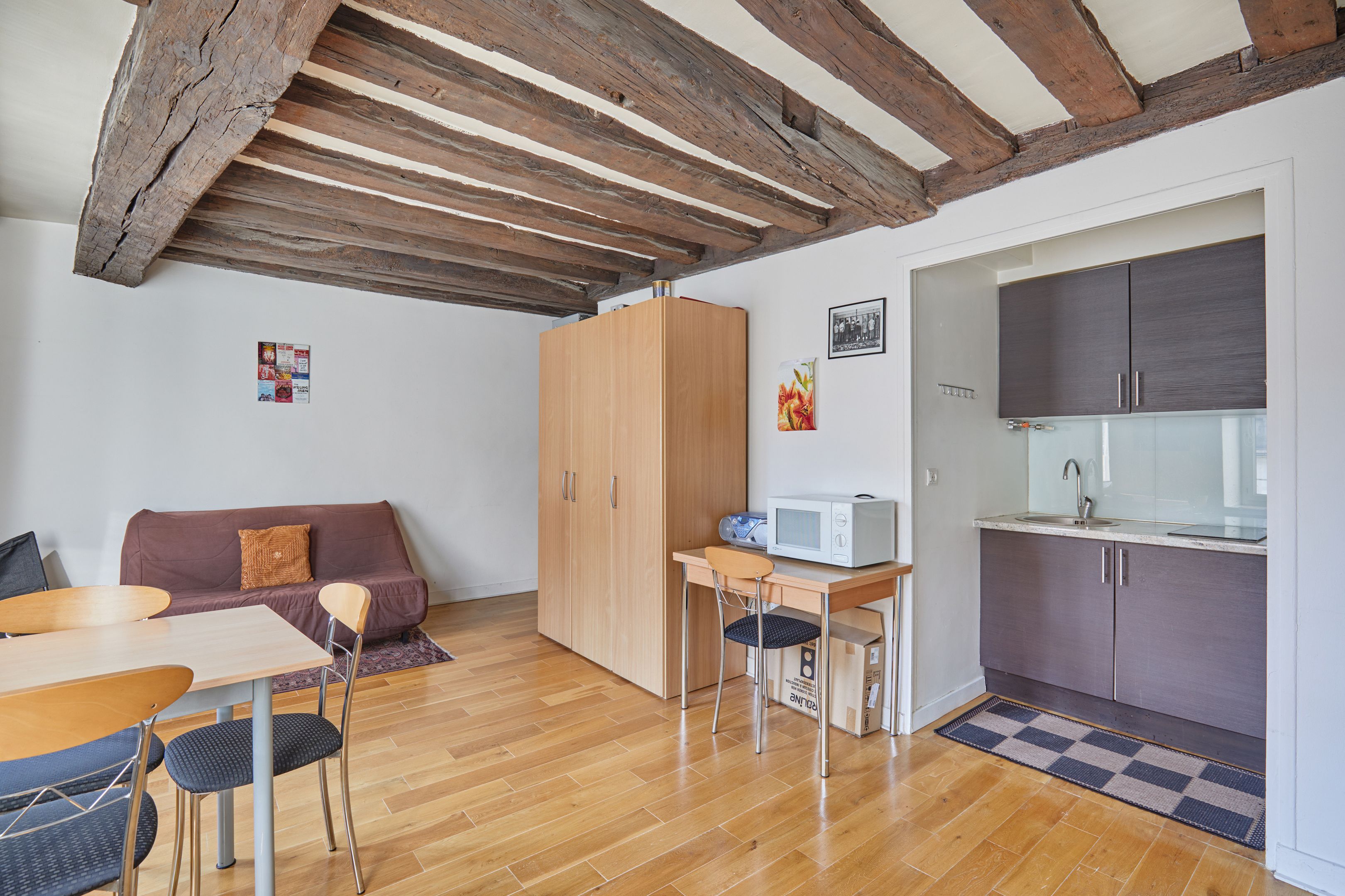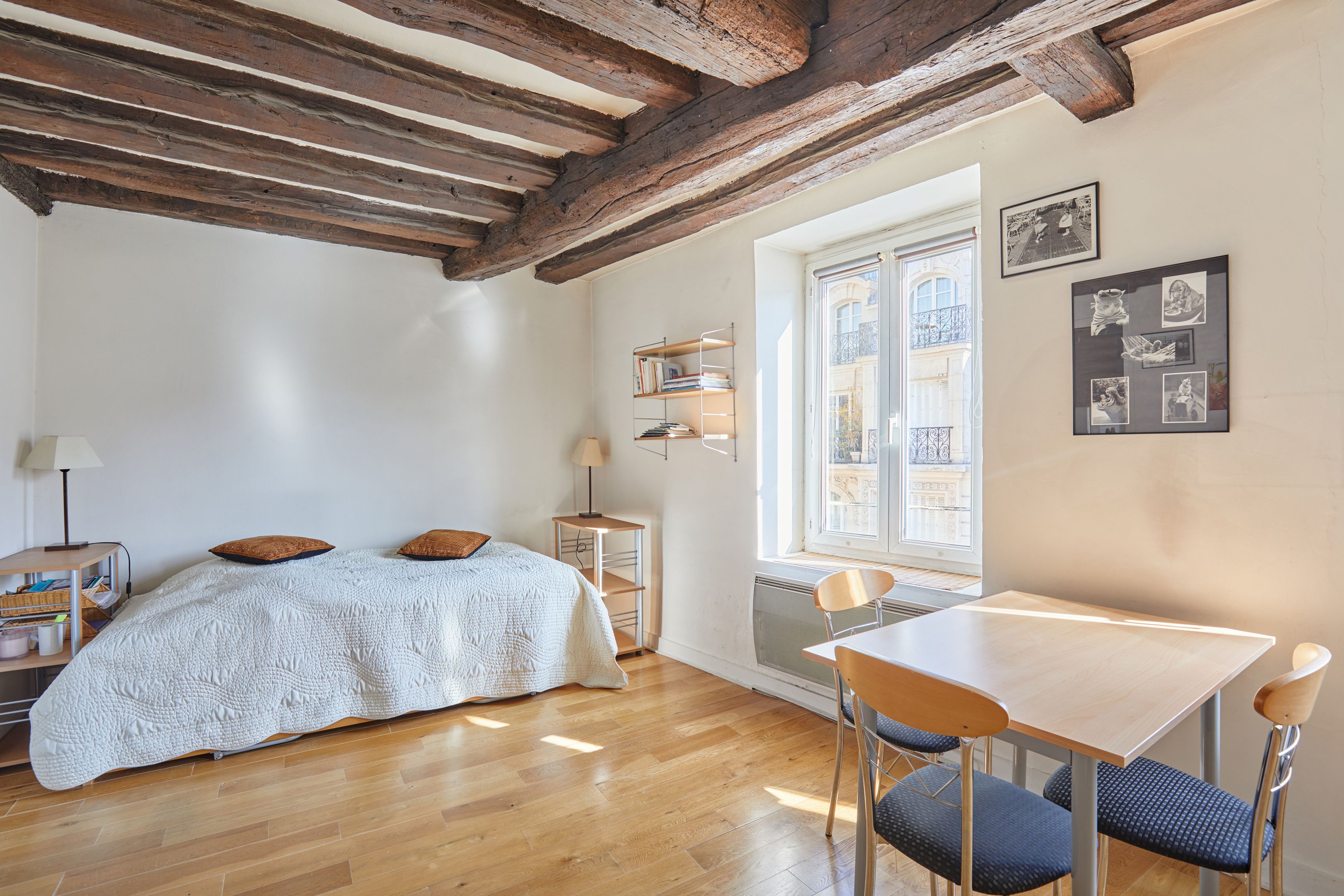 Idéalement situé à deux pas de la place des Victoires et de la rue Montorgueil, au 5ème étage d'un immeuble récemment ravalé, studio très lumineux de 29 m² en bon état général doté d'une petite cuisine et d'une salle d'eau avec toilettes. Parquet et poutres apparentes. Vendu meublé.