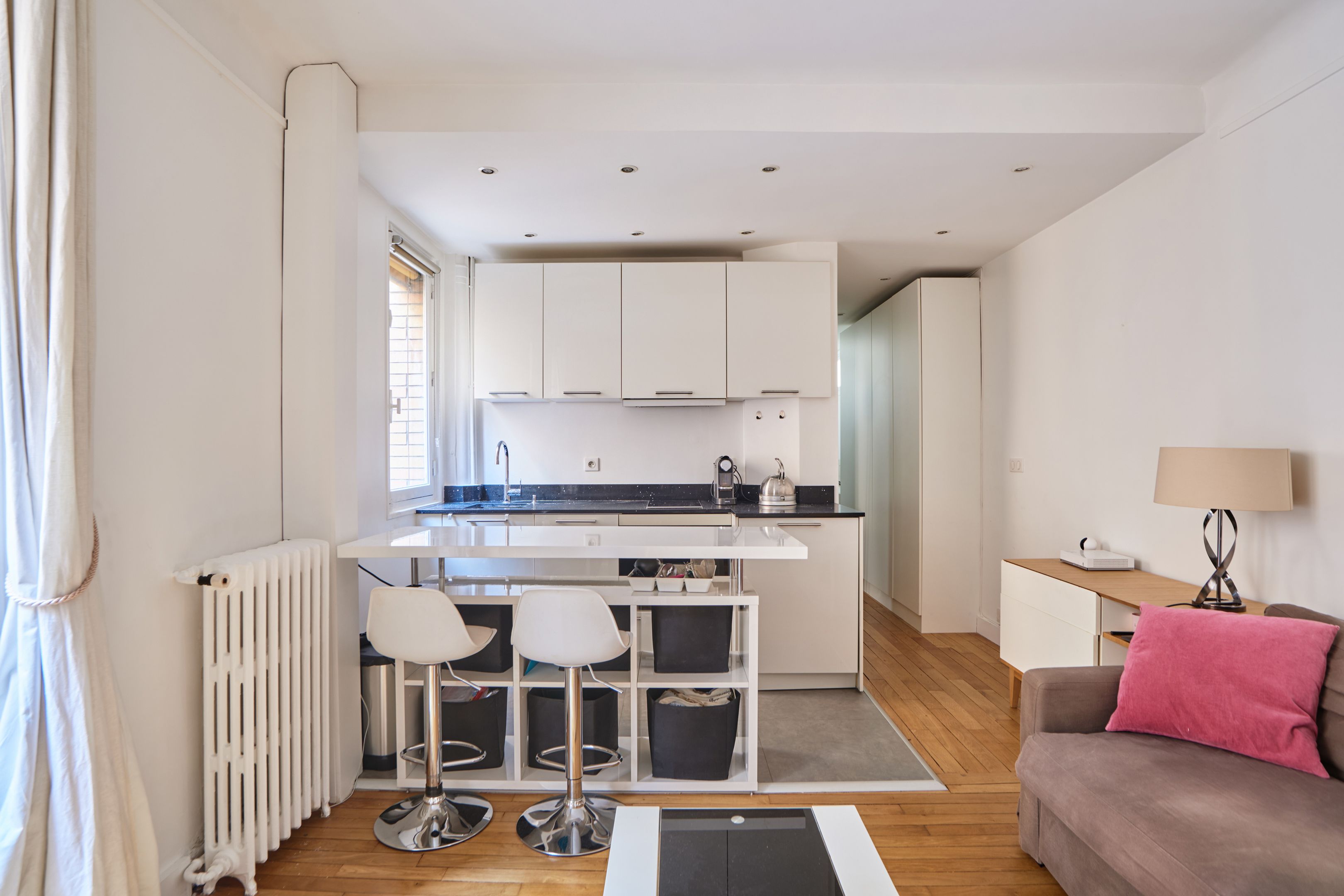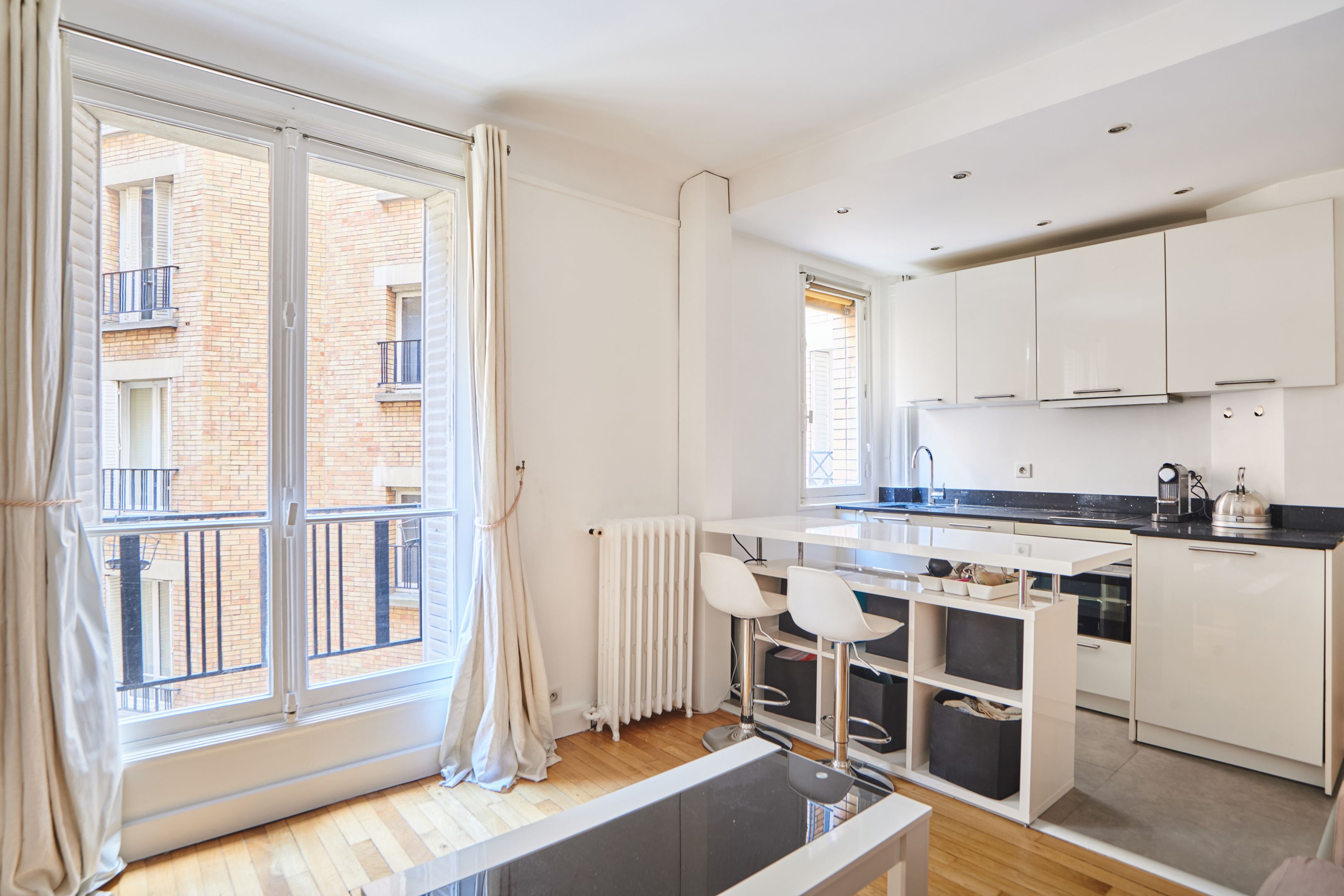 Idéalement situé à la Muette, à proximité des commerces et des transports, immeuble de standing des années 30, 2ème étage côté cour, beau studio en parfait état de 32 m². Pièce principale avec cuisine ouverte aménagée et équipée, salle d’eau, toilettes invitées et de nombreux rangements. Cave.