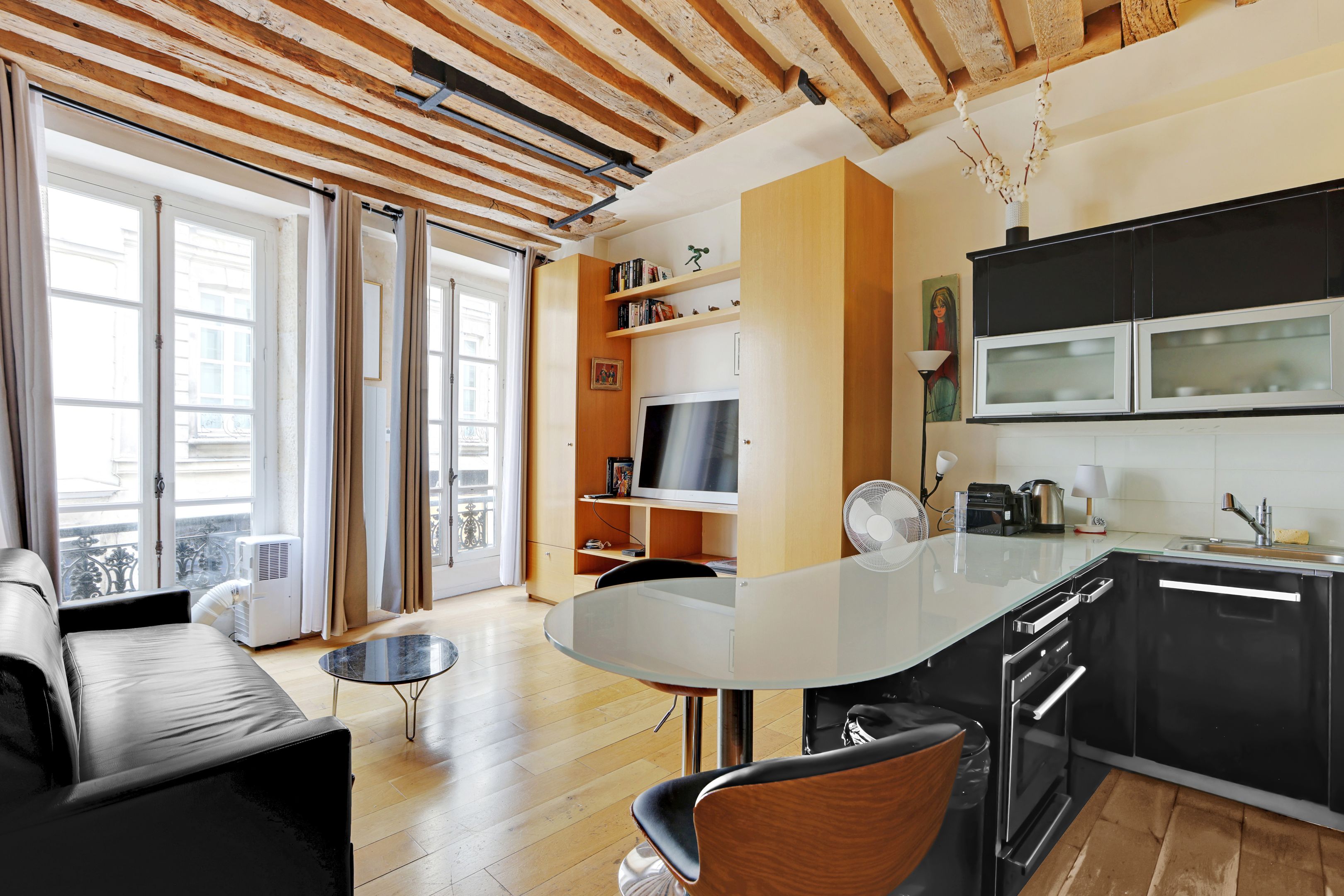 Idéalement situé entre la place de l'Odéon et la place Saint-Sulpice, dans un bel immeuble du 18ème siècle aux parties communes rénovées, studio de 31 m² loi Carrez en bon état, bénéficiant du charme de l'ancien et de beaux volumes grâce à une hauteur sous plafond de 3,50 mètres. Pièce principale spacieuse avec rangements, cuisine ouverte meublée et équipée, salle de bains avec toilettes. Vendu avec les meubles.