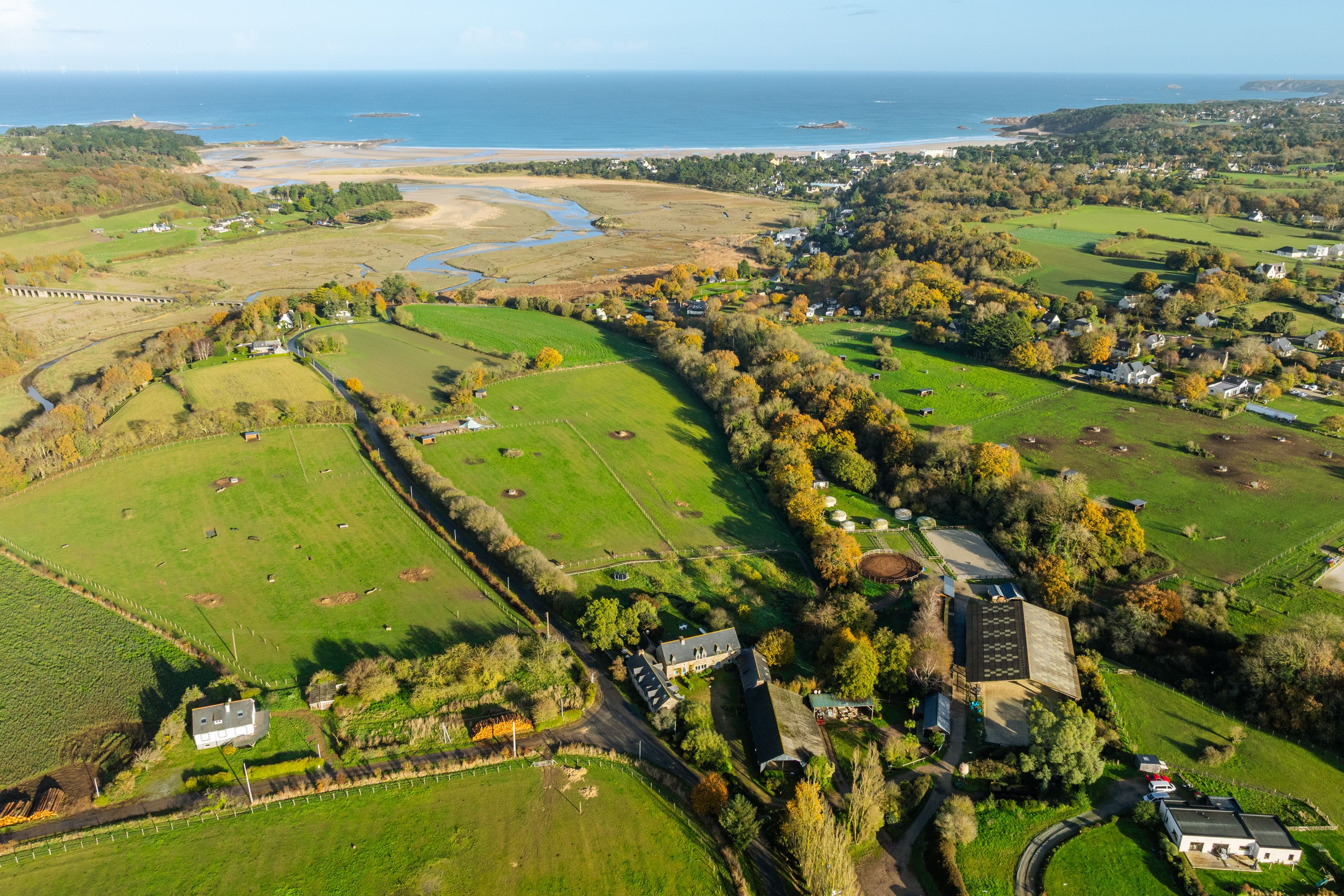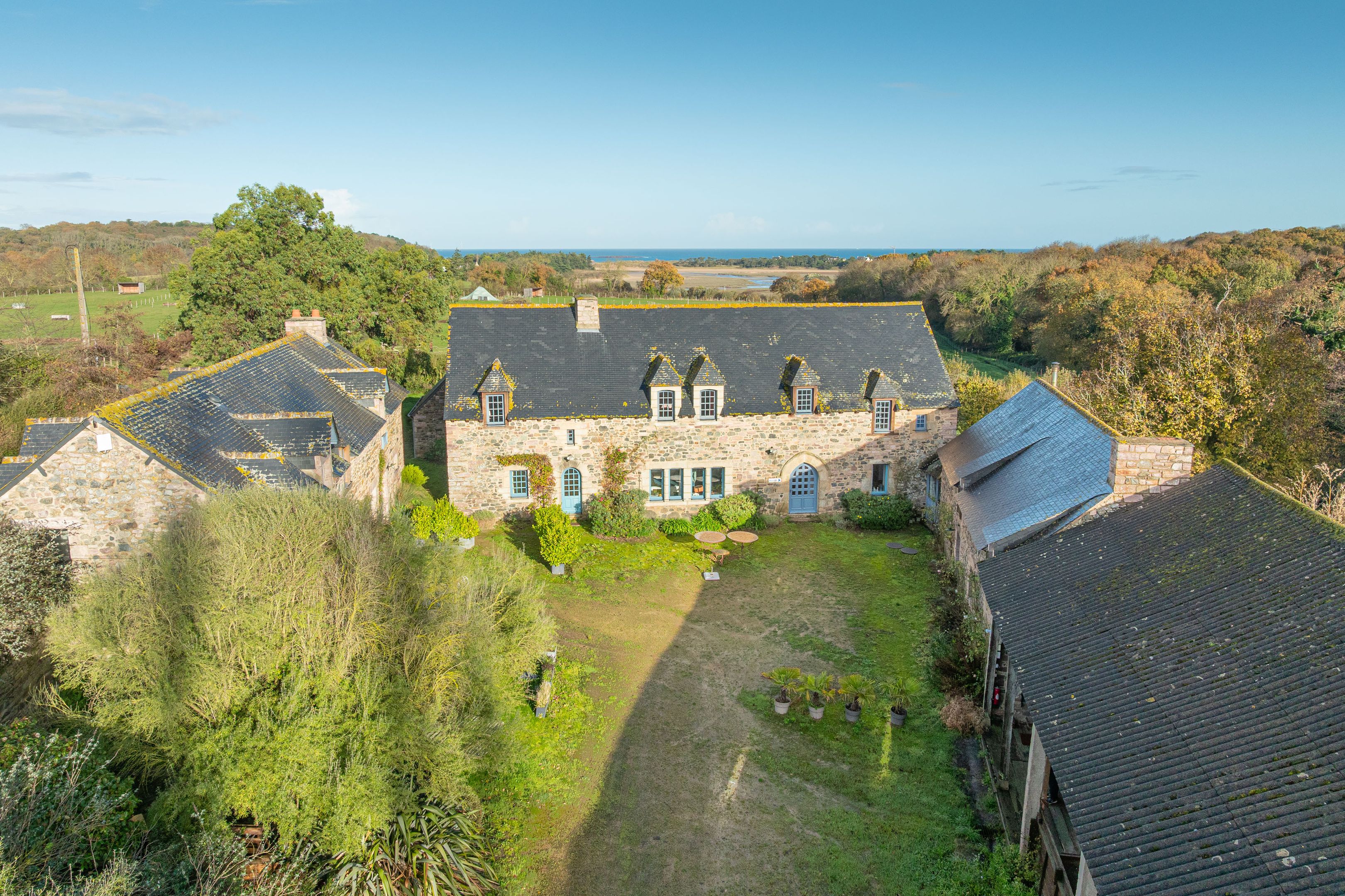 Sables-d'Or-les-Pins, au cœur d'un environnement entre terre et mer, à 800m de la plage. Spacieuse propriété familiale typiquement bretonne d'environ 600m² datant du 16ème siècle et bénéficiant d'un emplacement privilégié, d'une grande capacité d'accueil ainsi que de belles prestations générales. La demeure principale dispose de 215m² : séjour avec cheminée profitant d'une vue mer, cuisine équipée, 5 chambres, 4 salles de bains. Deux longères voisines composées de 6 gîtes de charme offrent au total 12 chambres et 9 salles d'eau supplémentaires. Grande cour bien ensoleillée et jardin vue mer entouré de vastes prés. Dépendances.