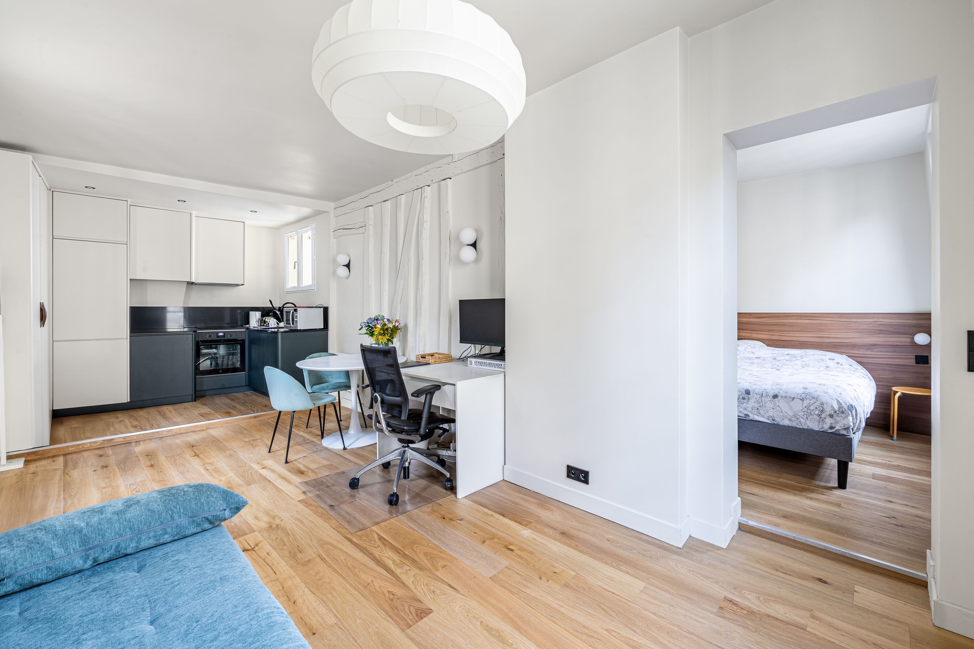 Idéalement situé au pied des commerces de la rue du Bac, au 4ème et dernier étage d'un immeuble du début du 18ème siècle, desservi par escalier, ravissant deux pièces de 37,4 m², en parfait état. Vaste pièce à vivre de 21 m² bénéficiant d'une double exposition sud-est et nord-est, cuisine ouverte équipée et aménagée, chambre, salle d'eau avec toilettes.