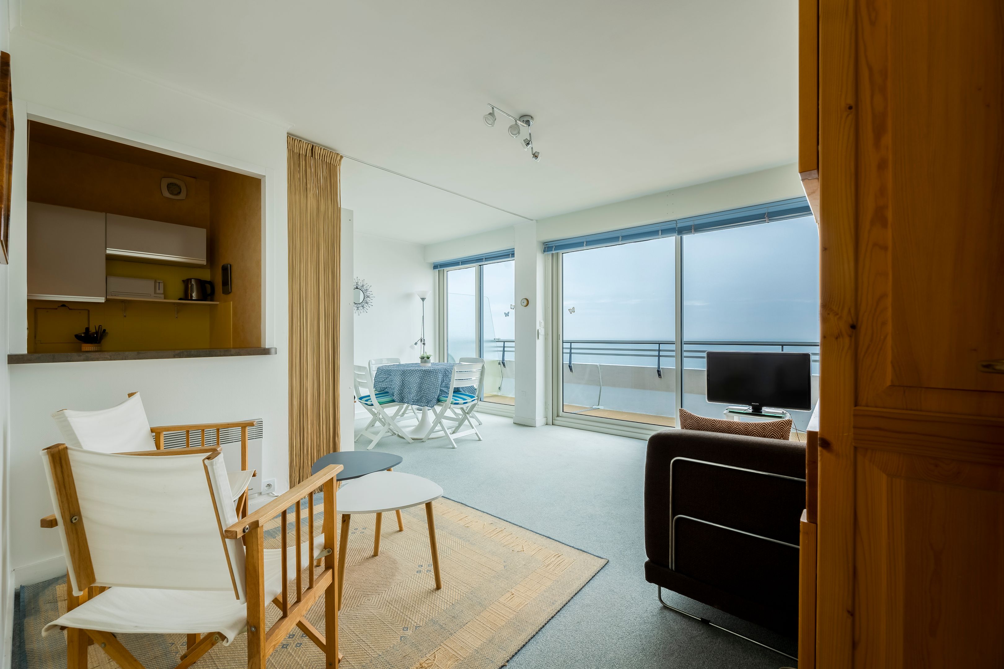 Situation exceptionnelle, vue panoramique face à l’océan Atlantique, de Noirmoutier à Belle-Ile, à seulement 100 mètres de la plage, bel appartement ensoleillé de 50m² au 16ème étage d’une tour emblématique desservi par un ascenseur.
