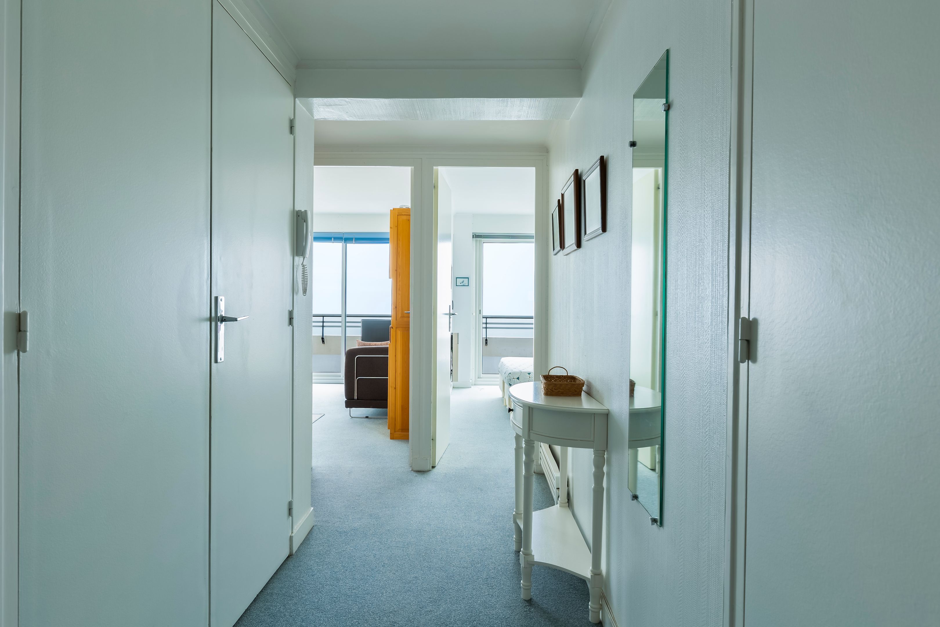 Entrée, pièce de réception ouvrant sur une terrasse face mer, cuisine séparée équipée, une chambre vue sur toute la baie, salle d’eau, rangements. Garage fermé et place de stationnement en sous-sol sécurisé, cave. Rentabilité en location saisonnière.