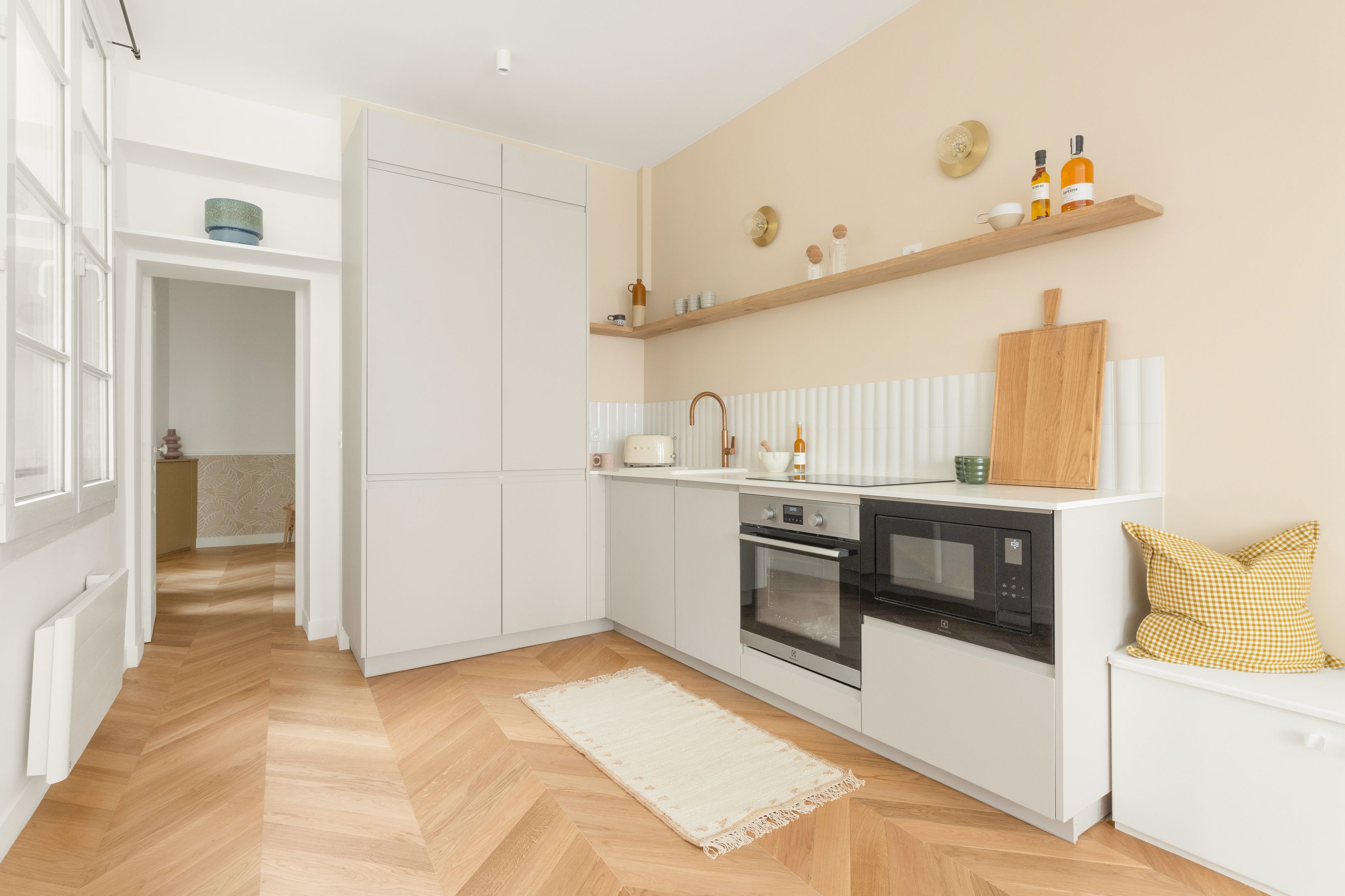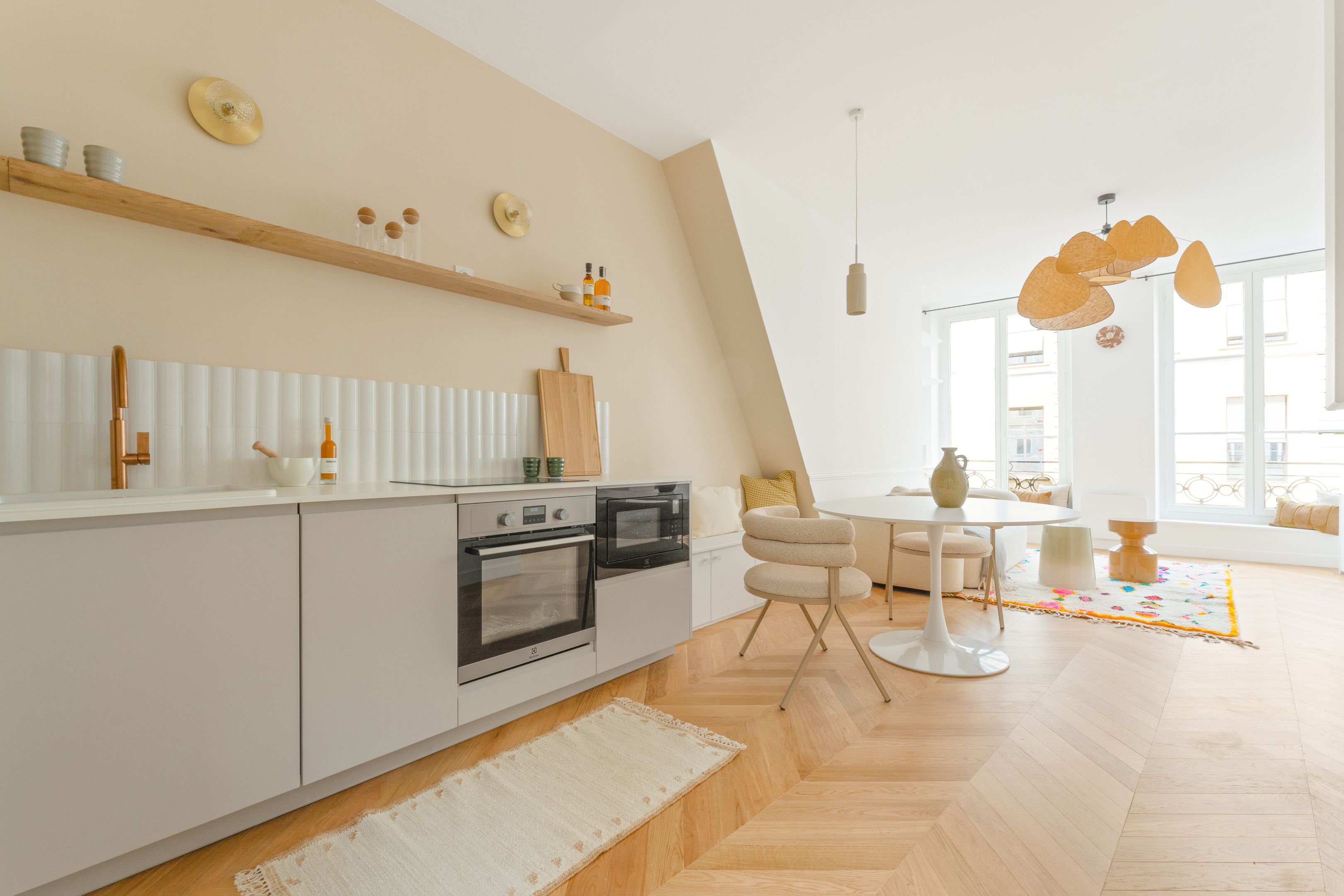 Immeuble de 1750 proche Place des Victoires, Palais Royal et Banque de France. Appartement de deux pièces refait à neuf avec goût situé au 3ème étage. Entrée, séjour orienté ouest sur rue calme, cuisine ouverte aménagée et équipée, vaste chambre avec dressing et coin bureau, salle d'eau, toilettes indépendantes, nombreux rangements. Cave.
