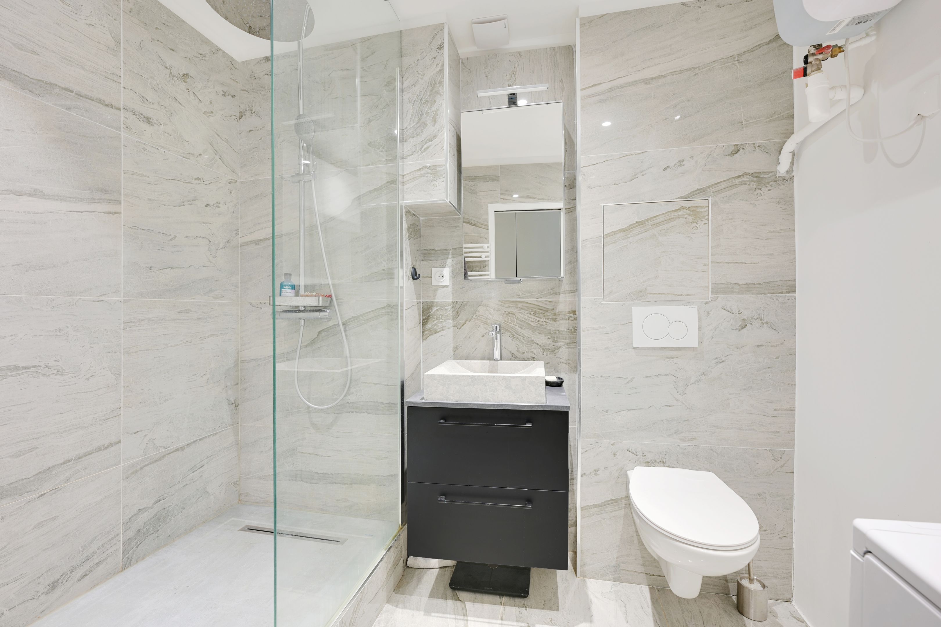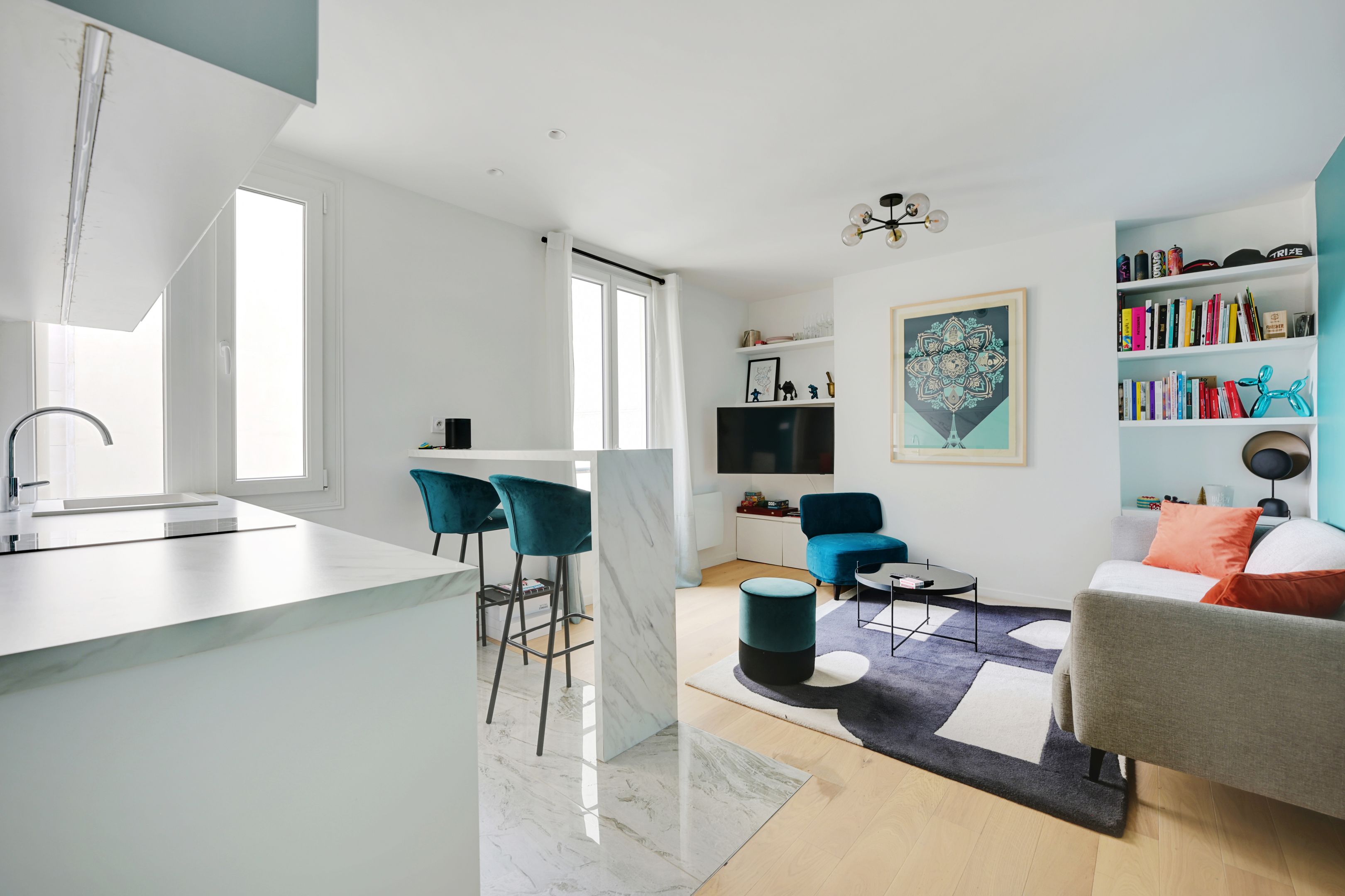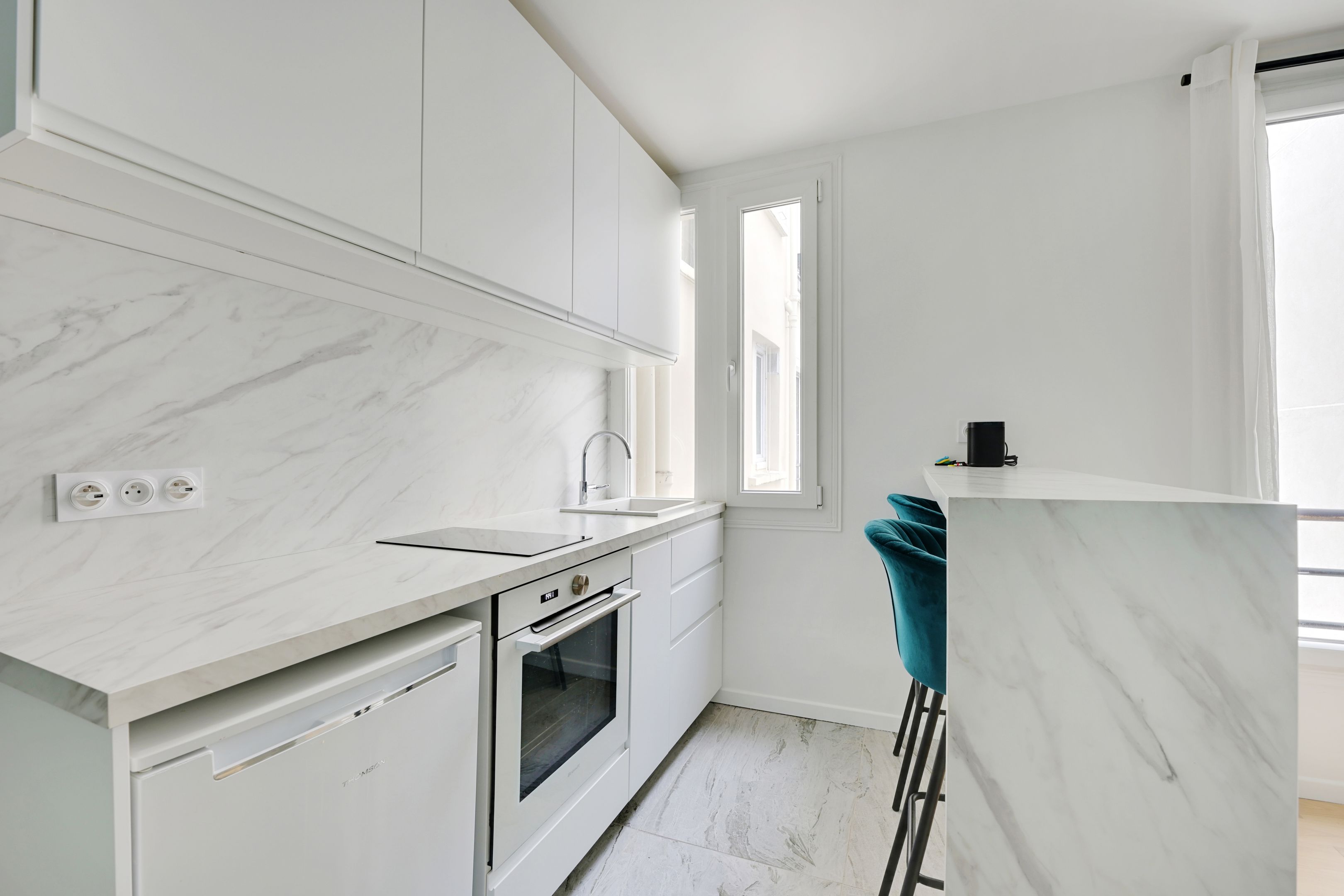 Immeuble ancien très bien entretenu, appartement de 37,84 m² loi Carrez en parfait état situé au 3ème étage desservi par escalier, bénéficiant d’une belle luminosité grâce à son exposition sud-ouest et d’un plan sans perte de place. Entrée, séjour sur cour doté d’une cuisine ouverte équipée, chambre spacieuse avec rangements sur-mesure, salle d’eau avec toilettes. Cave