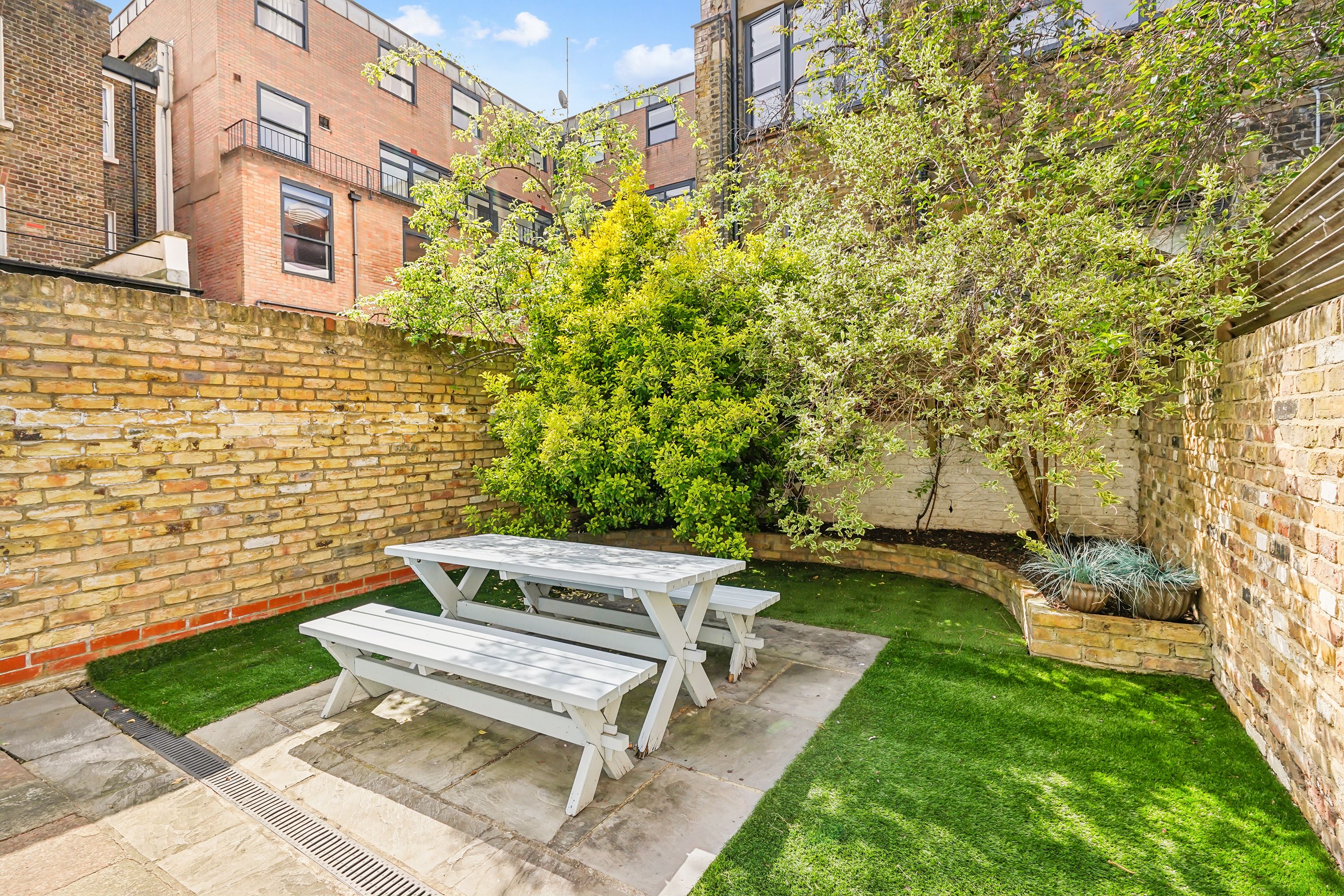Located off the Fulham Road close to all the amenities of Parsons Green, this end of terrace property boasts a recently remodelled south-facing garden, a bright double reception room, composed of a living and dining area, featuring high ceilings, gorgeous Victorian fixtures, two bedrooms with good amount of storage, two bathrooms and a fully equipped kitchen.