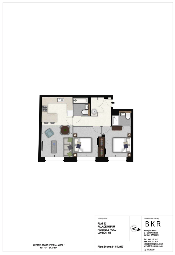 64 m²2 chambresCharges forfaitaires: 0 £plan