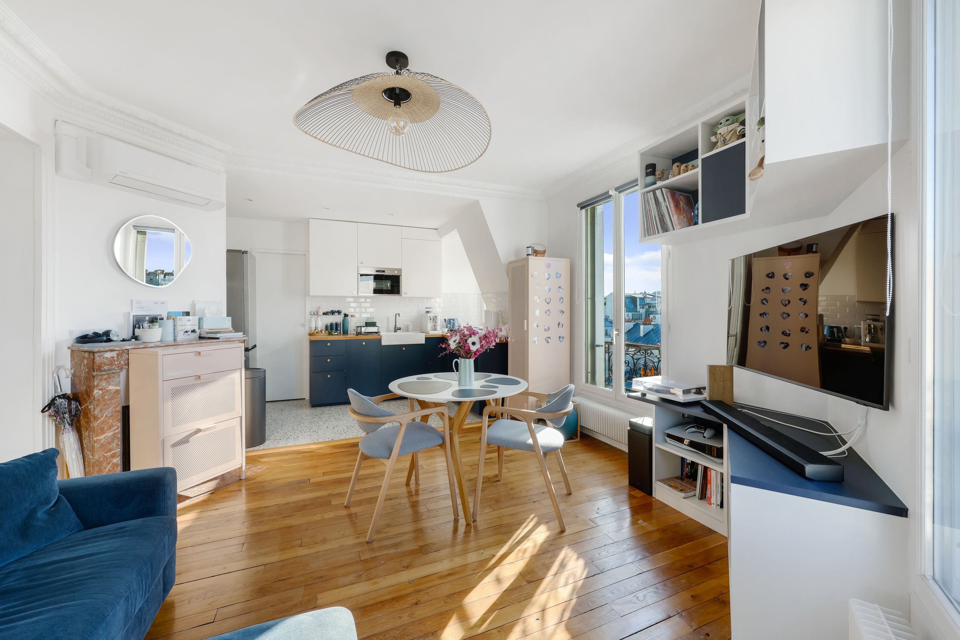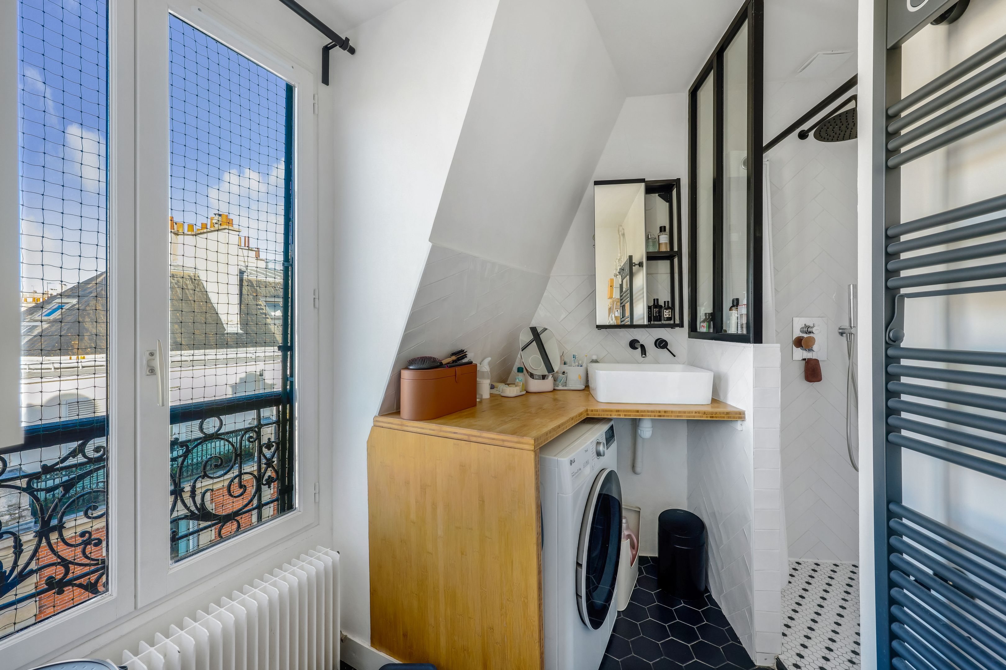 Idéalement situé à deux pas des commerces de la rue de la Pompe et de la rue de la Tour, cet appartement lumineux occupe le 6ème et dernier étage d’un immeuble ancien. Traversant et en angle, il offre des vues parfaitement dégagées et bénéficie d’un ensoleillement optimal. Climatisé et en excellent état, il allie le charme de l’ancien à de beaux volumes et une distribution fonctionnelle. Il se compose d’une entrée, d’un séjour avec cuisine ouverte aménagée et équipée, d’une chambre avec coin bureau et salle de douches, ainsi que de toilettes séparées. Nombreux rangements. Vente meublée possible. Exclusivité Breteuil.