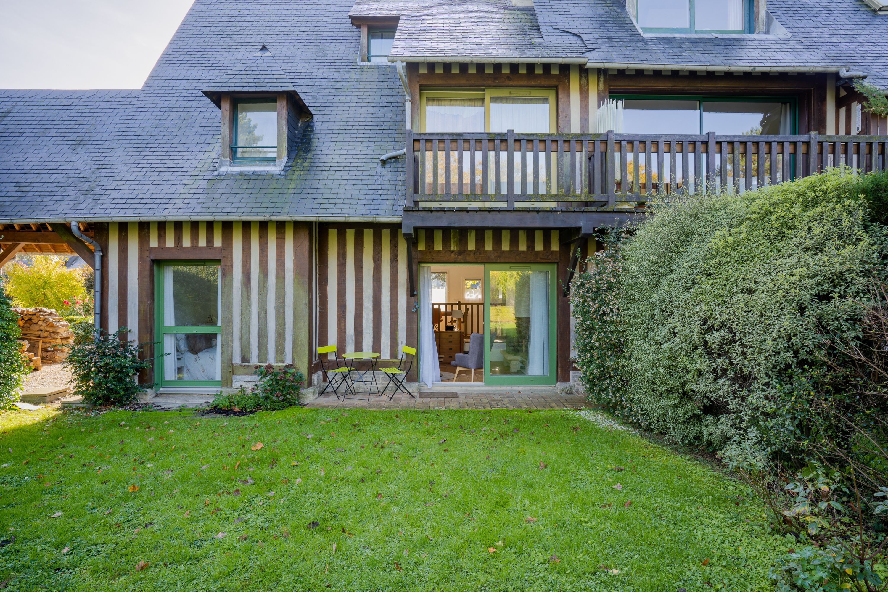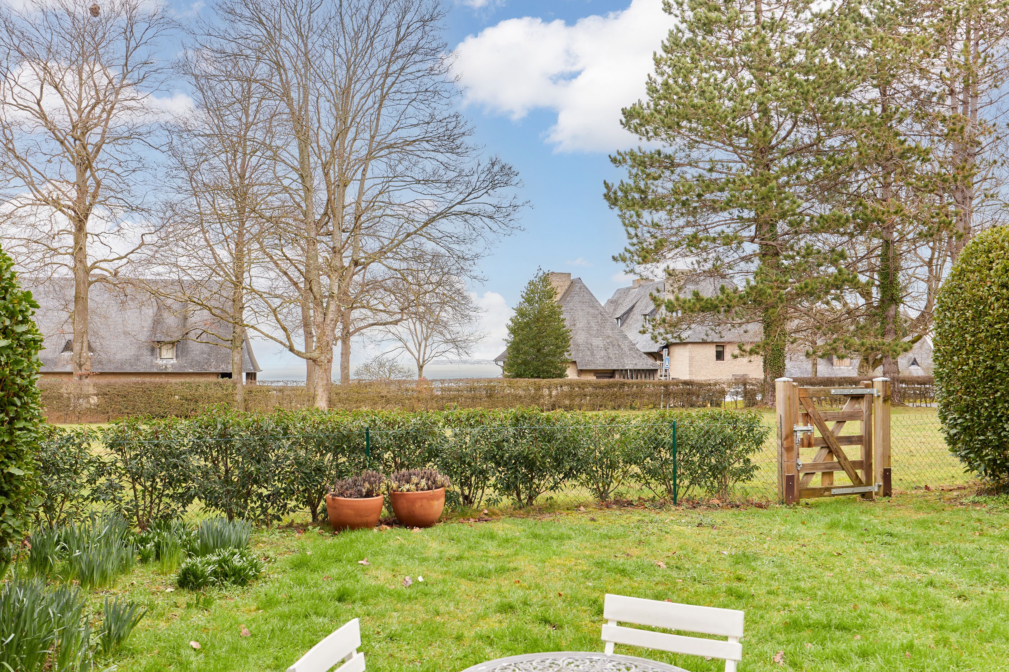Sur les hauteurs de Tourgéville, dans une résidence de standing sécurisée et entretenue avec gardien et tennis, bel appartement de deux pièces de 48,32 m² rénové. Entrée, séjour avec cheminée fonctionnelle donnant sur un beau jardin clos de 87 m² avec aperçu mer, cuisine ouverte aménagée et équipée, chambre, salle de bains, toilettes séparées. Place de parking privative et bûcher.