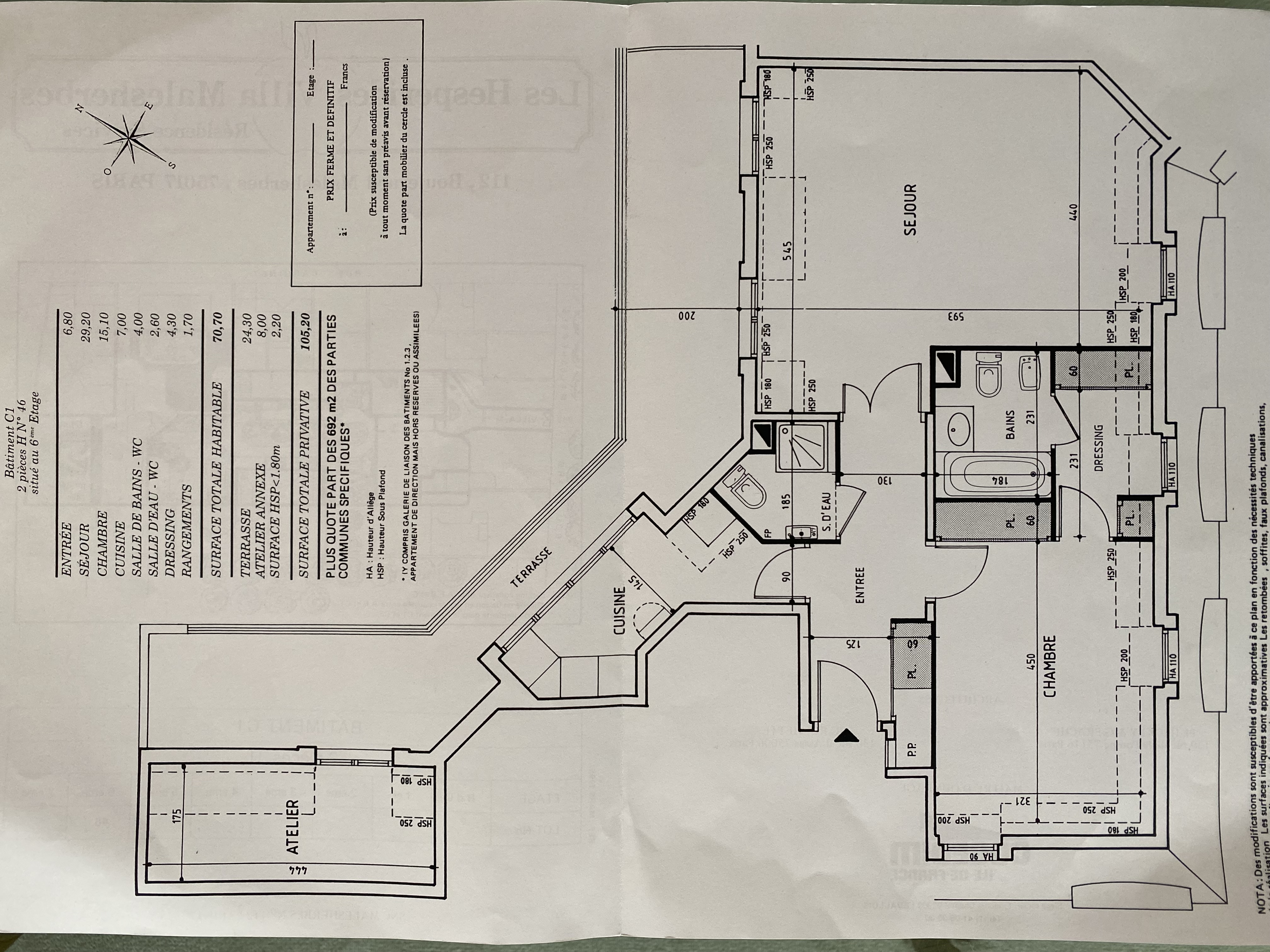 Au sein de la Résidence Séniors Hespérides Villa Malesherbes, appartement au 6ème et dernier étage avec ascenseur de 68.74m2 Carrez, avec un atelier indépendant de 8m2 et terrasse de 24.3m2. Entrée, séjour, cuisine indépendante, chambre avec espace bureau/dressing, salle de bains et salle d'eau avec toilettes. L'atelier est accessible par la terrasse. Cave et climatisation.