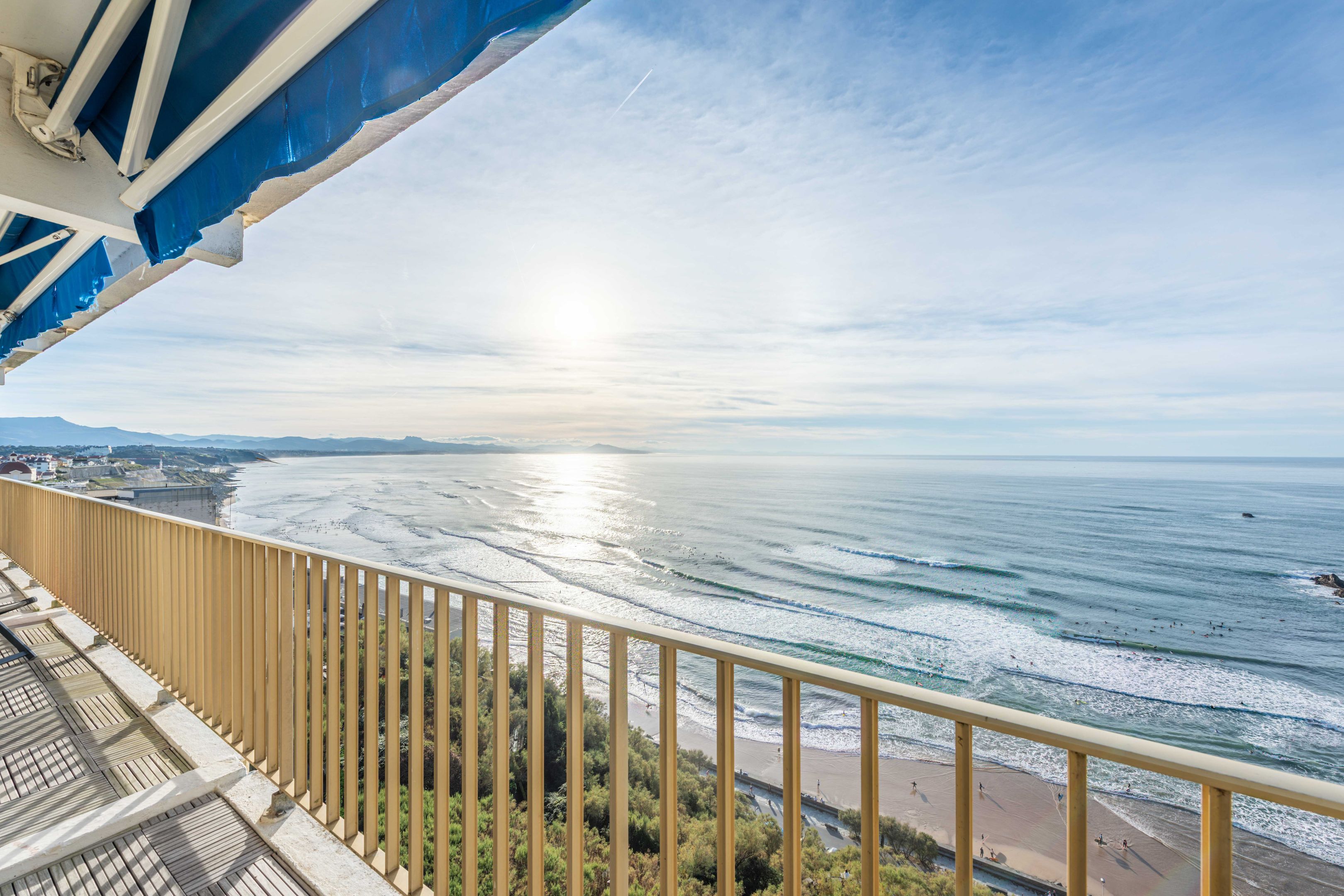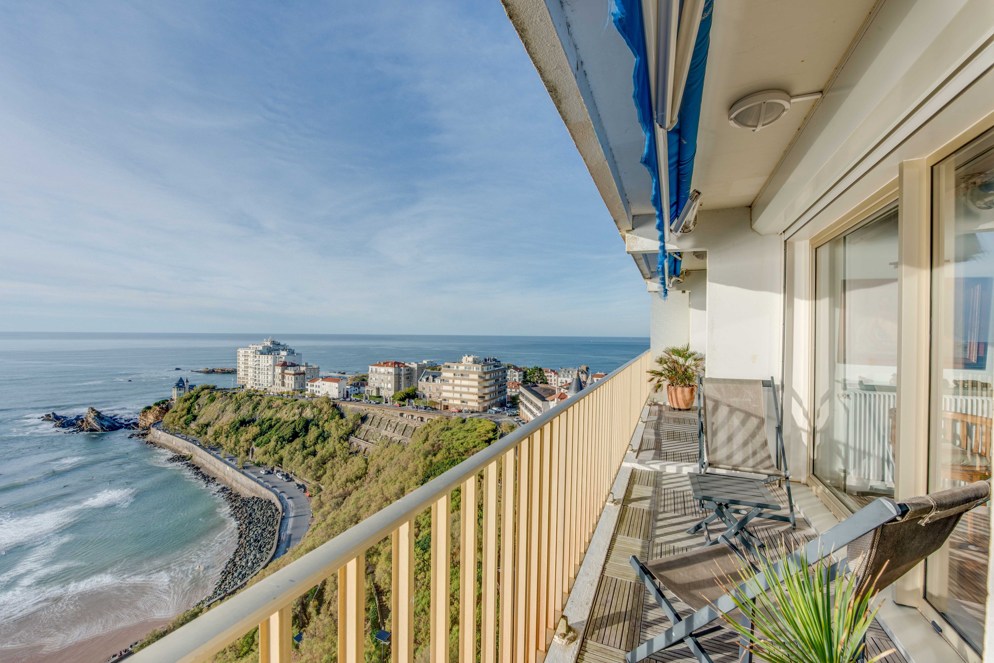 Nue Propriété. Au coeur du quartier prisé de la Côte des Basques, situé au dernier étage d'une résidence sécurisée et desservie par ascenseur, appartement traversant d'une superficie totale de 113 m² offrant une vue exceptionnelle sur l'océan, les montagnes et les toits biarrots. Ce bien unique est baigné de lumière grâce à sa double exposition et ses nombreuses ouvertures. Entrée, séjour s'ouvrant sur un balcon filant exposé sud-ouest, cuisine indépendante, suite parentale dotée d'un accès vers l'extérieur, dressing, salle de bains et toilettes, chambre d'invités, seconde salle d'eau et toilettes.