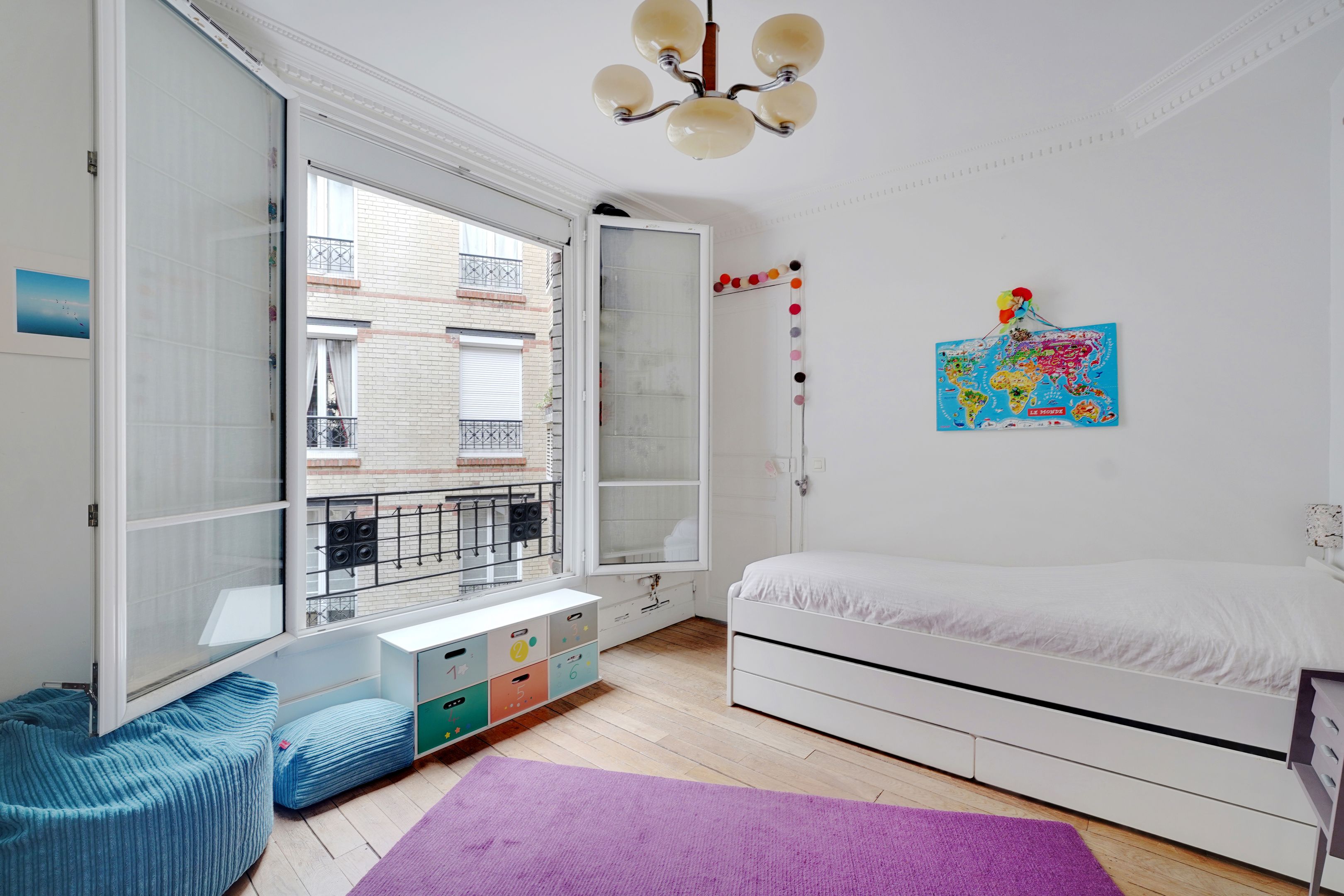 Immeuble ancien aux parties communes soignées, au 4ème étage desservi par escalier, bel appartement de 66,65 m² Loi Carrez, bénéficiant du cachet de l'ancien et d'une belle luminosité. Entrée, séjour donnant sur rue, cuisine ouverte, deux chambres de belle taille, une salle de bains et des toilettes séparées. Cave. Local vélo.