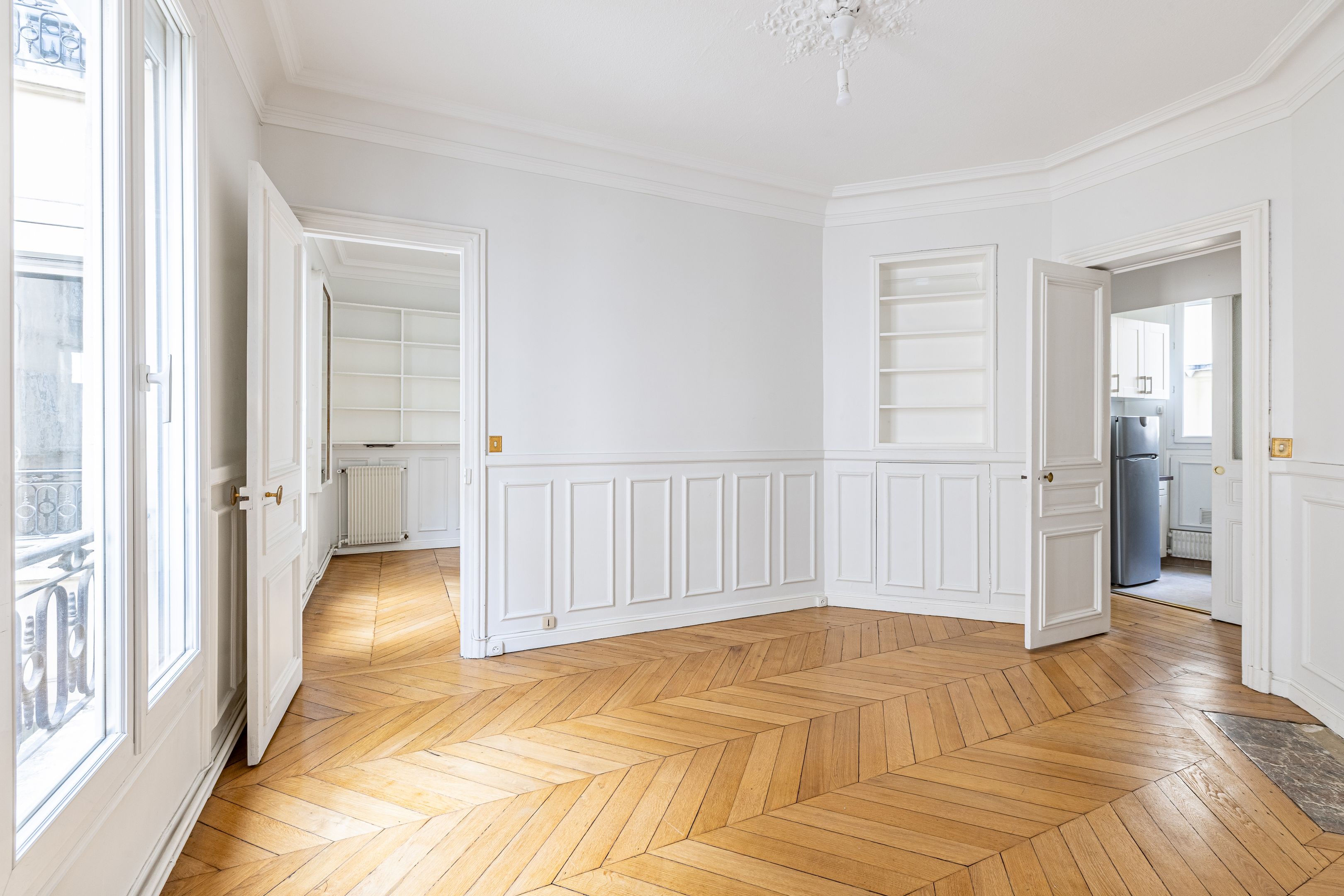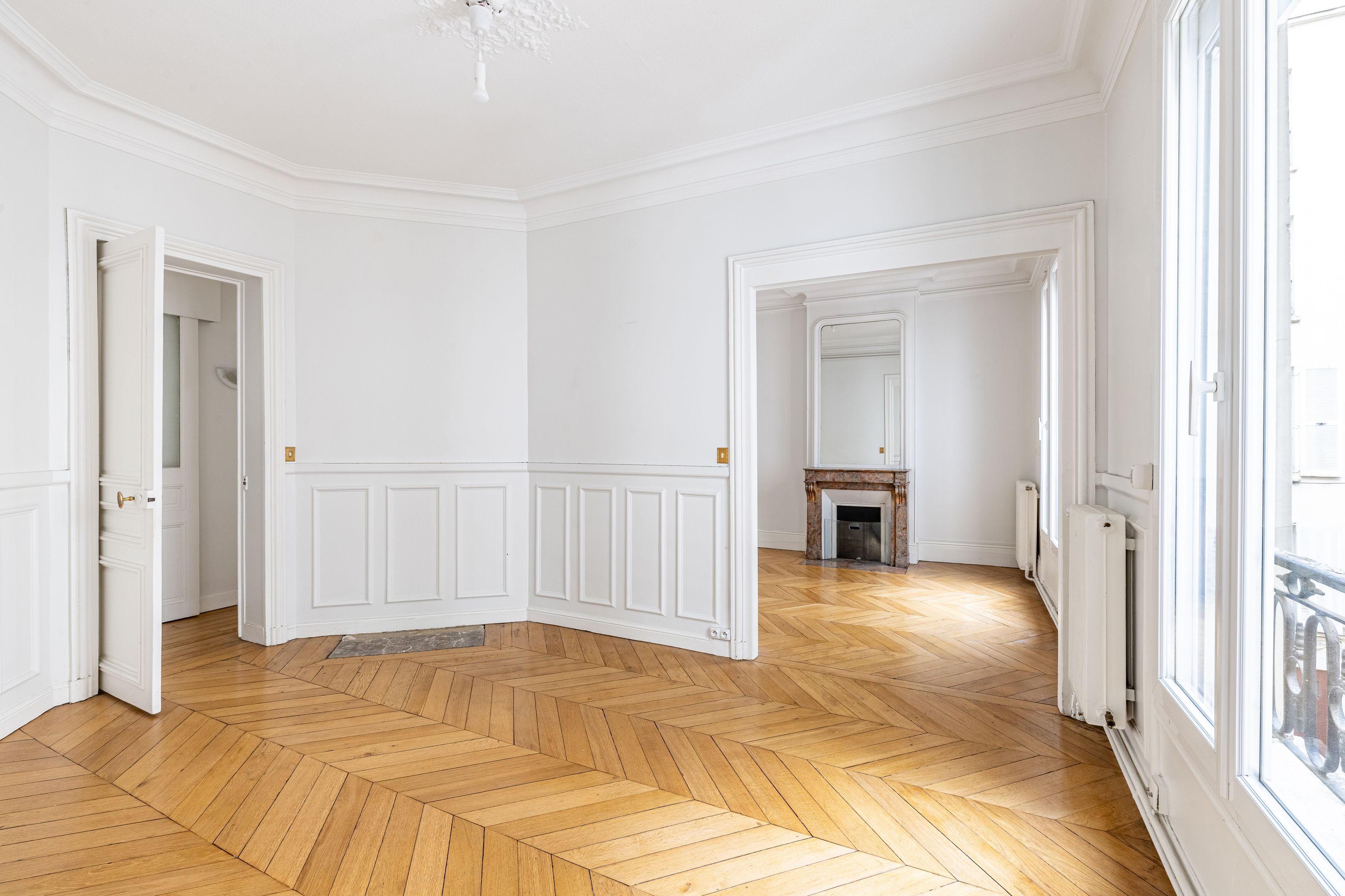 Immeuble haussmannien de très bon standing, au 2ème étage desservi par escalier, appartement de 59 m² (Loi Carrez) et sa chambre de service (7 m²). Entrée, séjour de belle taille, salle à manger, cuisine séparée, une chambre, un bureau (ou chambre enfant), salle de douches, toilettes séparées. Cet appartement au charme de l'ancien (parquet, moulures, cheminées) est complété par une chambre de service en parfait état au 6ème étage desservie par escalier, avec vue dégagée, kitchenette et douche. Cave.