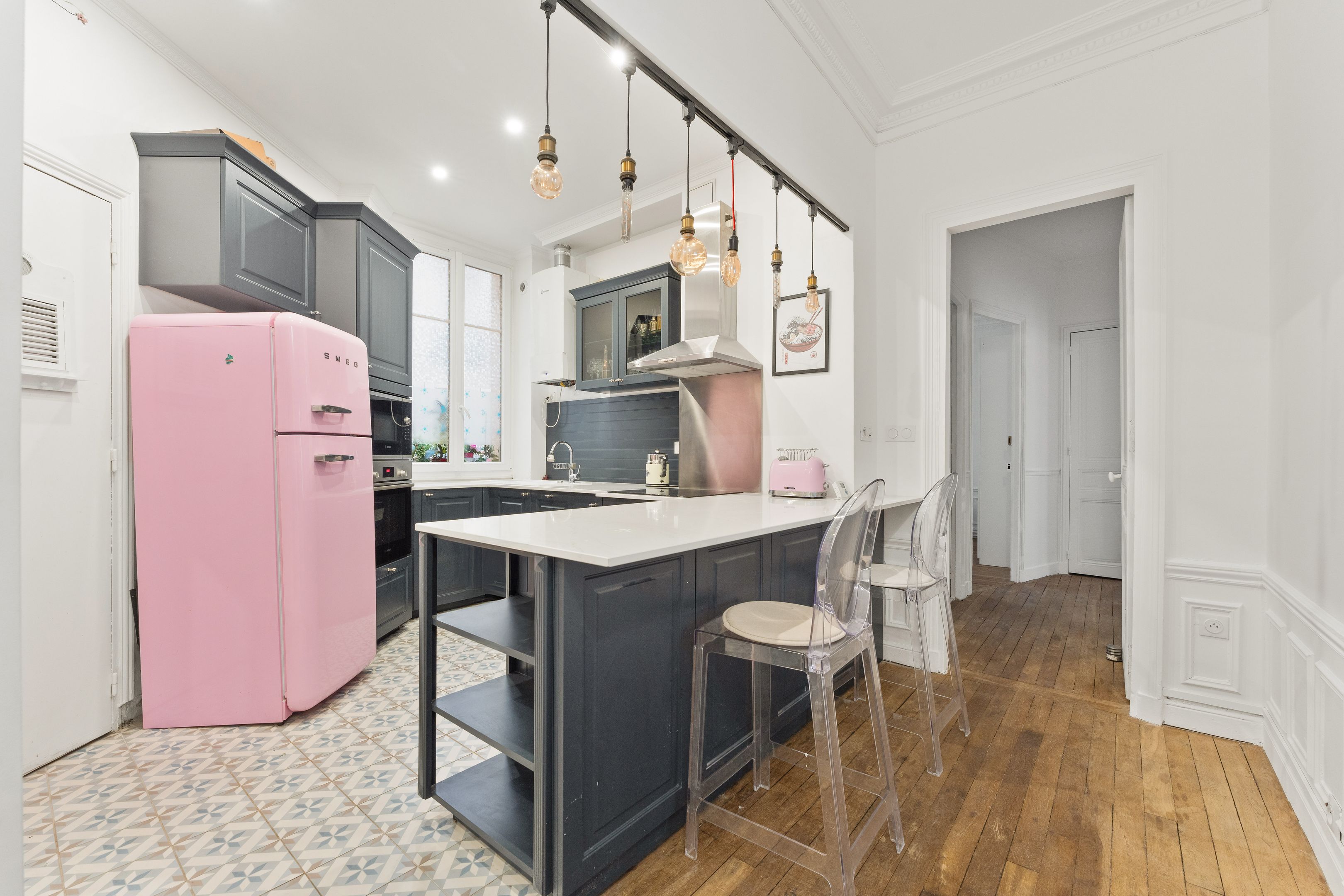 Auteuil. Immeuble en pierre de taille de standing des années 30, à proximité immédiate de toutes les commodités. Au 2ème étage, appartement traversant de 86,15 m² bénéficiant du charme de l'ancien (parquet, moulures et cheminée) et d'un bel ensoleillement grâce à ses expositions au sud-ouest et nord-est. Galerie d'entrée, salon/salle à manger, cuisine ouverte aménagée et équipée, balcon, deux chambres, salle de bains avec toilettes. Cave. Au 6ème étage par escalier, chambre de service de 7,28 m² proposée en supplément du prix à 60 000€. Sectorisation Jean-Baptiste Say.