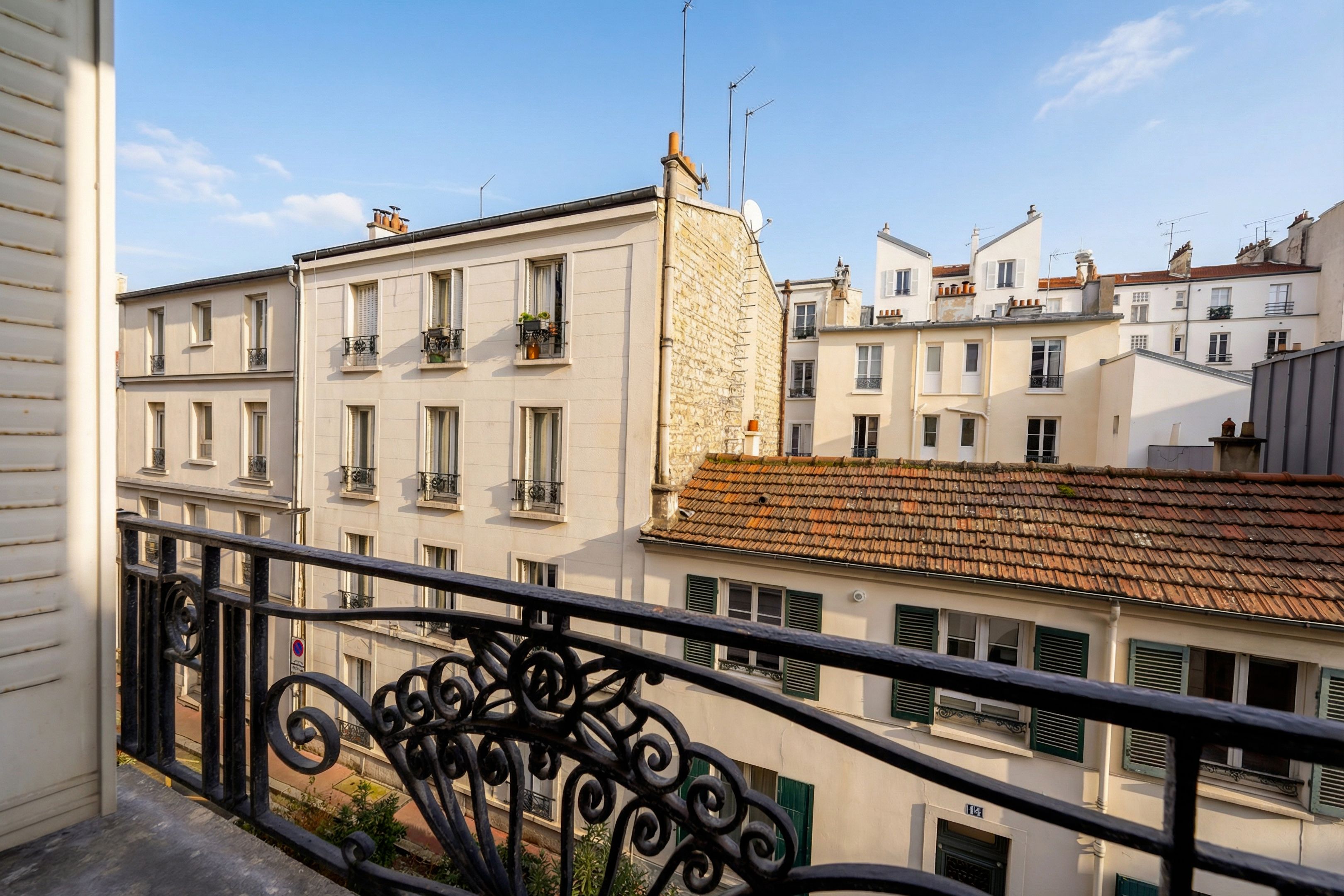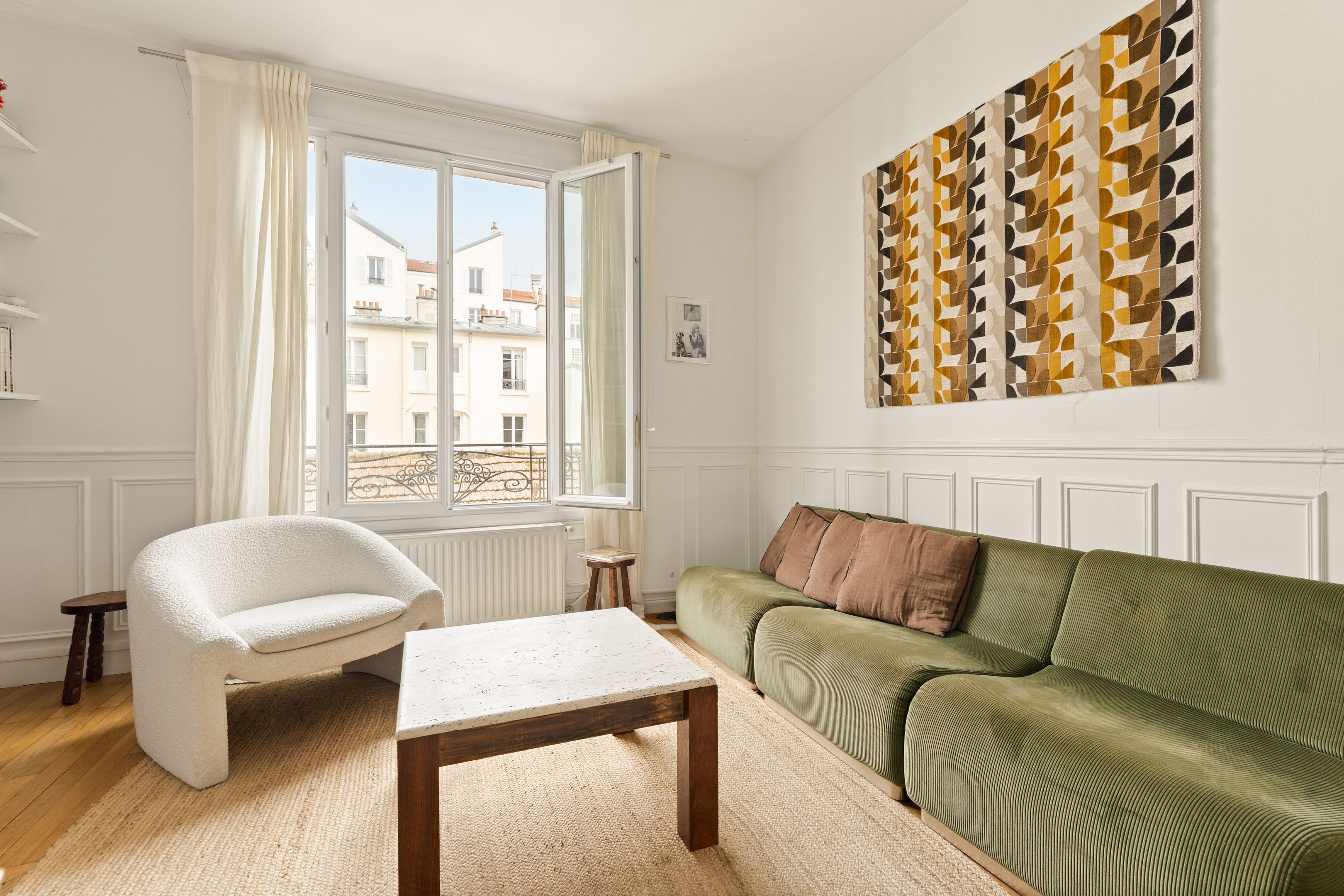 Levallois-Louise Michel. Seul à l'étage dans un immeuble ancien de 1900, appartement traversant en excellent état. Séjour, deux chambres, cuisine indépendante aménagée et équipée, salle de bains et toilettes invités. Nombreux rangements. Cave.