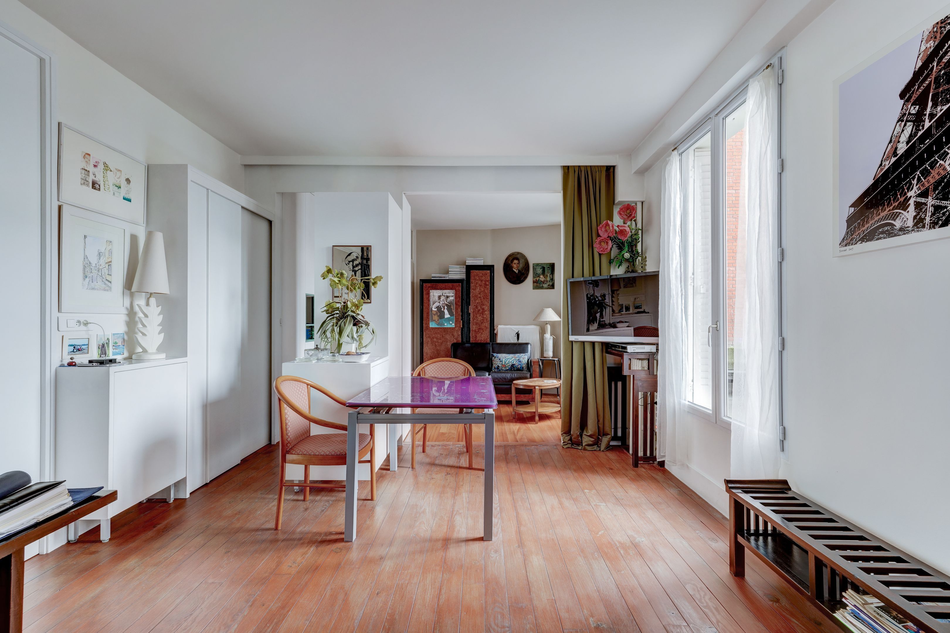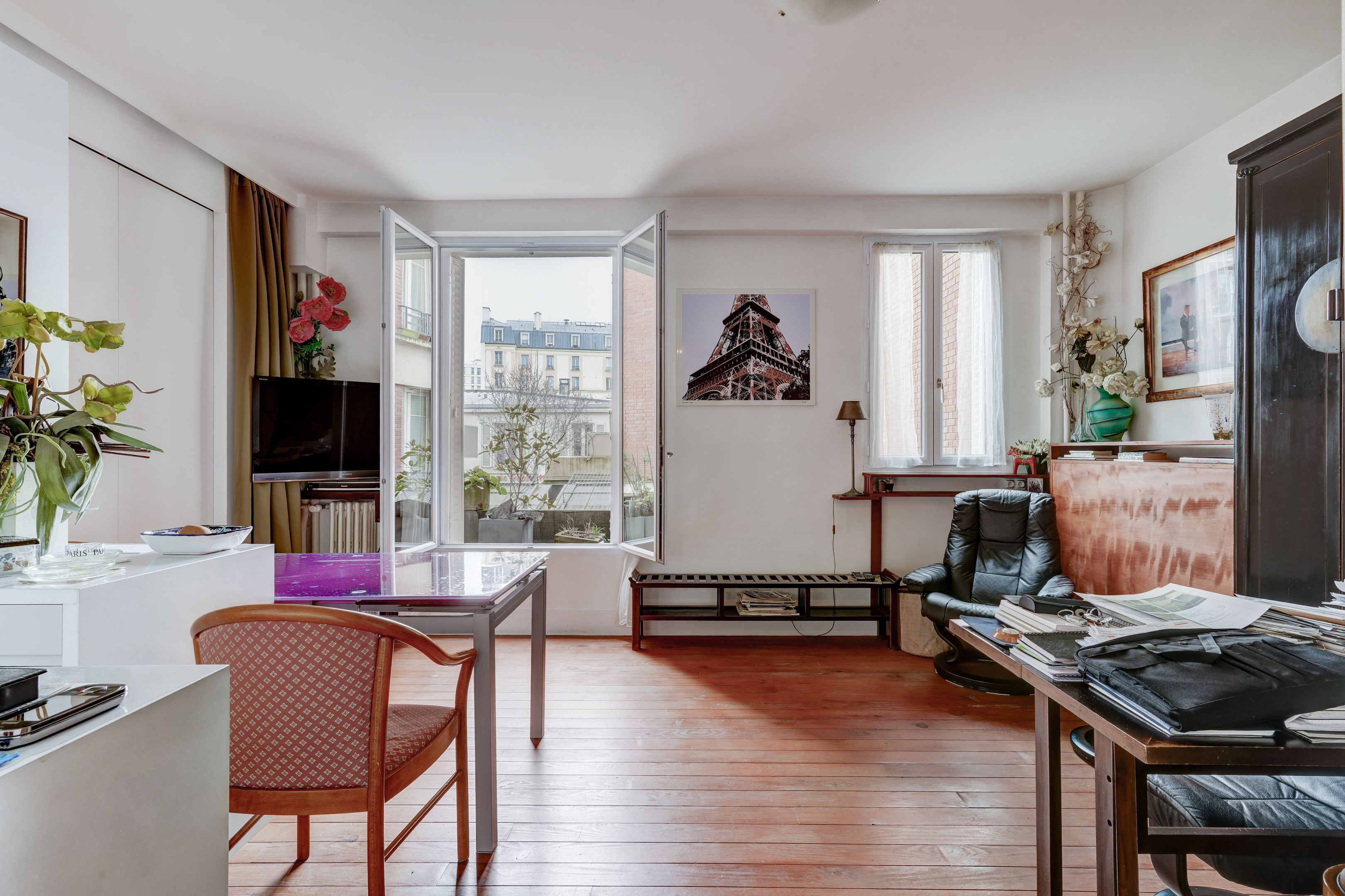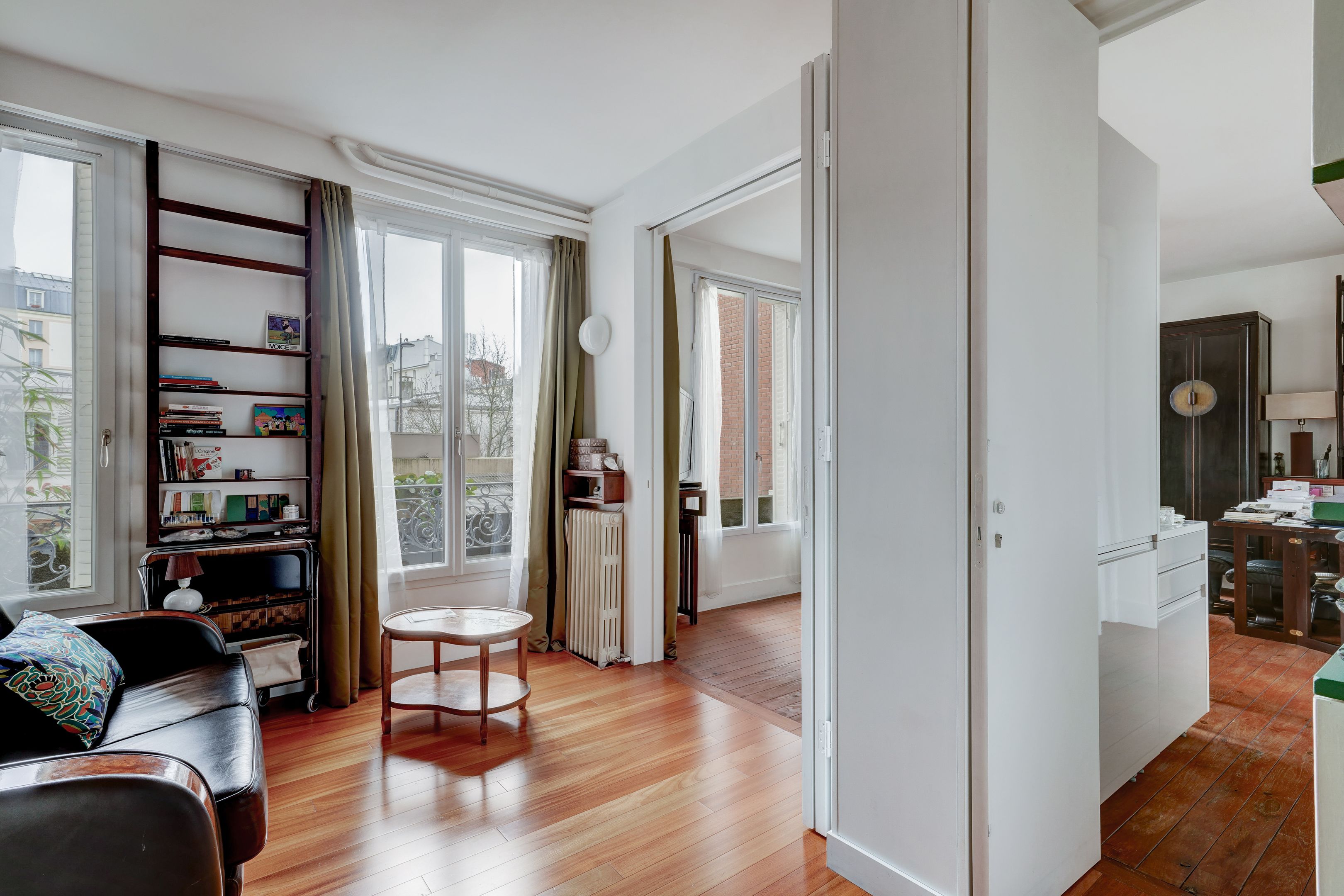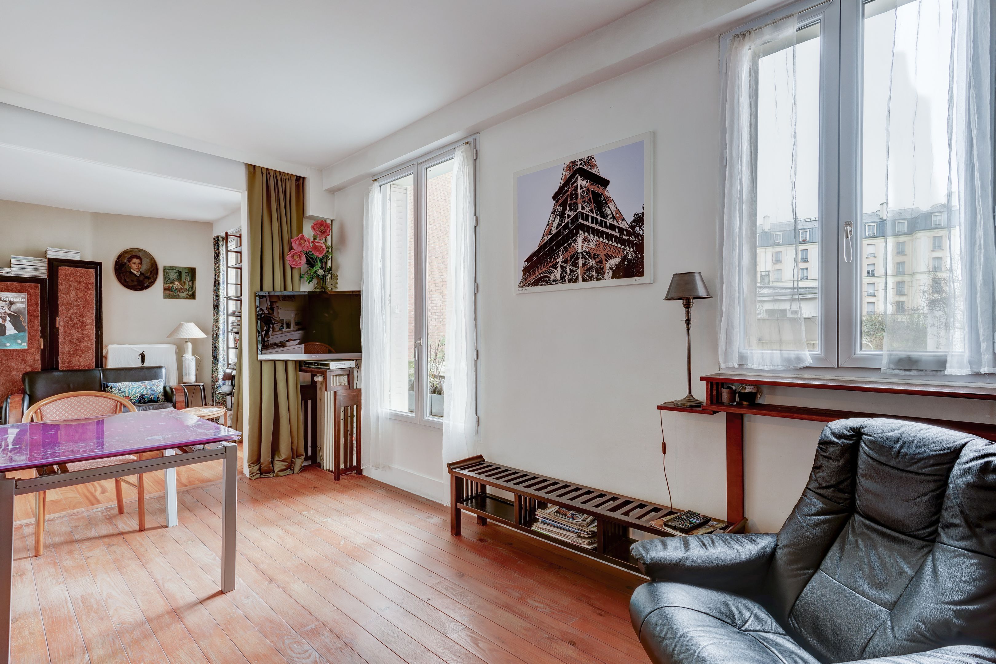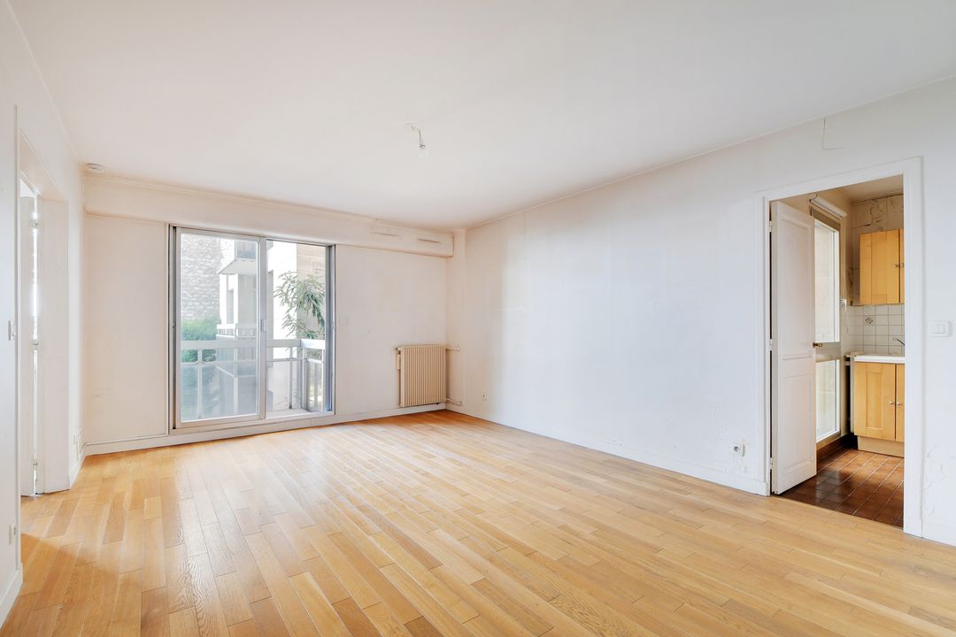 Village Pernety - À proximité des commerces et des transports, immeuble de 1930 bien entretenu et sécurisé. Au 1er étage desservi par escalier, appartement traversant de 56,10 m² lumineux et au plan sans perte de place. Entrée, séjour exposé sud-est avec vue sur la verdure, cuisine équipée aménagée semi-ouverte, deux chambres dont une sur cour, une salle de bains, une salle d'eau, dressing, deux toilettes séparées. Aucun travaux de copropriété à prévoir (rénovation intérieure, ravalement, remplacement de la chaudière de l'immeuble faits récemment). Cellier au rez-de-chaussée. Diagnostics en cours.