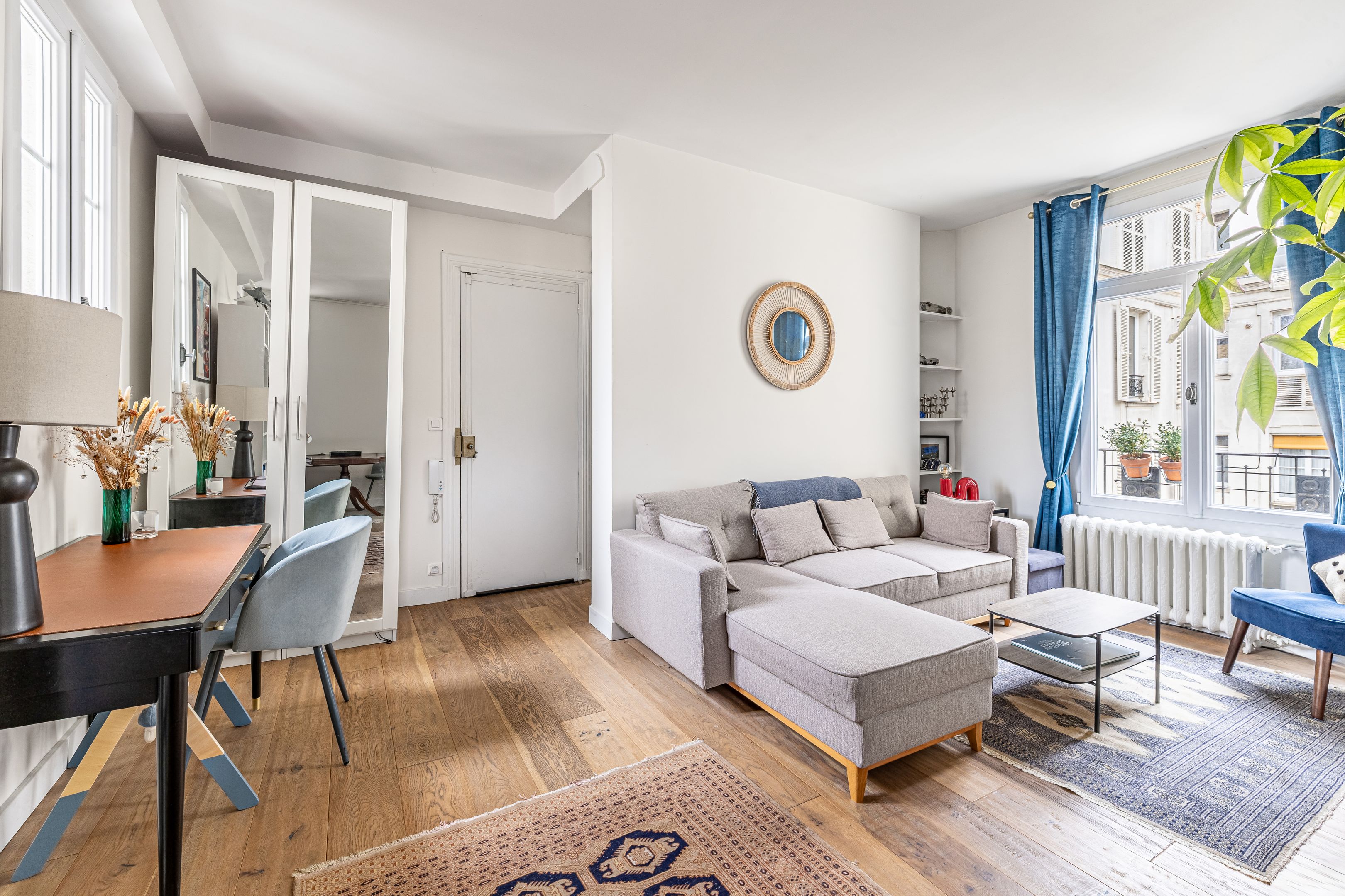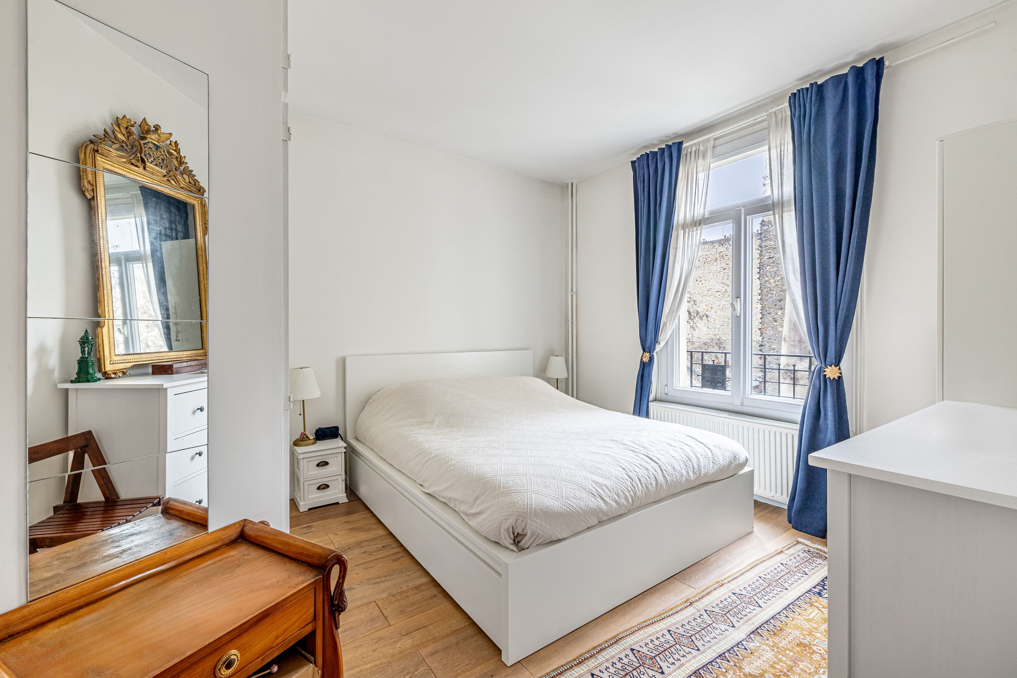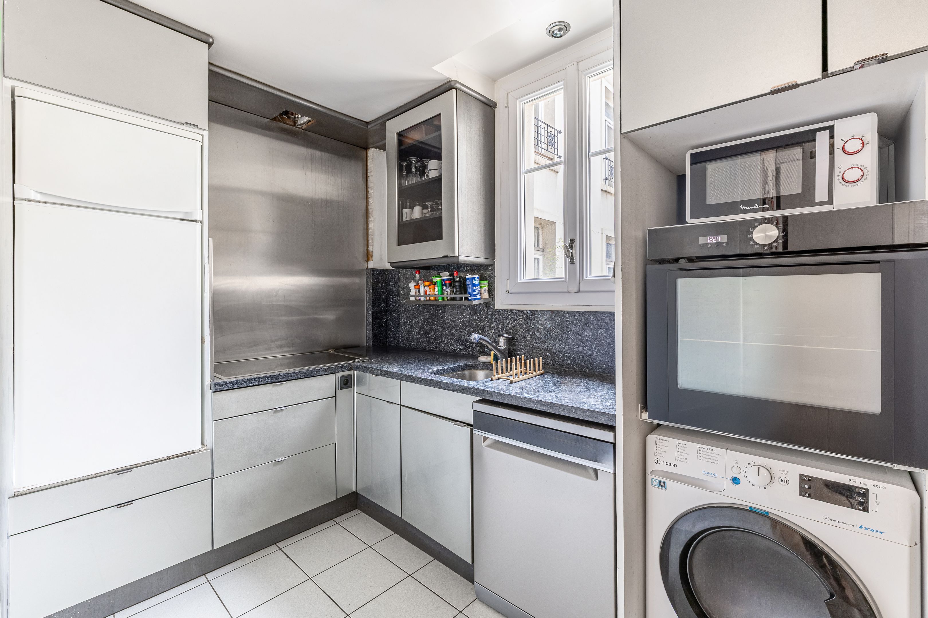À proximité du Square de Clignancourt et de la Mairie du XVIIIe, au 4ème étage d'un immeuble édifié en 1920 desservi par ascenseur, charmant appartement de trois pièces au calme sur cour.