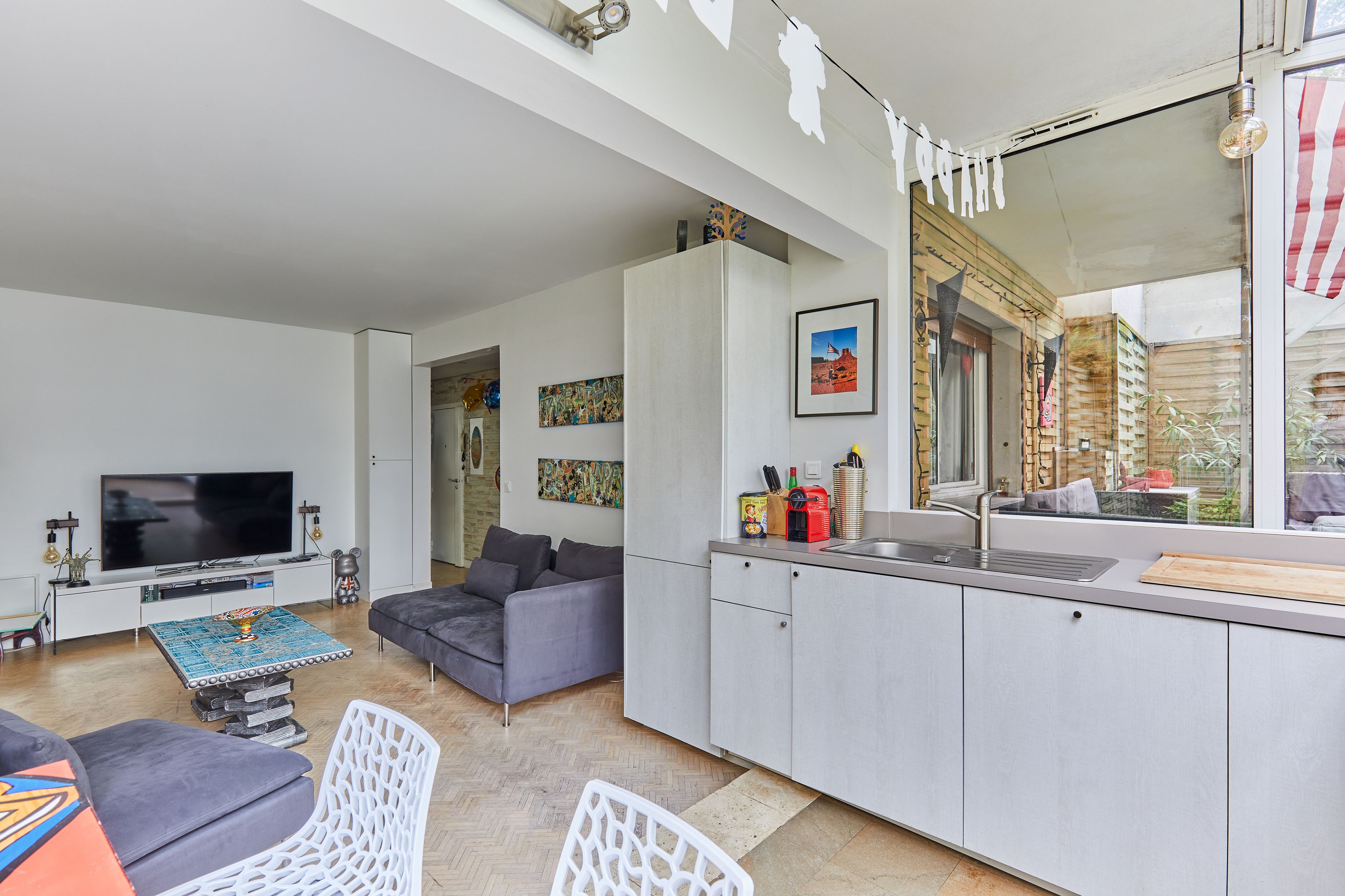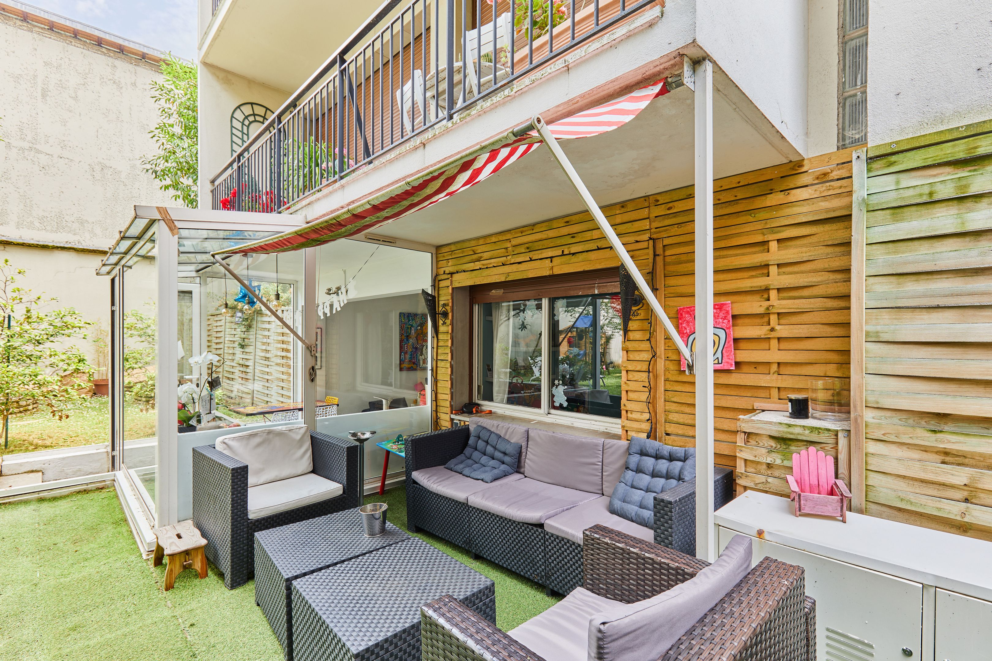Chézy - Perronet. Dans un immeuble récent, full Pasteur, ouvrant sur un vaste jardin privatif d'une superficie de 220 m2, un appartement ensoleillé et parfaitement calme. Entrée, séjour donnant sur le jardin, cuisine américaine, deux chambres, salle de bains avec toilettes. Appartement en excellent état. Cave en sous-sol. Commerces du carrefour Chézy/Perronet à 2 minutes à pied. Collège et lycée Pasteur à 2 minutes également.