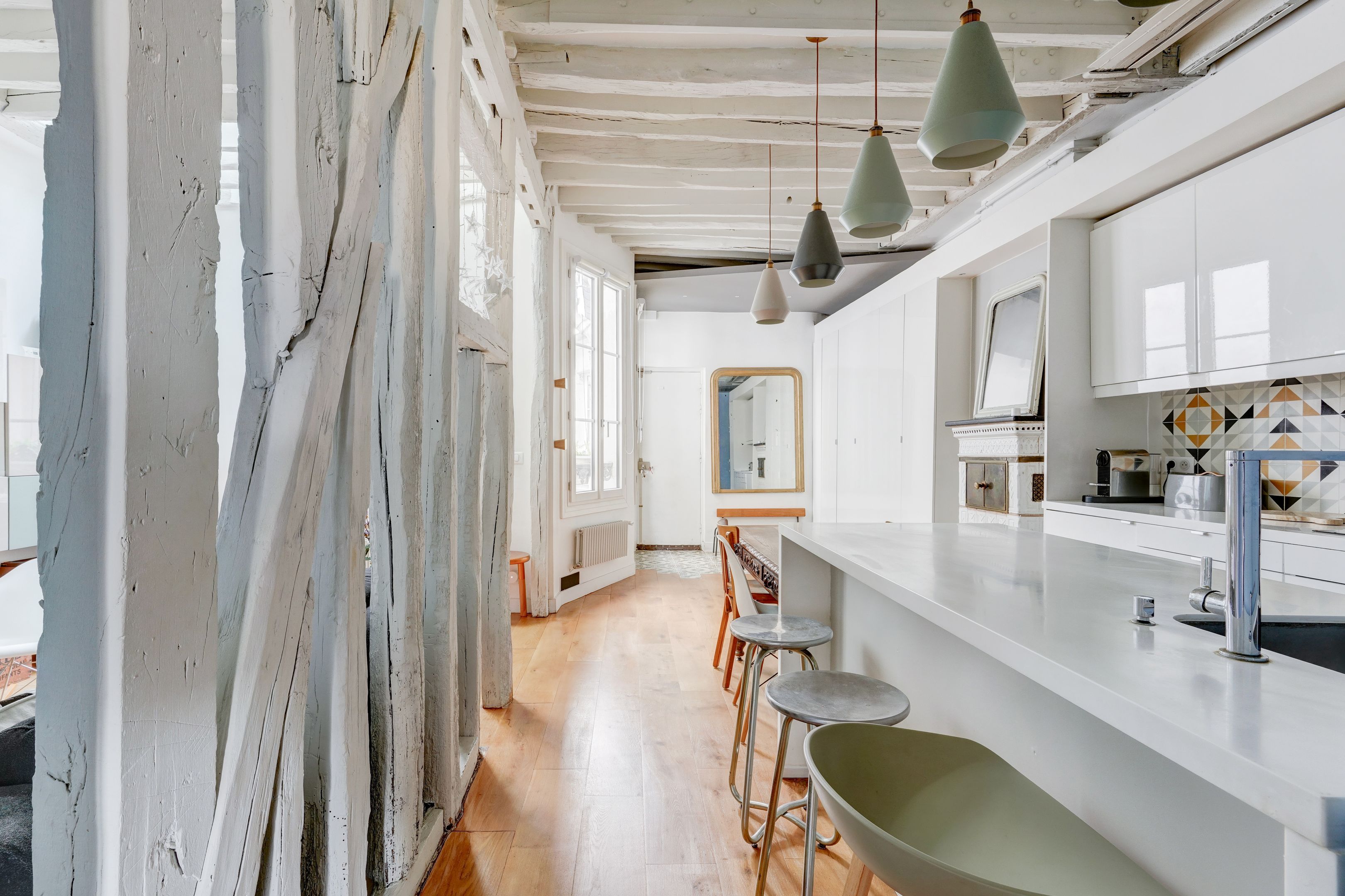 Immeuble 1840 très bien tenu, appartement 3 pièces de 77 m² Loi Carrez, au 4ème étage desservi par escalier, avec une hauteur sous plafond de plus de 3 m. Entrée, séjour lumineux, cuisine ouverte aménagée et équipée, chambre parentale, deuxième chambre, salle de bains avec baignoire et douche à l'italienne, toilettes. Espace bureau, rangements. Cave saine. Charme, luminosité, beaux volumes, calme. Vue sur le jardin d'un hôtel particulier.
