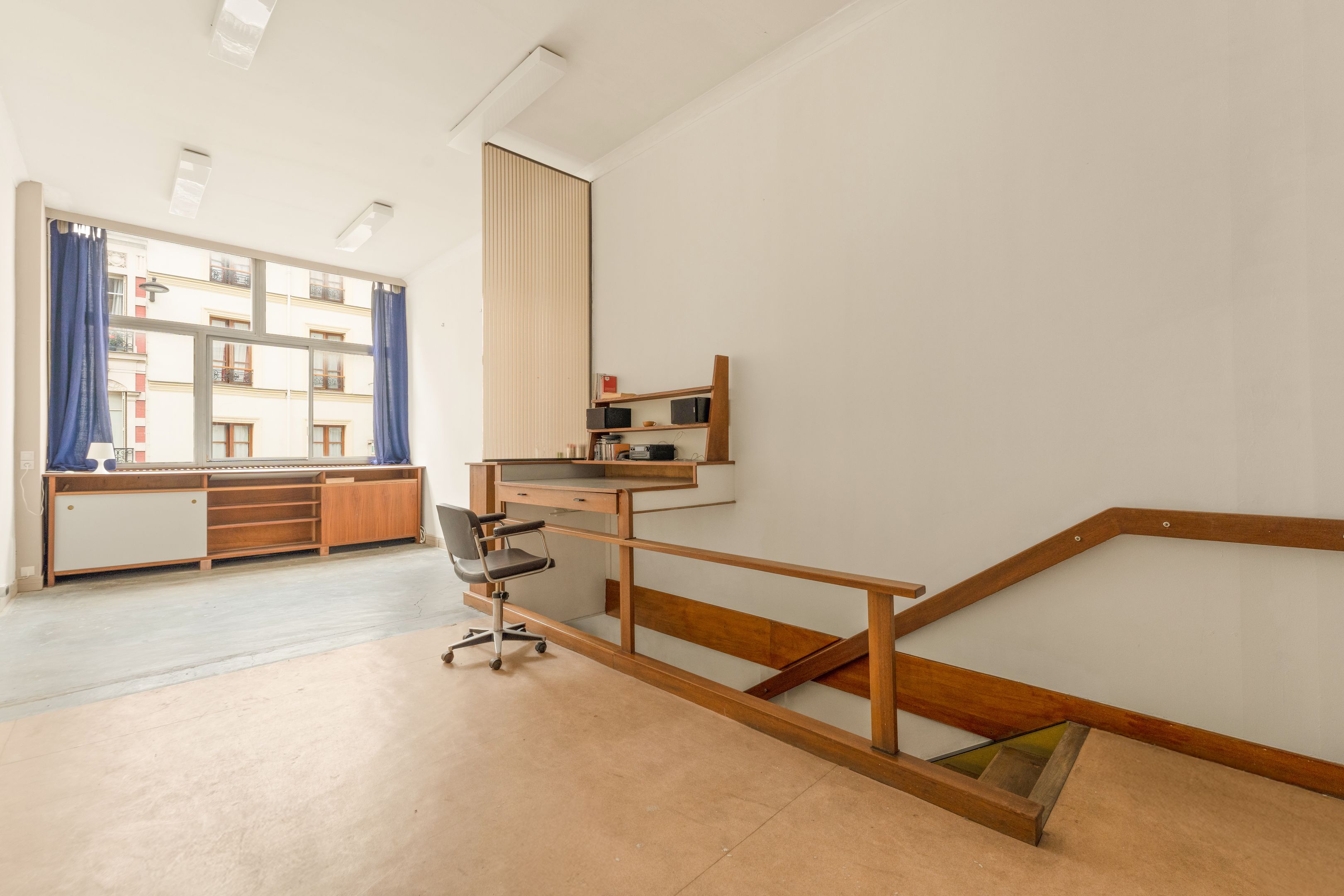 Entre Alésia et le Parc Montsouris, maison de 153m² construite dans les années 70 sur le principe de l'architecture moderne, à rénover entièrement. Érigée sur 3 niveaux façon loft, elle offre de multiples possibilités d'aménagement grâce à l'absence totale de murs porteurs (plan libre). Au rez-de-chaussée : entrée, atelier d'artiste sous verrière avec belle hauteur sous plafond, toilettes. Au 1er étage : séjour, bureau. Au 2e étage, deux chambres, salle de bains, dressing. Un box de 18 m2 complète le bien au rez-de-chaussée (accessible depuis l'atelier d'artiste) valorisé 50 000 €, ainsi que deux emplacements de stationnement au 1er sous-sol valorisés chacun à 20 000 €.