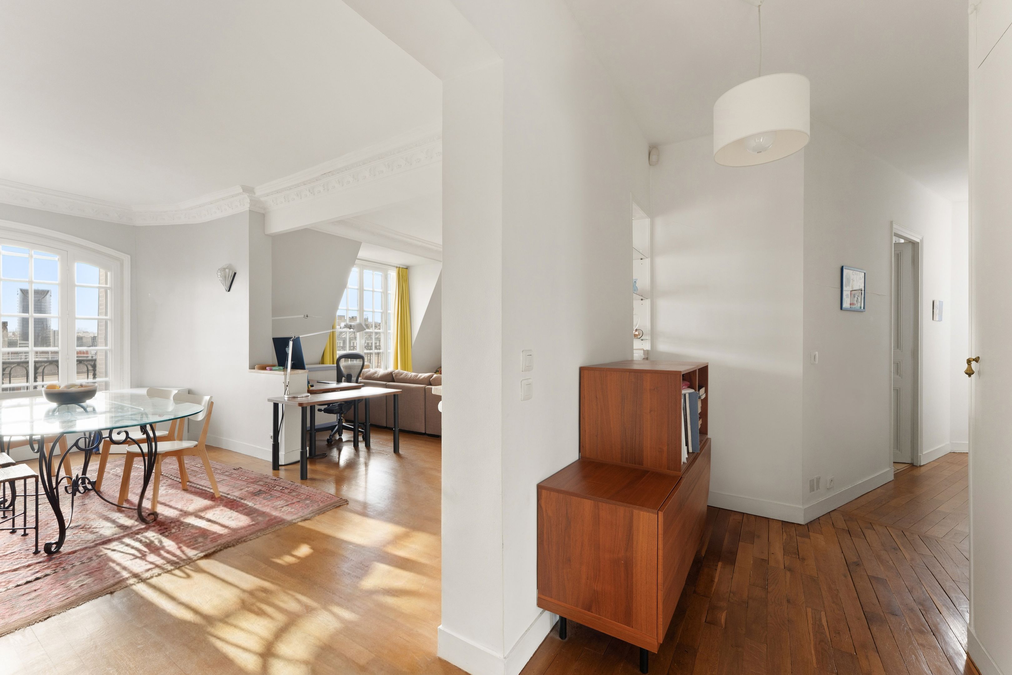 Immeuble 1920 de belle facture aux parties communes de standing, à proximité immédiate des commerces et des transports. Au 7ème et dernier étage, desservi par un ascenseur à mi-palier, appartement de 100 m² doté de beaux volumes, du charme de l'ancien et d'une belle luminosité grâce à sa vue dégagée et son exposition sud-est. Entrée, double séjour, cuisine séparée aménagée et équipée, dégagement avec placards, deux chambres, salle de bains et toilettes séparées. Cave. Exclusivité.