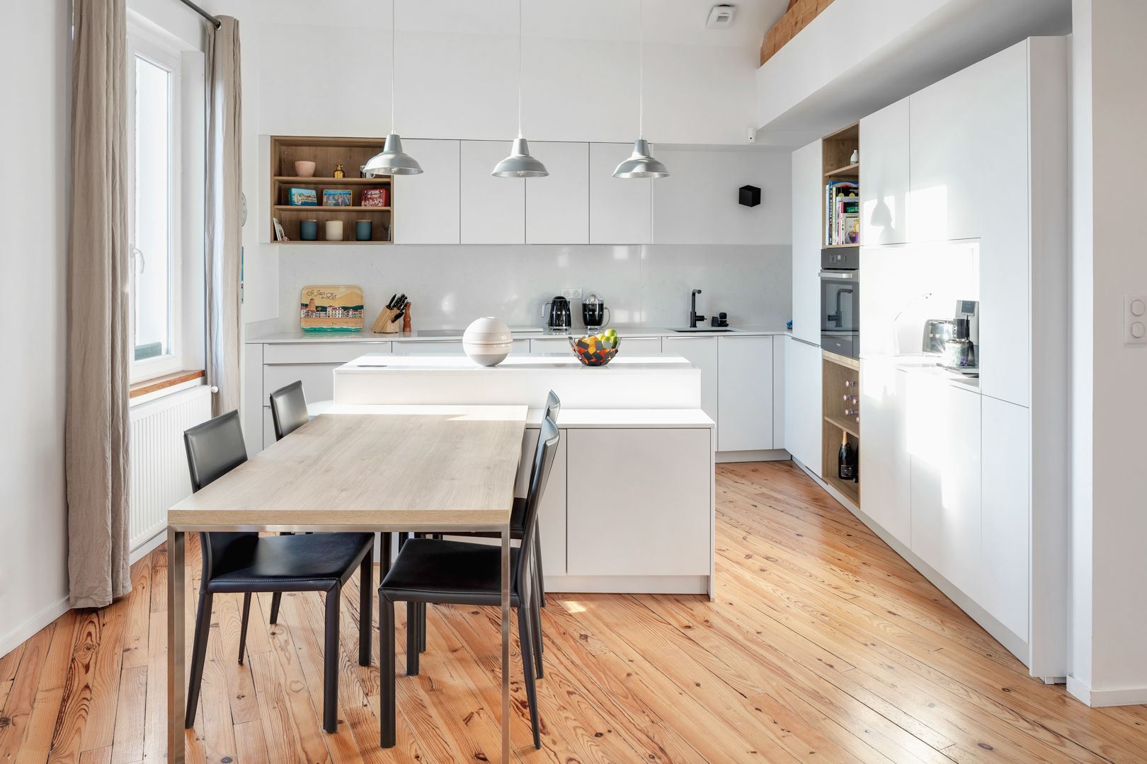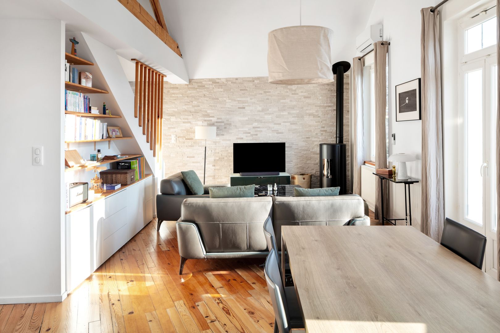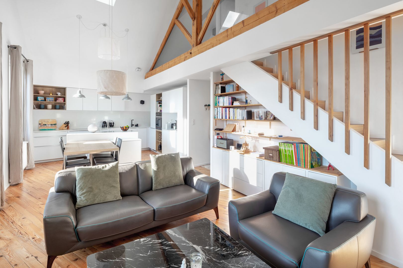 À quelques pas du Connecteur, loft en duplex d'une superficie de 115,86 m² habitables (91,25 m² loi Carrez). Entrée disposant de rangements, espace de réception doté d'une cuisine dinatoire, salle à manger et salon avec poêle à granulés donnant sur un balcon, deux chambres avec placards et chacune sa salle d'eau, toilettes. À l'étage : troisième chambre, sa salle d'eau et toilettes. Cave.