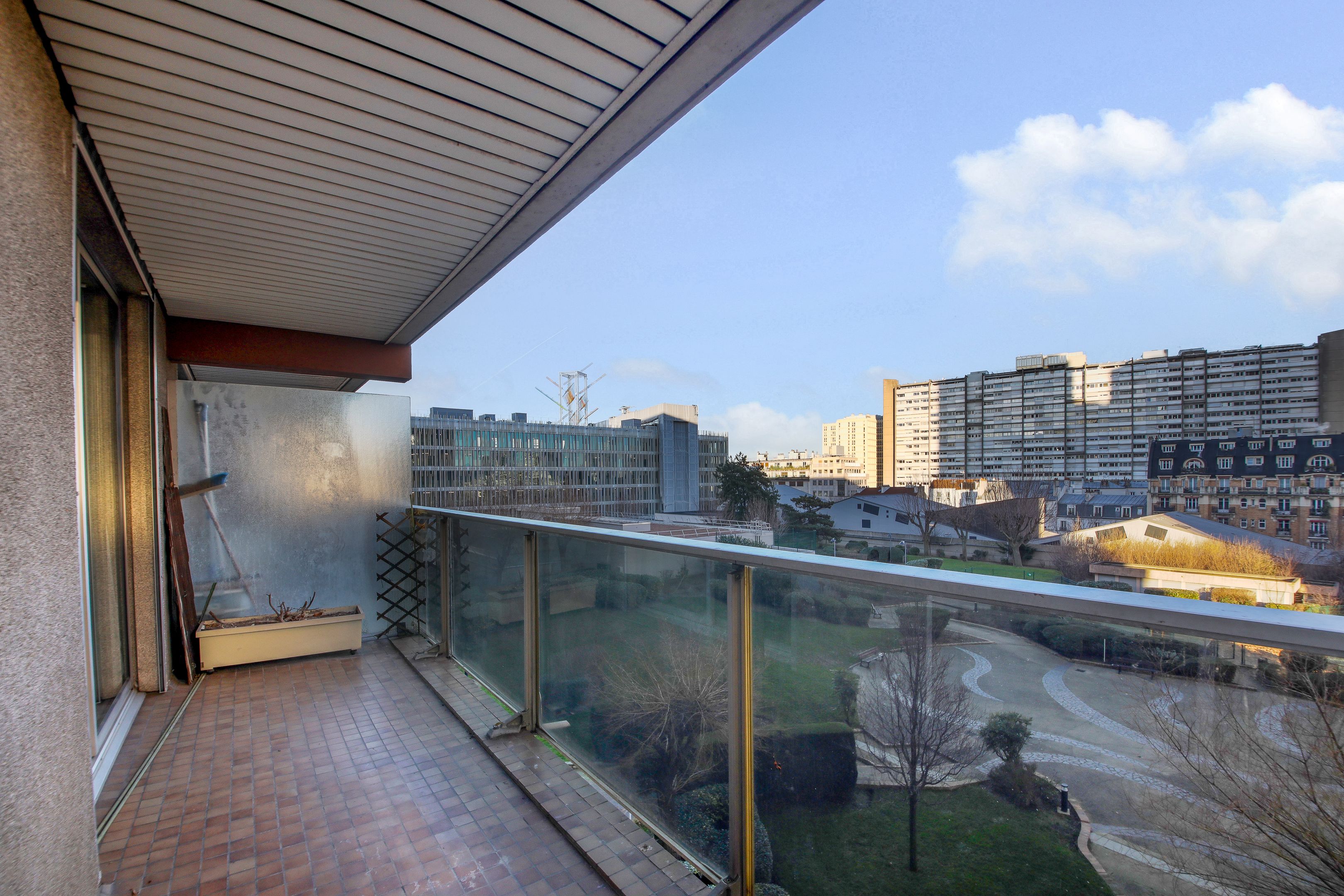 A proximité de la place d'Italie et du quartier de la Butte-aux-Cailles, des commerces, transports et écoles. Immeuble de standing des années 1970, appartement lumineux, traversant, à rénover, au 8ème étage desservi par ascenseur, doté d'un plan compact, de deux larges balcons (de plain-pied séjour et chambres). Entrée, vaste double réception bénéficiant d'une vue dégagée et d'une belle exposition sud-ouest, cuisine indépendante équipée, 2 chambres, salle d'eau et toilettes invités. Parking dans l'immeuble. Cave.