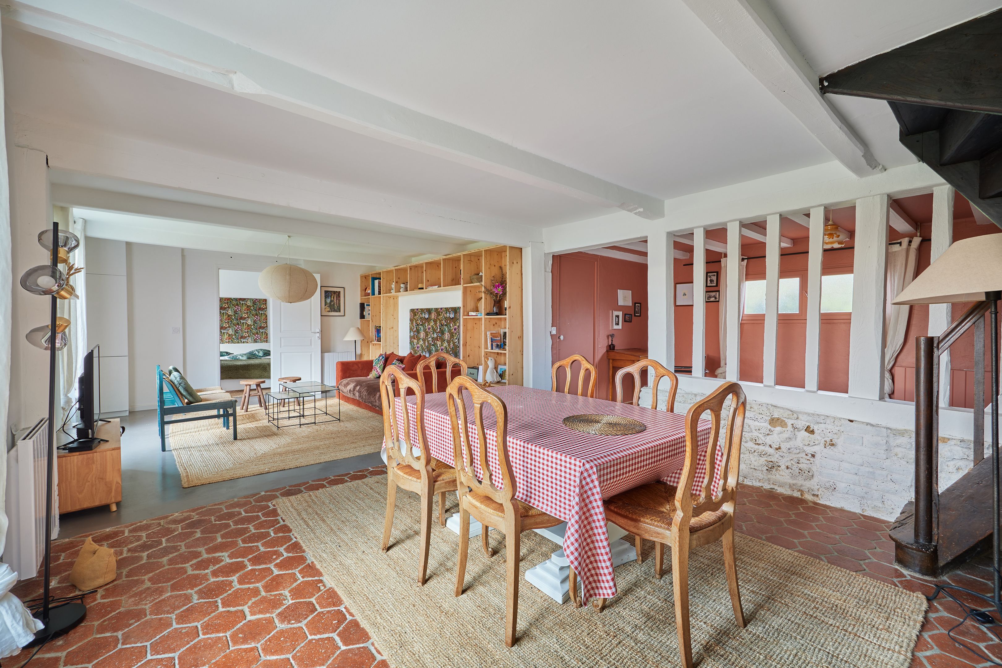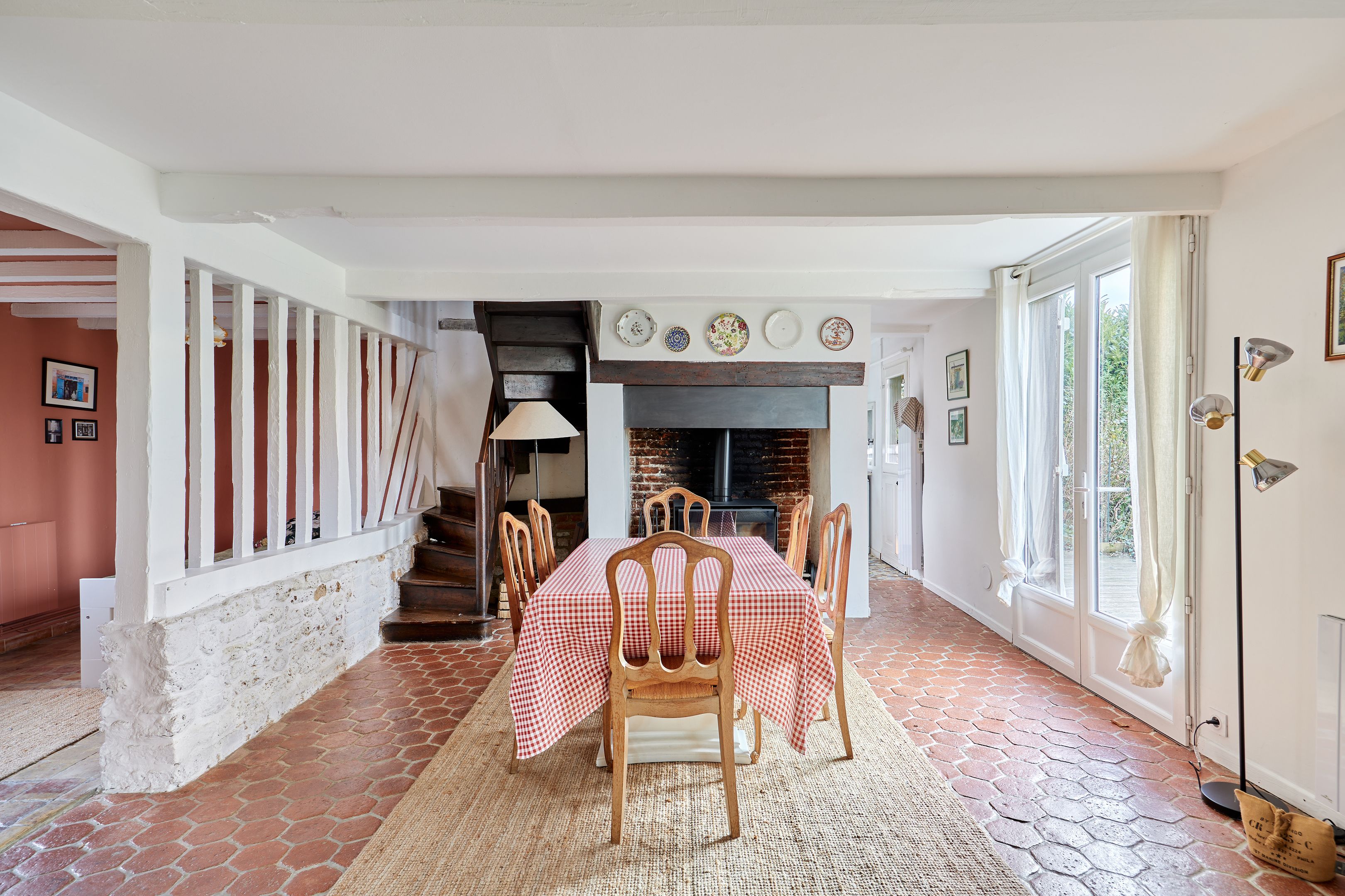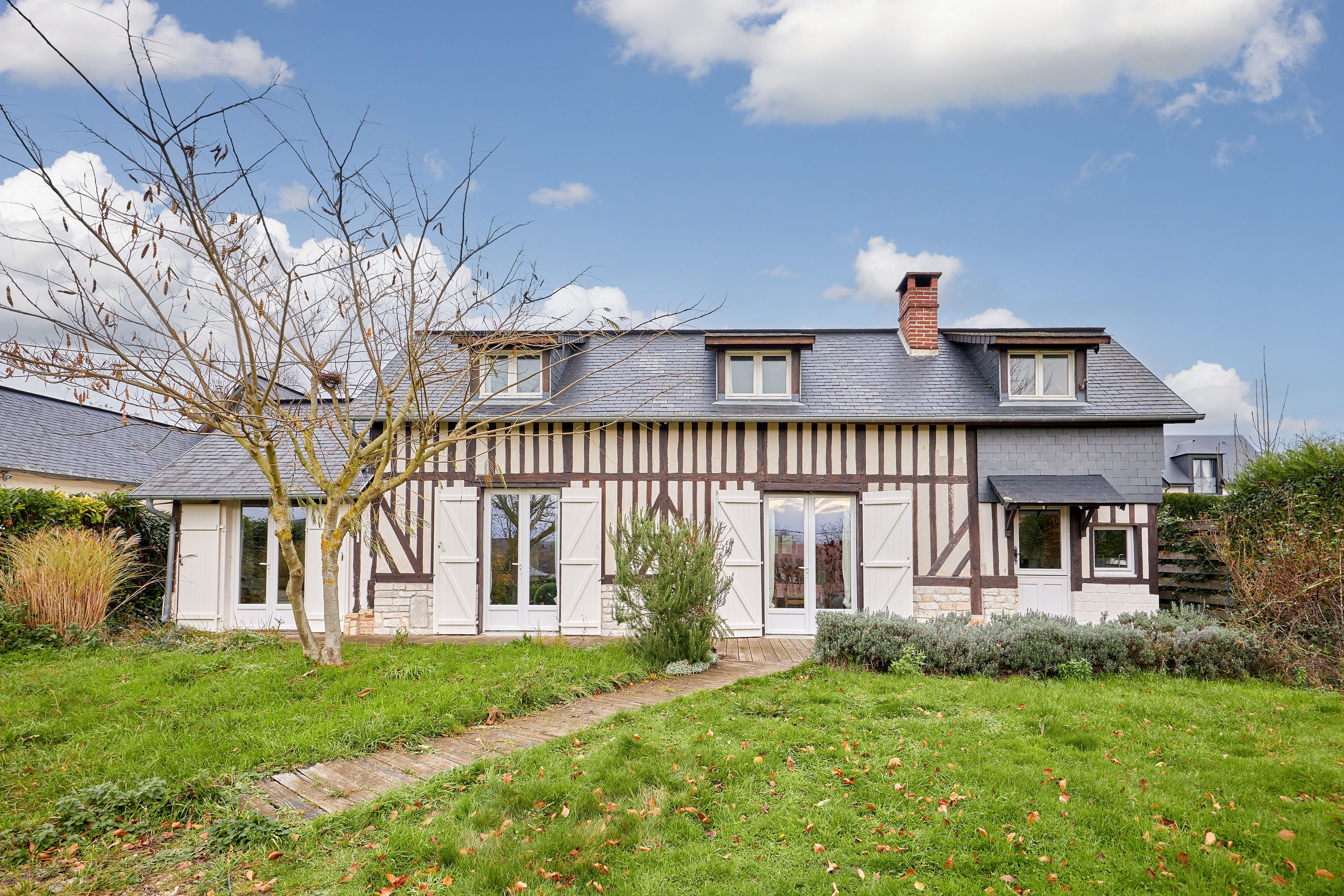 À 10 min de Deauville, charmante longère de 106 m² édifiée sur un terrain de 847 m² entièrement clos. Au rez-de-chaussée : pièce à vivre avec insert ouverte sur la terrasse exposée sud-ouest, petit salon, cuisine dinatoire indépendante, buanderie, chambre avec placards, salle d'eau avec toilettes. À l'étage : large pièce palière, deux chambres dont une avec toilettes. Abri de jardin.