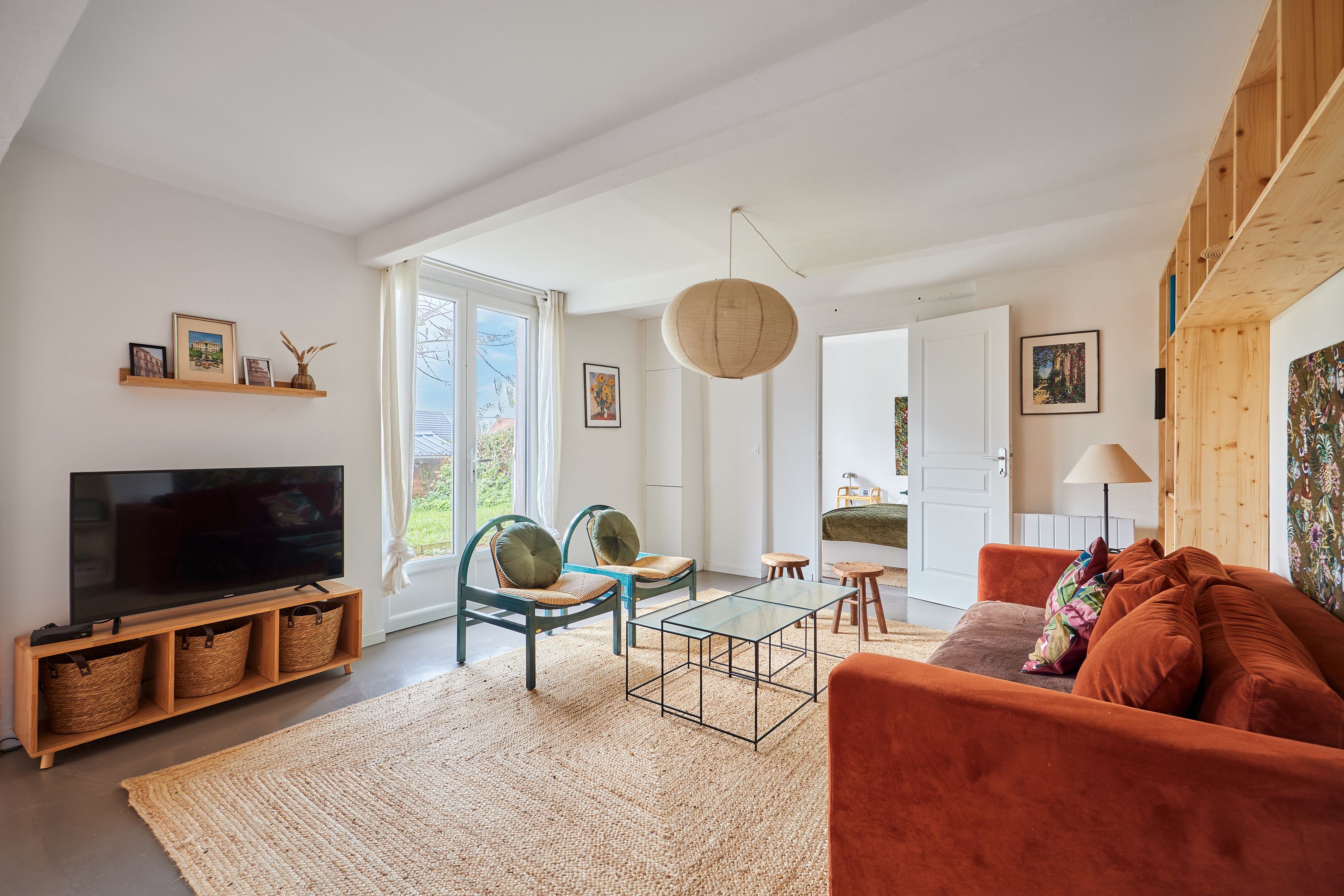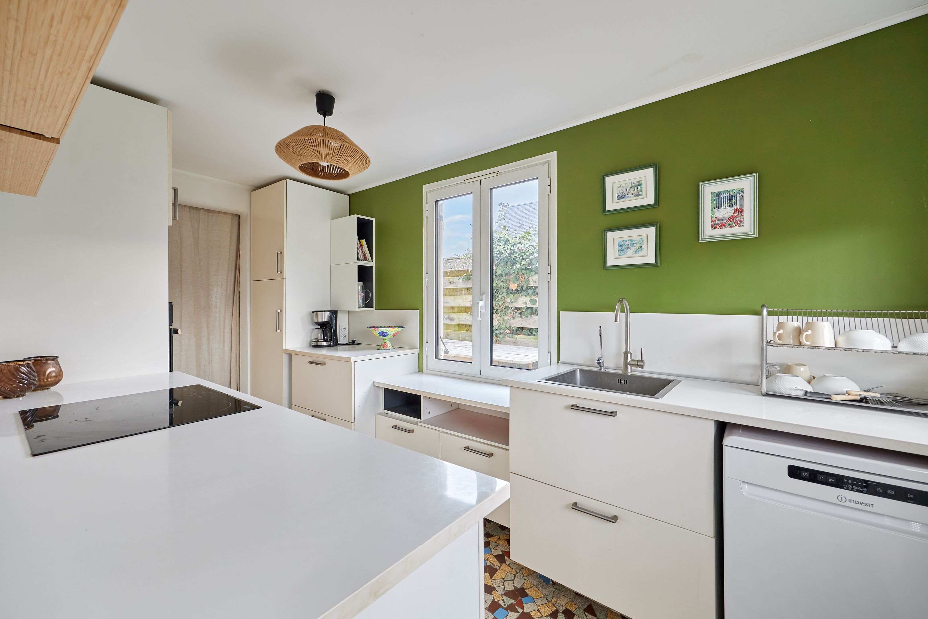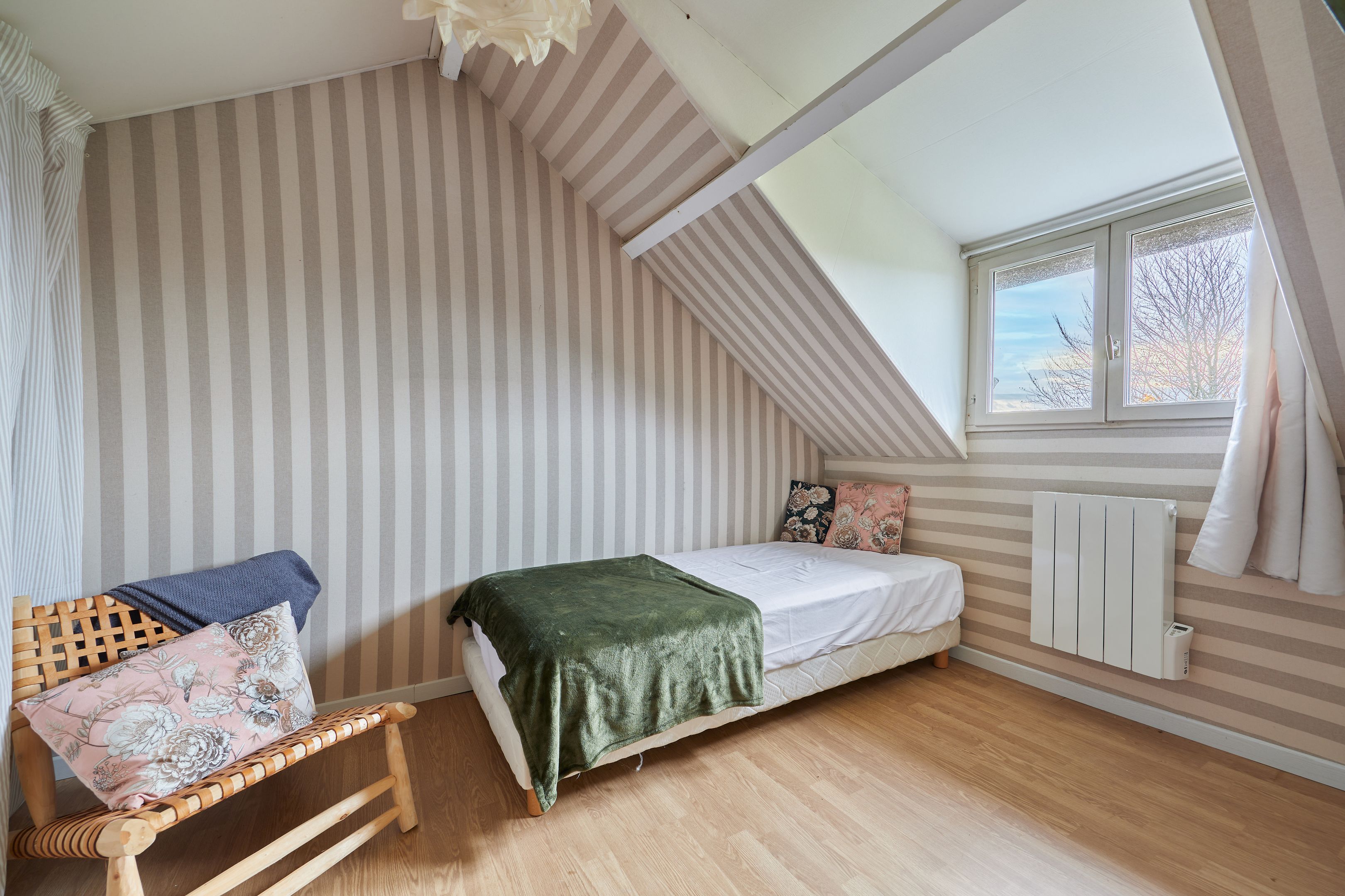 À 10 min de Deauville, charmante longère de 106 m² édifiée sur un terrain de 847 m² entièrement clos. Au rez-de-chaussée : pièce à vivre avec insert ouverte sur la terrasse exposée sud-ouest, petit salon, cuisine dinatoire indépendante, buanderie, chambre avec placards, salle d'eau avec toilettes. À l'étage : large pièce palière, deux chambres dont une avec toilettes. Abri de jardin.