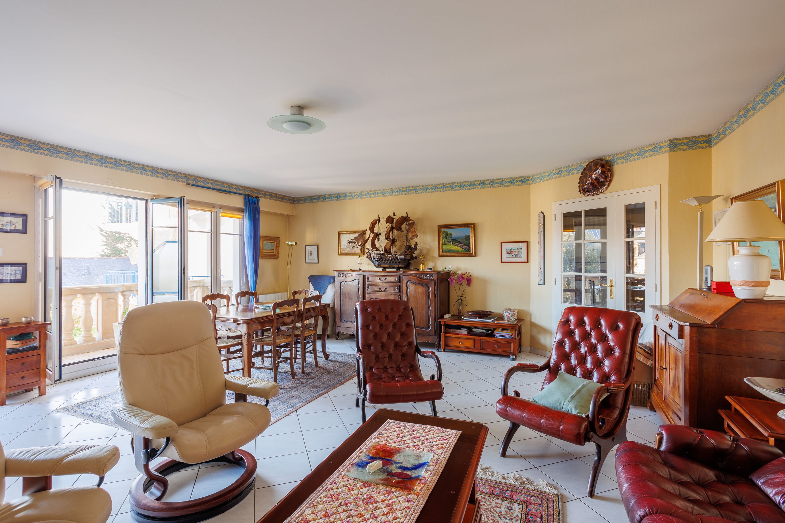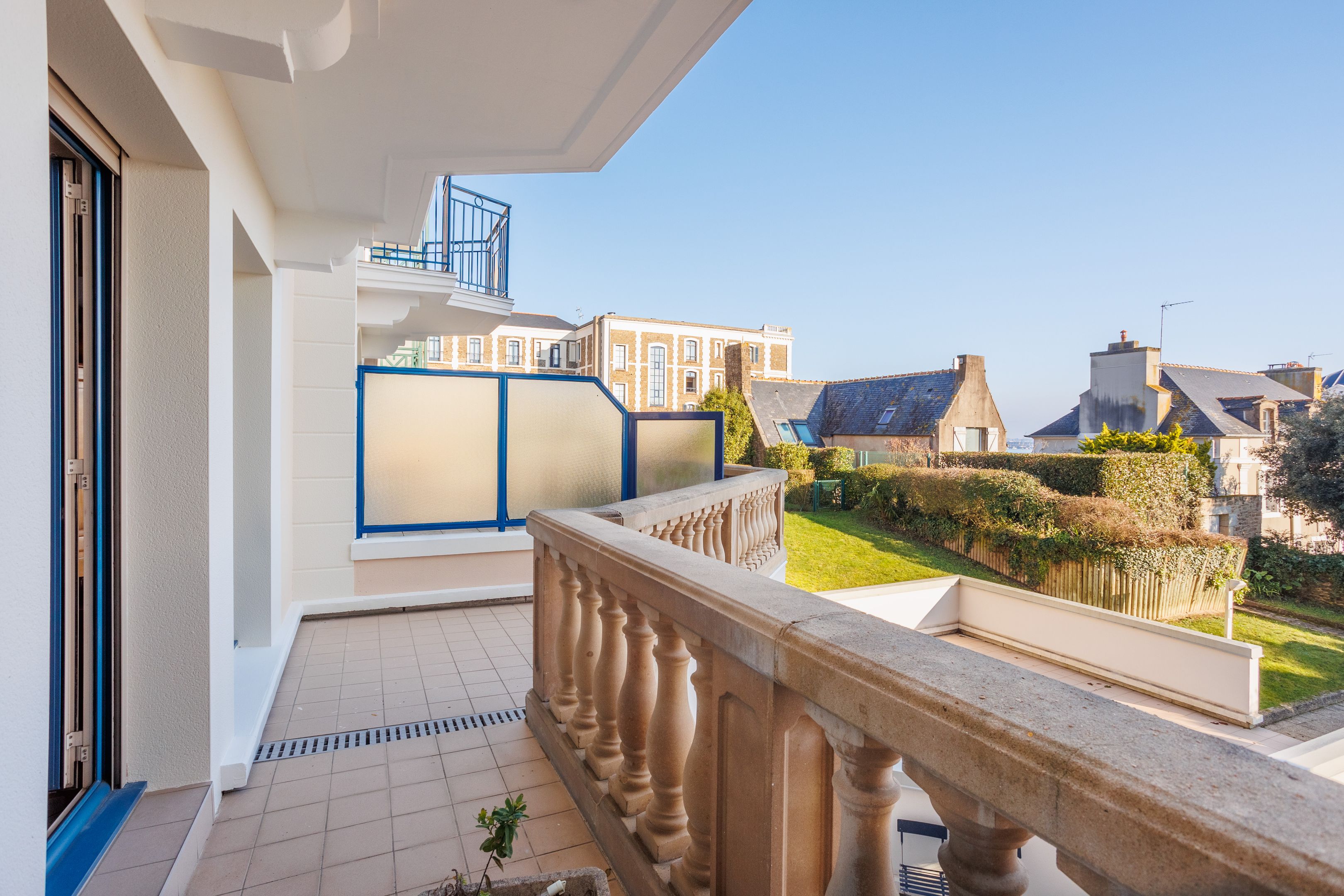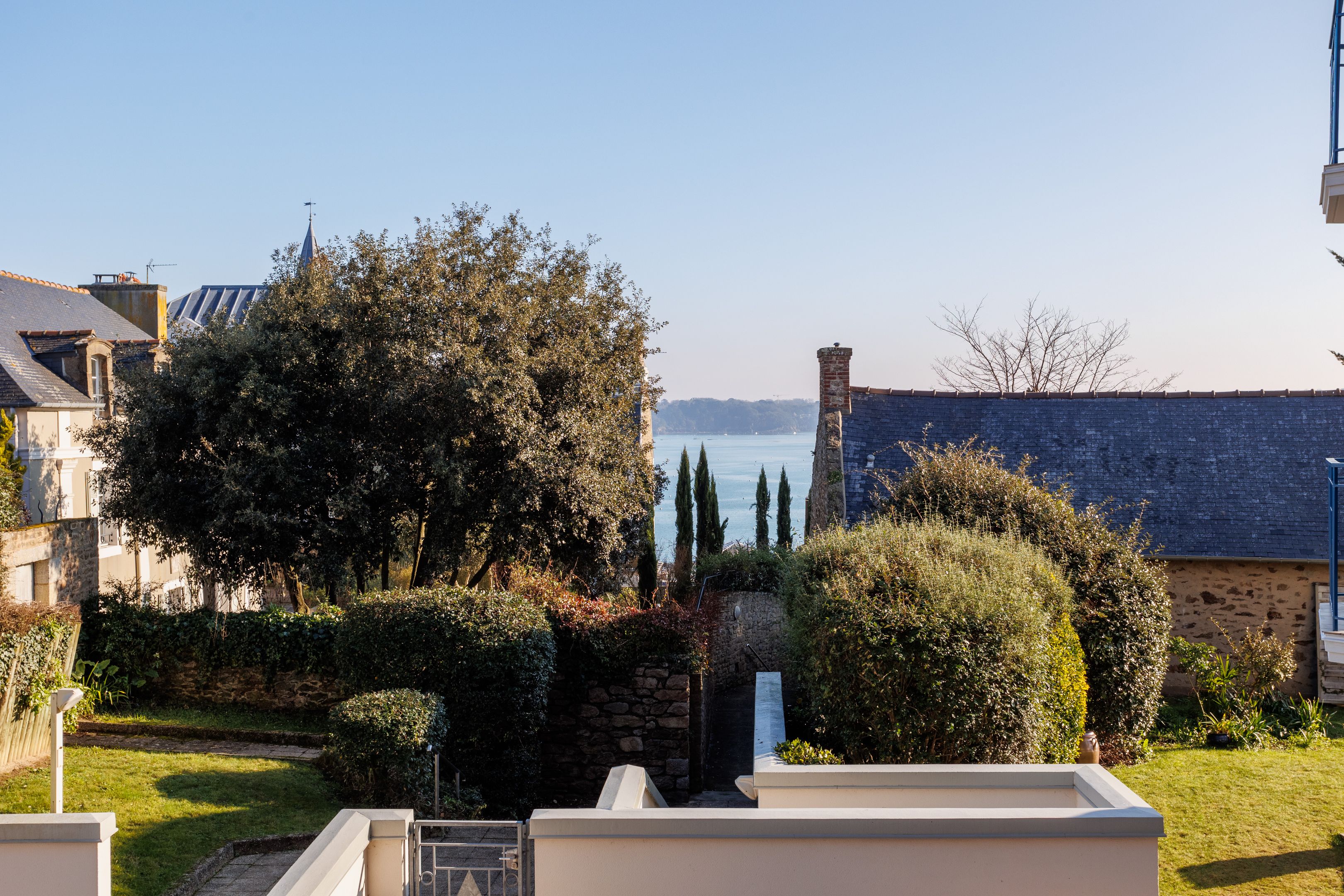 Résidence "Les Jardins du Tennis Club" - Au cœur de Dinard, à proximité immédiate des commerces, de la plage et du port de plaisance, dans une résidence calme et bien entretenue. Très agréable appartement de 115m² bénéficiant d'un emplacement recherché, d'un excellent plan et d'agréables extérieurs. Entrée, vaste séjour offrant une vue mer prolongé d'un balcon, cuisine dînatoire, grande suite parentale, deux autres chambres dont l'une ouvrant sur une terrasse orientée ouest, salle de bains, toilettes séparées. Cave de 3㎥. Deux places de stationnement intérieur. Garage à vélos et court de tennis à usage partagé. Services quotidiens d'une gardienne.