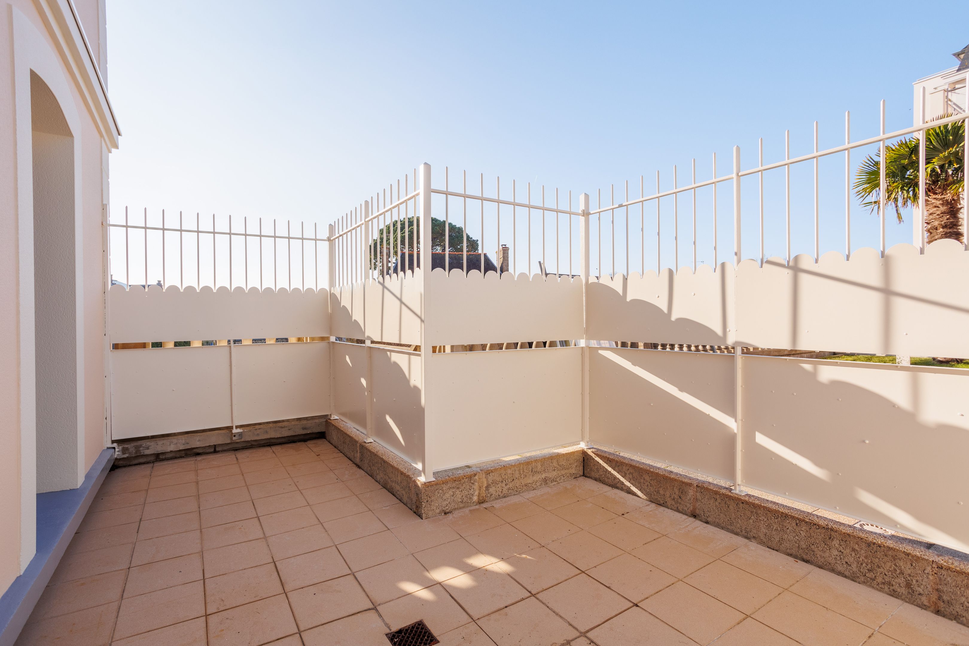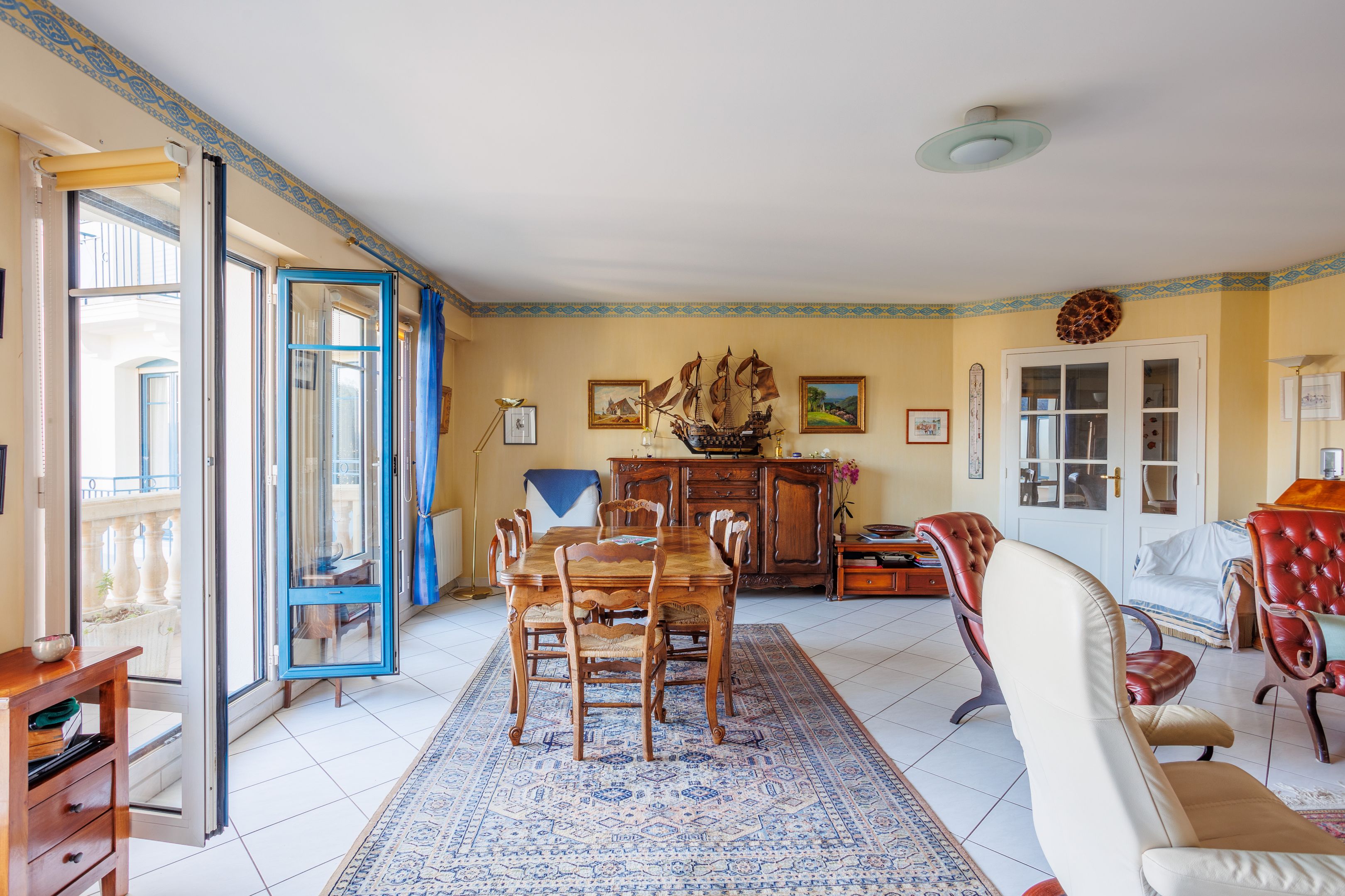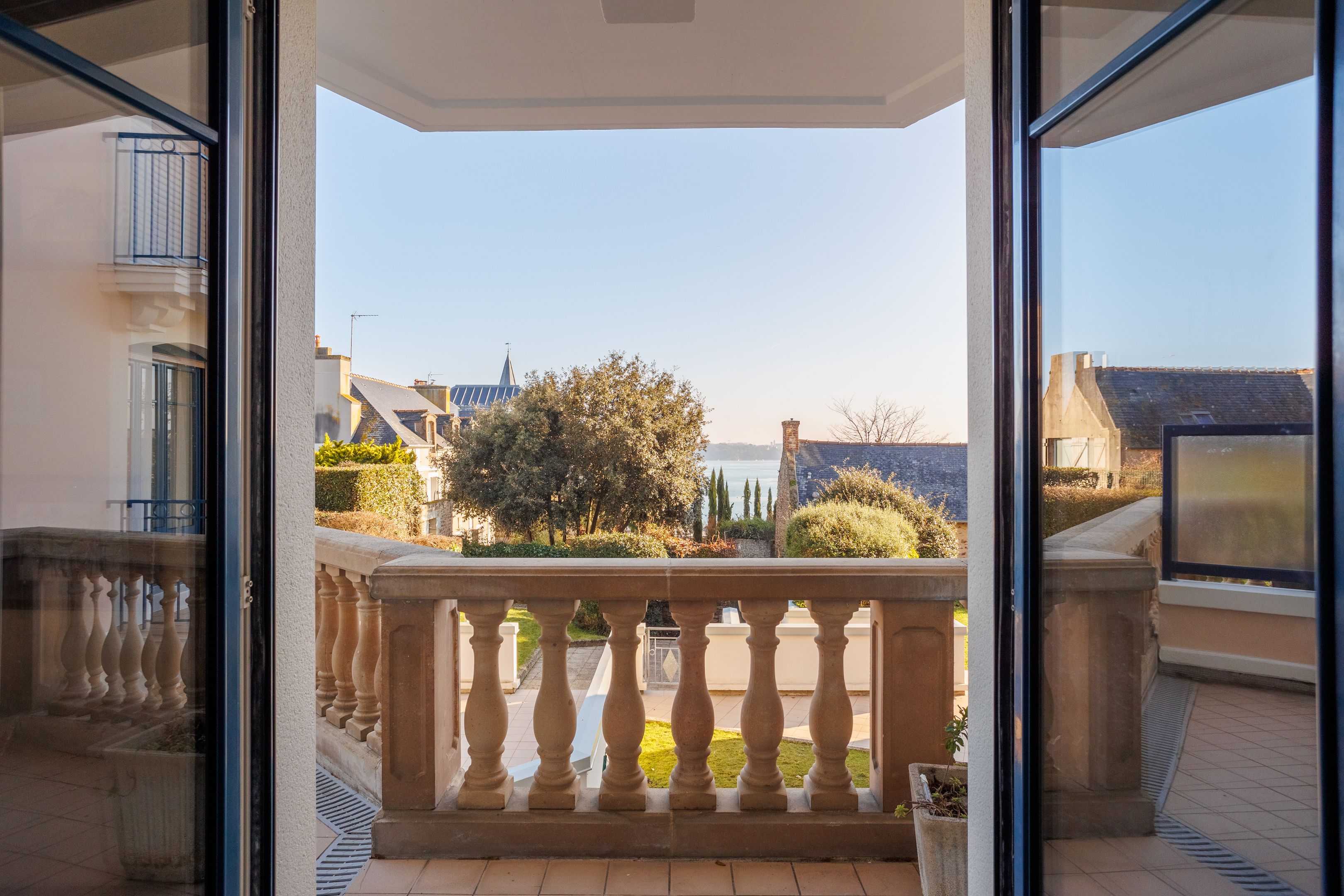 Résidence "Les Jardins du Tennis Club" - Au cœur de Dinard, à proximité immédiate des commerces, de la plage et du port de plaisance, dans une résidence calme et bien entretenue. Très agréable appartement de 115m² bénéficiant d'un emplacement recherché, d'un excellent plan et d'agréables extérieurs. Entrée, vaste séjour offrant une vue mer prolongé d'un balcon, cuisine dînatoire, grande suite parentale, deux autres chambres dont l'une ouvrant sur une terrasse orientée ouest, salle de bains, toilettes séparées. Cave de 3㎥. Deux places de stationnement intérieur. Garage à vélos et court de tennis à usage partagé. Services quotidiens d'une gardienne.