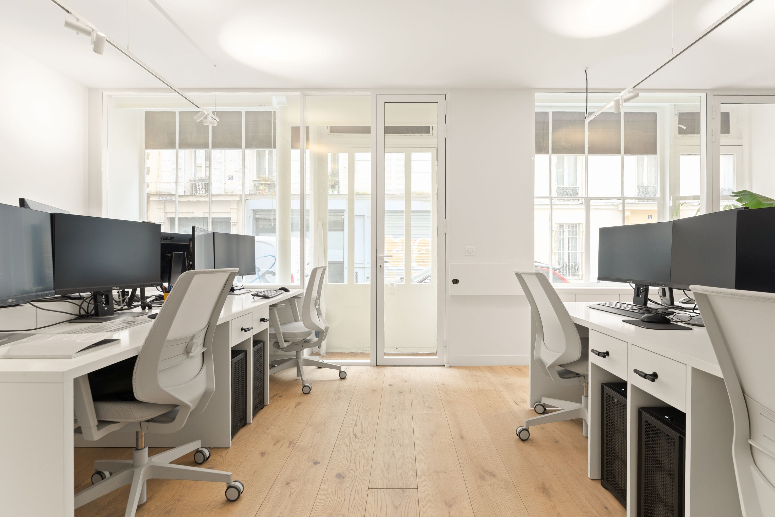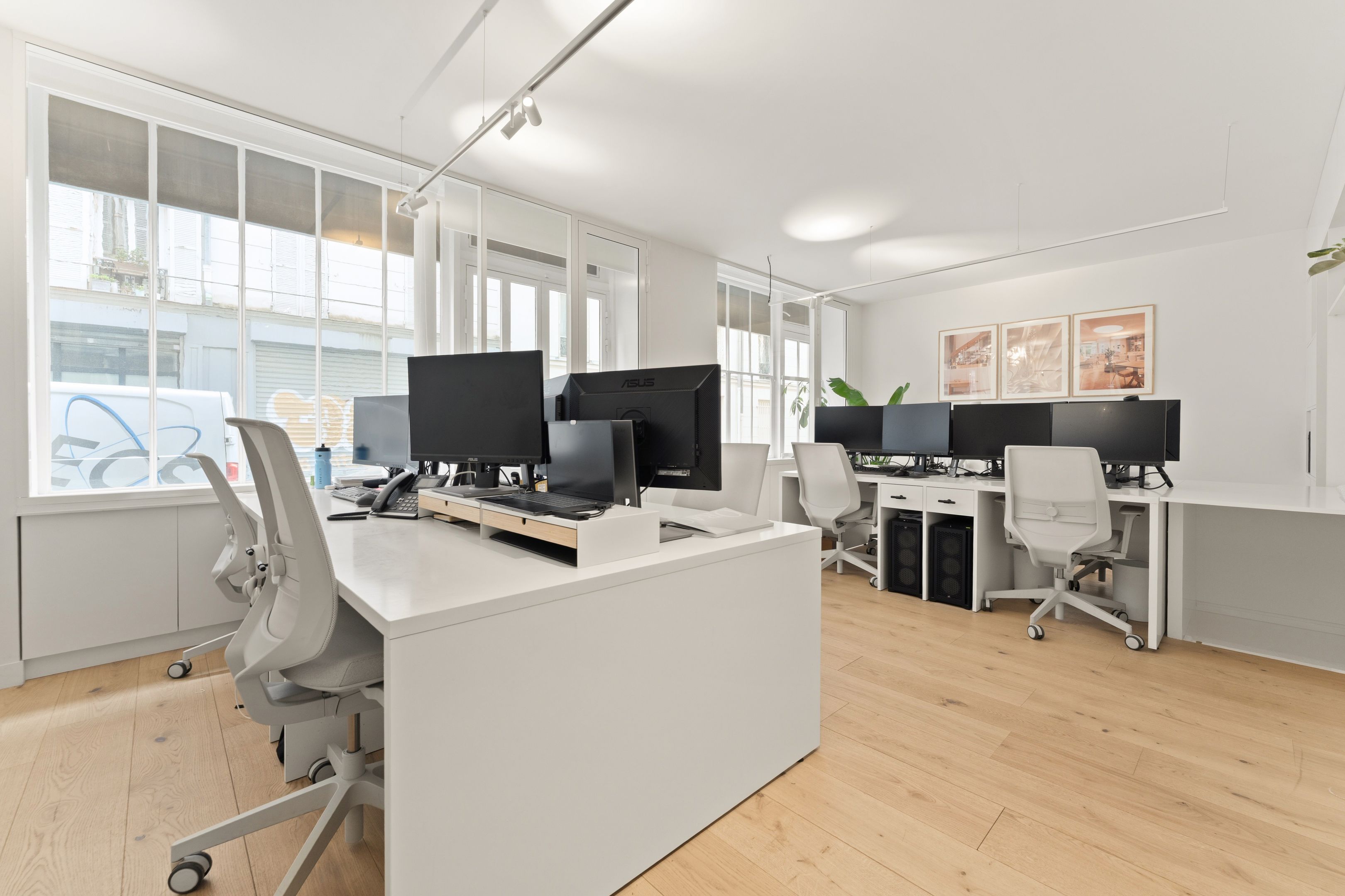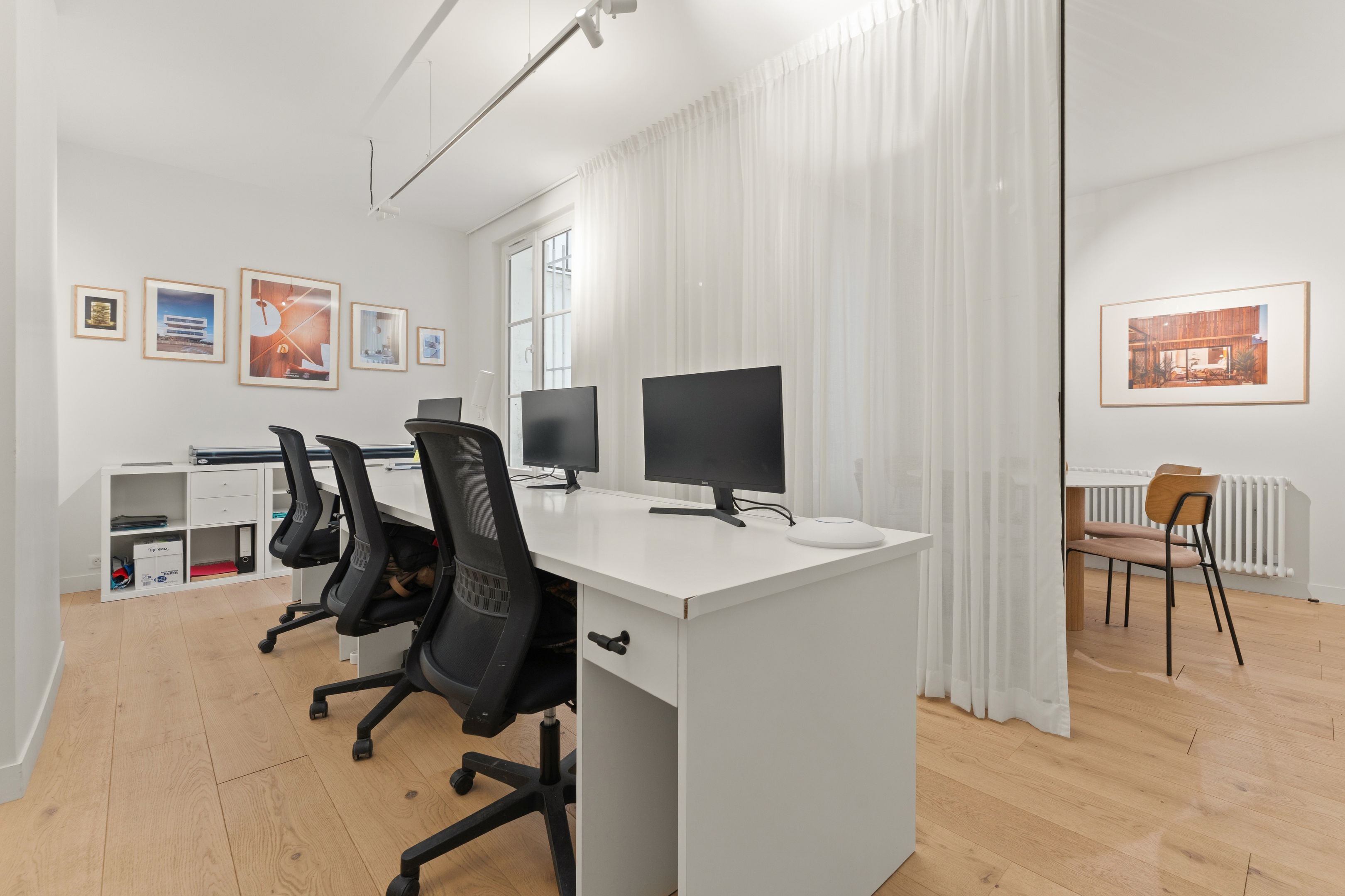 Immeuble des années 1880, ancien local commercial situé au rez-de-chaussée, 70 m² aménagé en bureau. Grand espace type open space, salle de réunion, bureau de direction, salle d'eau avec toilettes. Calme, traversant. Possibilité d'usage mixte.