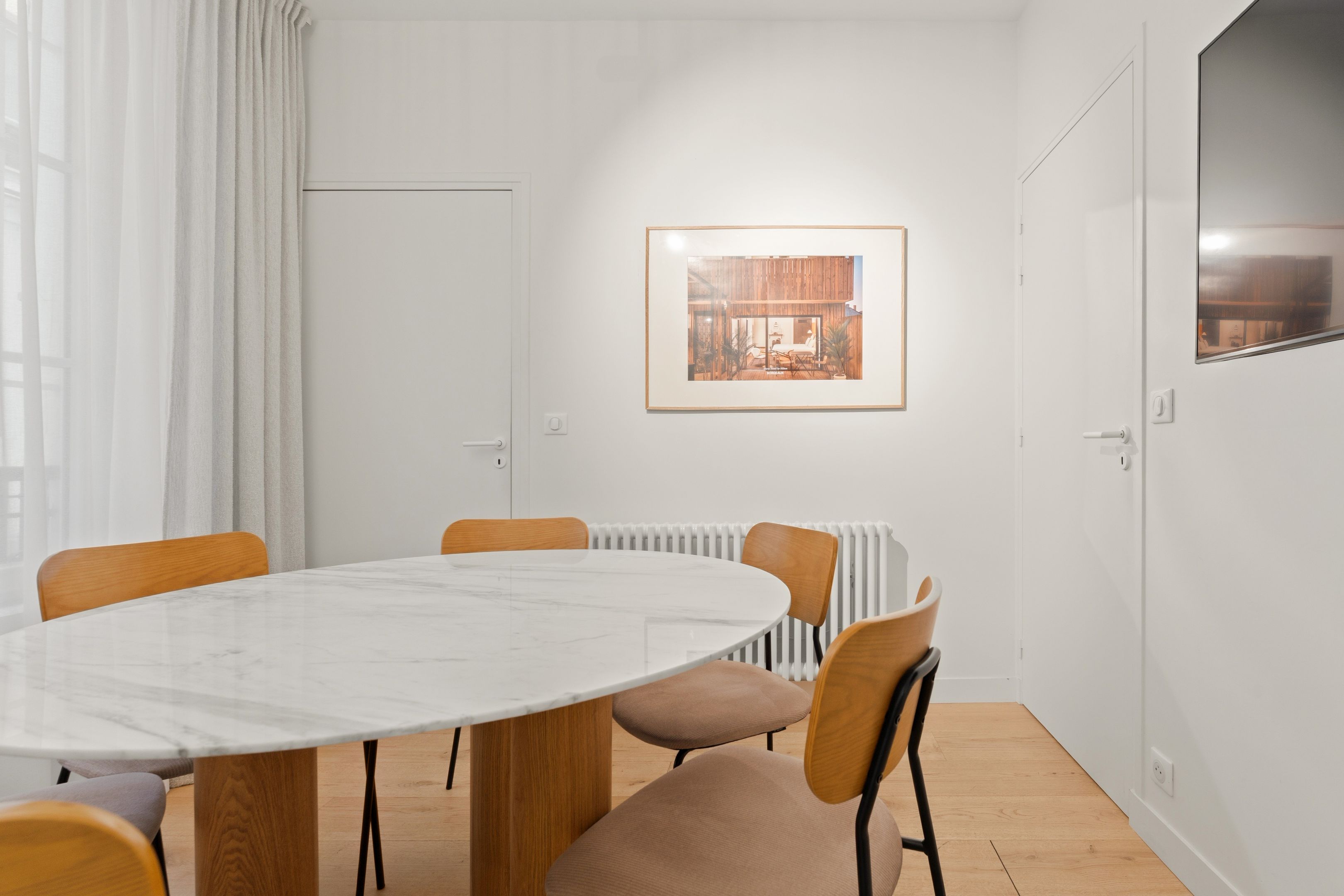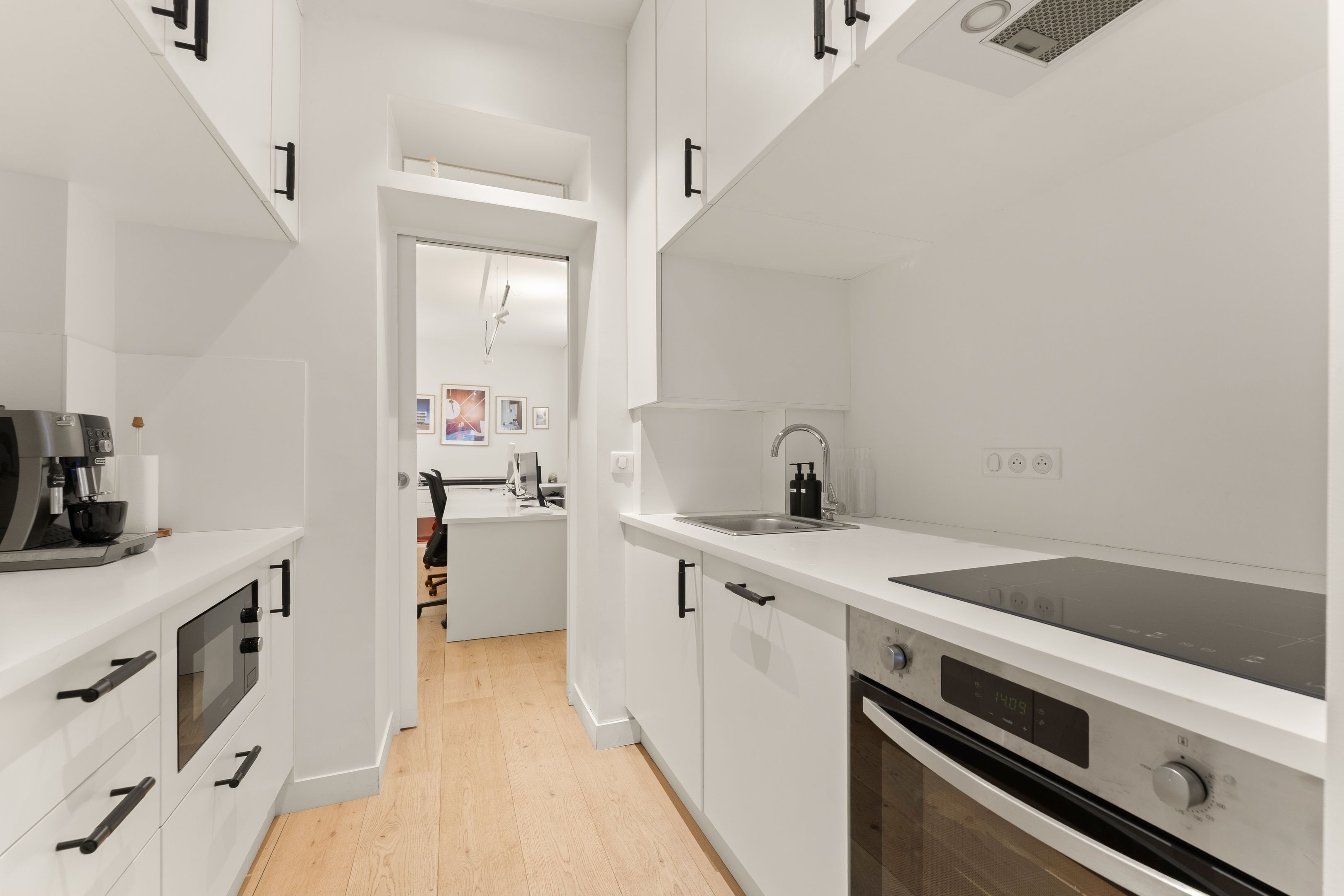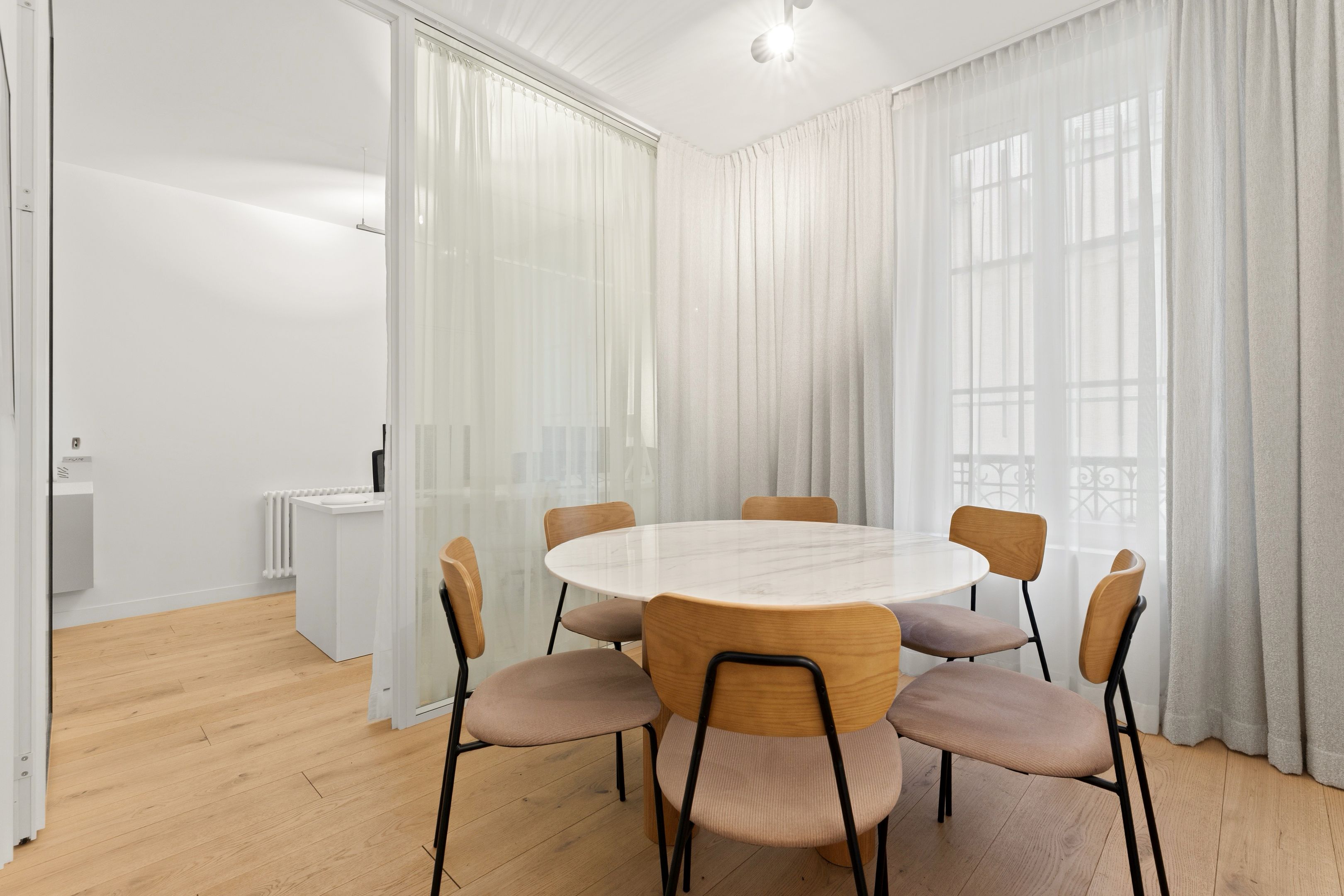Immeuble des années 1880, ancien local commercial situé au rez-de-chaussée, 70 m² aménagé en bureau. Grand espace type open space, salle de réunion, bureau de direction, salle d'eau avec toilettes. Calme, traversant. Possibilité d'usage mixte.