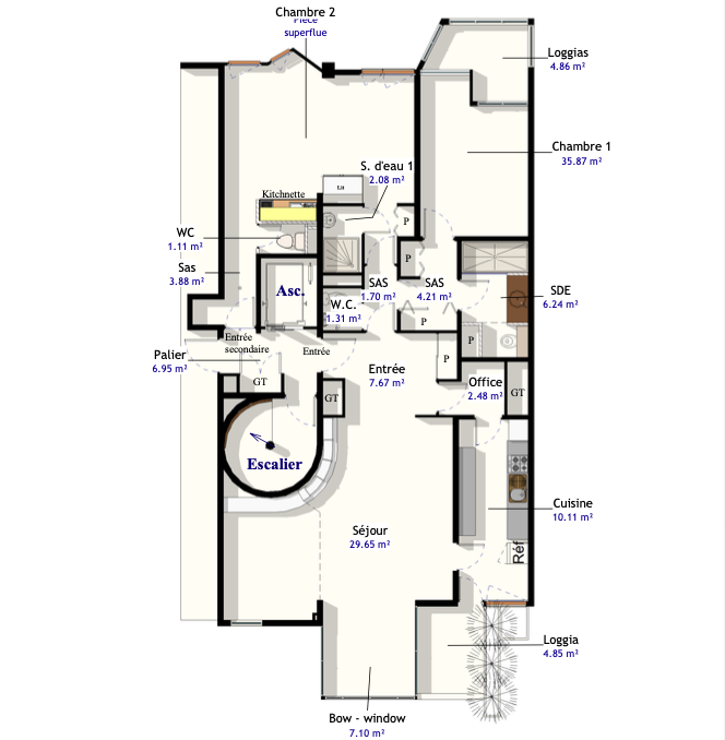 121 m²3 chambresPrix hors honoraires: 1 105 769 €DPE: D (193 kWh/m².an) / GES: C (27kg CO2/m².an)Charges annuelles 6 670 €Copropriété - 209 lotsPas de procédure en coursplan