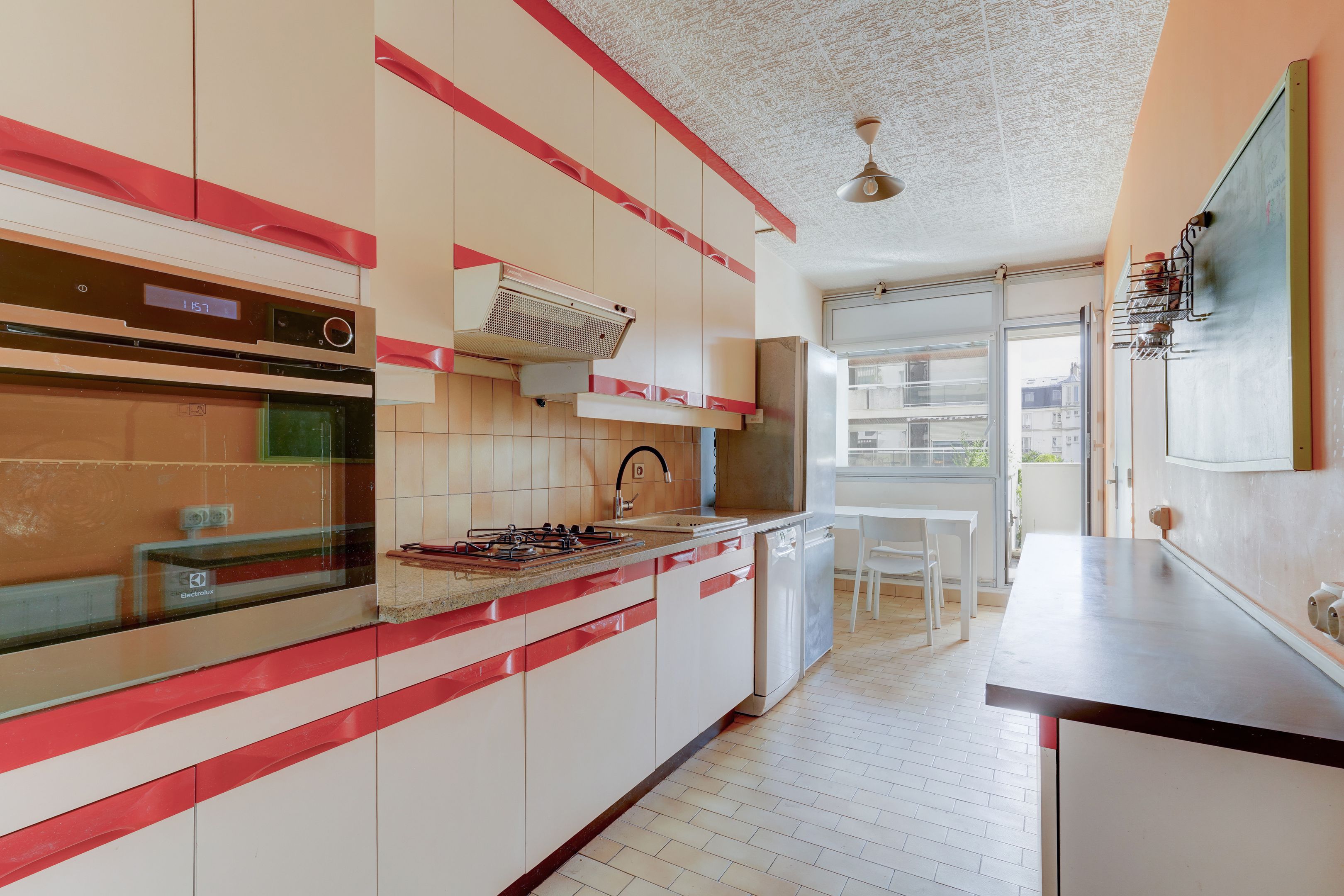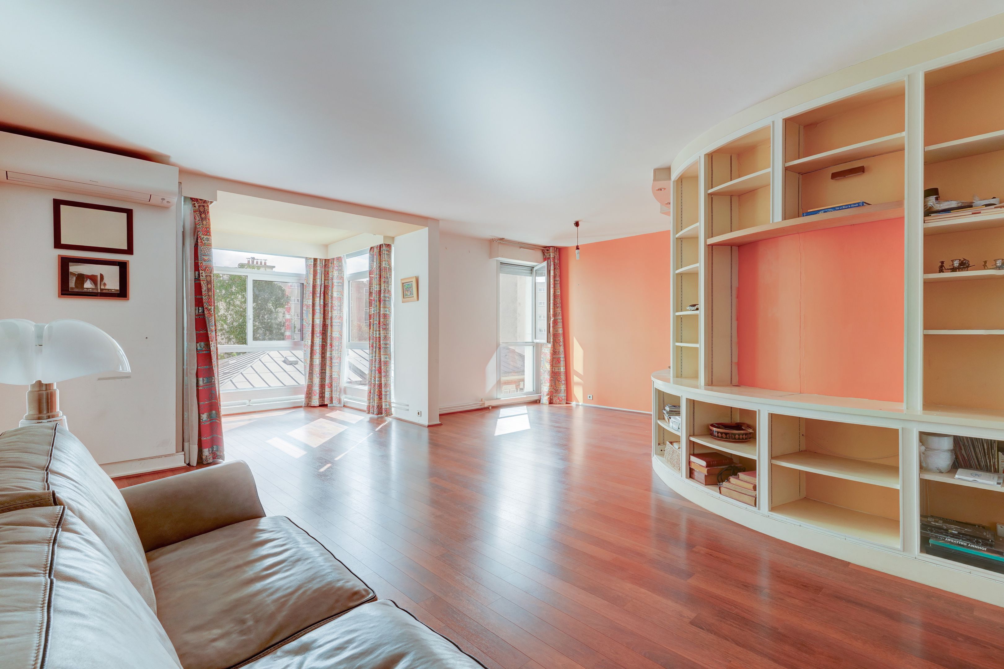 Village d'Auteuil, rue Erlanger, au sein d'une copropriété de standing parfaitement sécurisée et avec gardiens, un appartement familial avec terrasse et loggia, situé au 4ème étage et desservi par ascenseur. D'une surface de 120,70 m², il comprend une entrée avec placards, un grand séjour/salle à manger avec bow-window ouvrant sur la terrasse, un espace bureau (3ème chambre possible), une cuisine indépendante avec accès sur l'extérieur, un office avec espace buanderie, deux salles de douches dont une avec toilettes, deux chambres, dont une se prolongeant par une loggia couverte et chauffée, un dégagement comprenant de nombreux rangements et deux toilettes indépendantes. Cave et deux emplacements de stationnement en enfilade en sus.