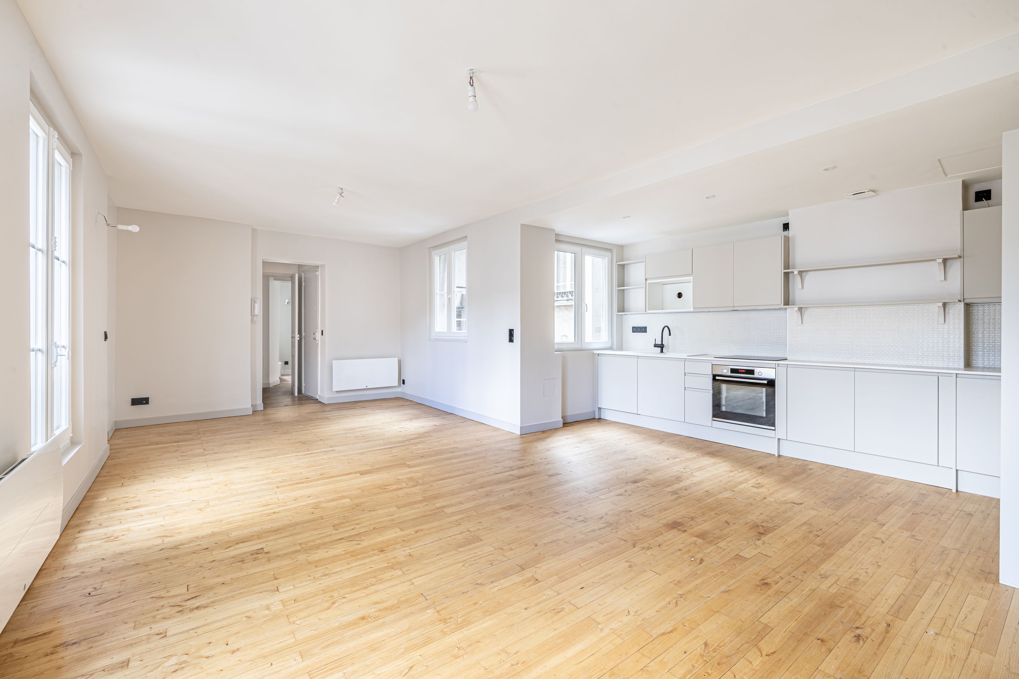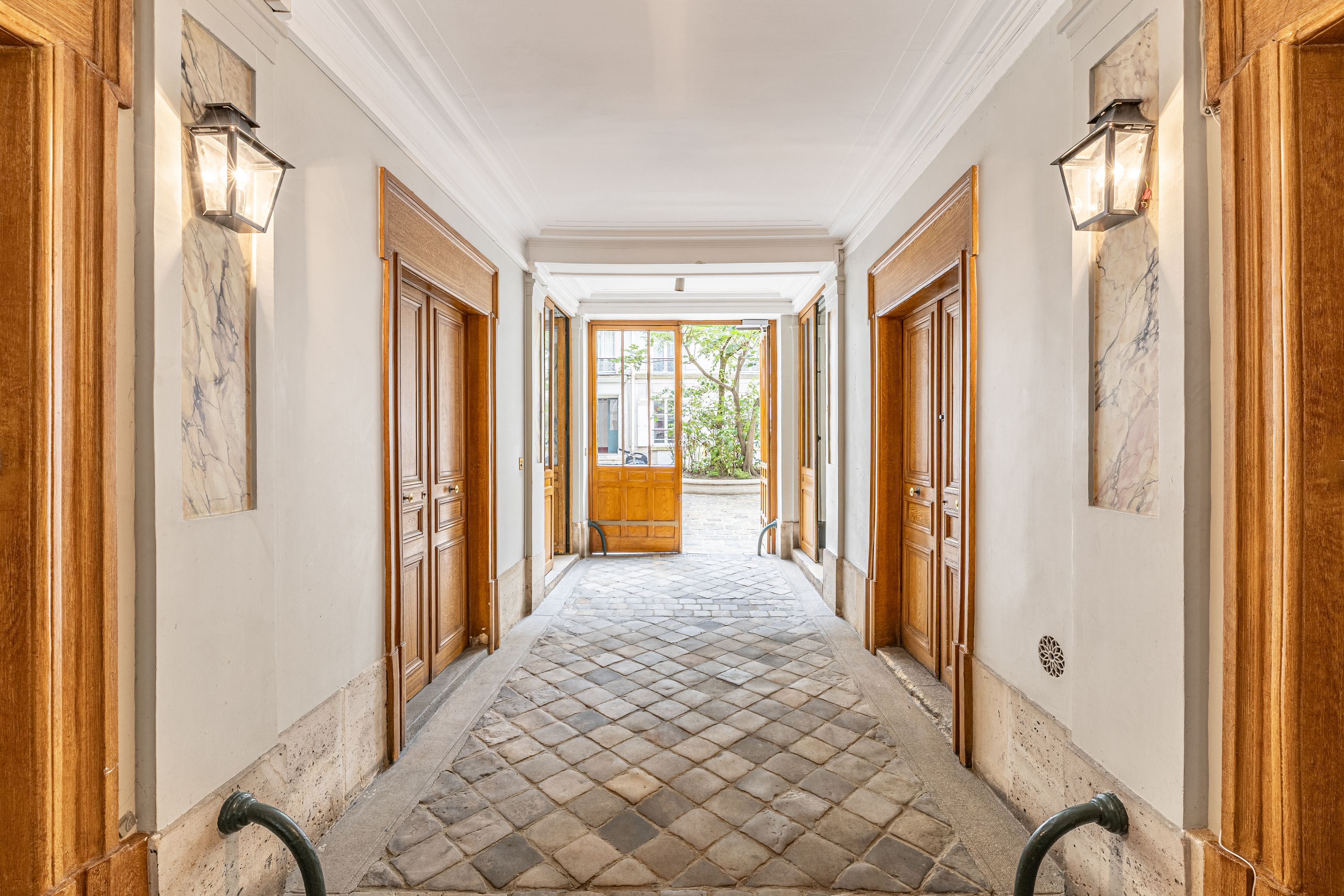 Immeuble ancien des années 1850, idéalement situé dans une rue prestigieuse à proximité des Invalides et de la rue Saint-Dominique, appartement de 76m² loi Carrez, situé au 4ème étage desservi par escalier, au calme sur une grande cour arborée, bénéficiant d'une très belle luminosité et d'un plan sans perte de place, entièrement refait par architecte. Entrée, séjour agrémenté d'une cuisine ouverte aménagée et équipée, suite parentale dotée de sa salle de bains avec toilettes et dressing, deux chambres avec chacune sa salle d'eau, toilettes séparées. Deux caves.