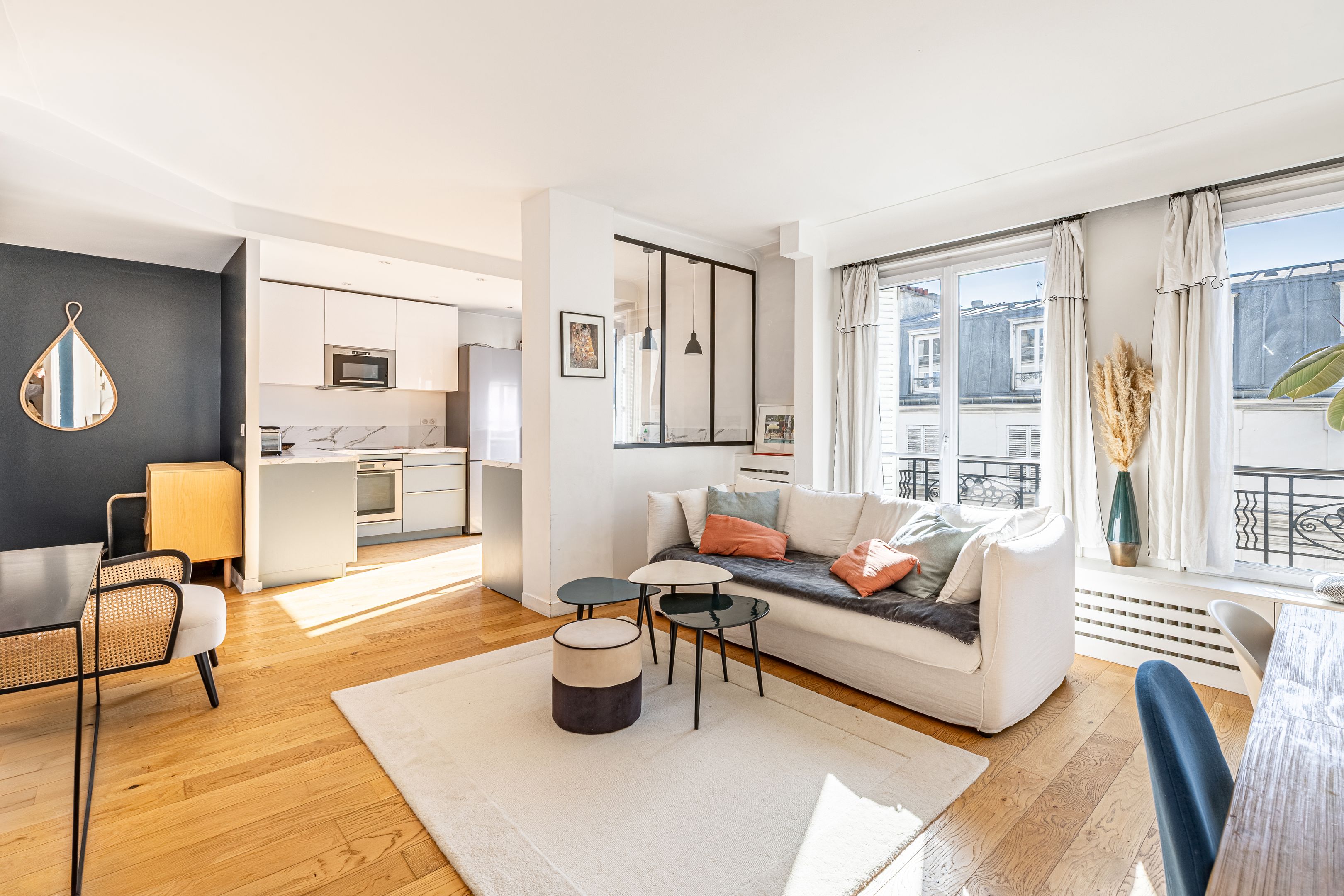 EXCLUSIVITE BRETEUIL. Immeuble de très bon standing aux parties communes bien entretenues, appartement traversant en parfait état de 82m² (81,51m² Loi Carrez) situé au 5ème étage desservi par ascenseur, bénéficiant d'une exceptionnelle luminosité, d'une vue dégagée et d'un plan parfaitement optimisé grâce à une rénovation de qualité. Entrée, séjour, cuisine semi-ouverte séparée par une verrière type atelier, trois chambres de belle taille dont une suite parentale dotée d'une salle de douches et de toilettes, salle de douches, toilettes. Possibilité de louer un emplacement de parking.