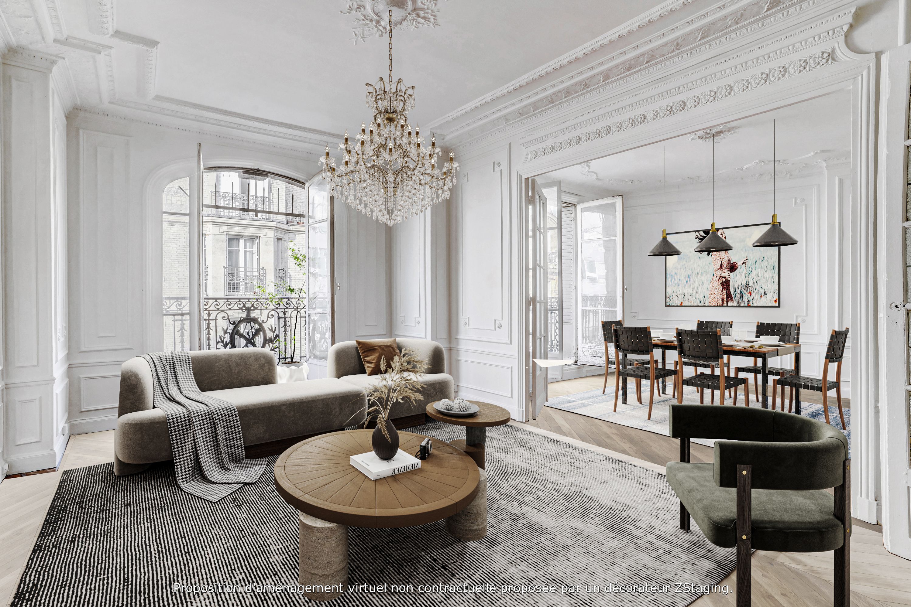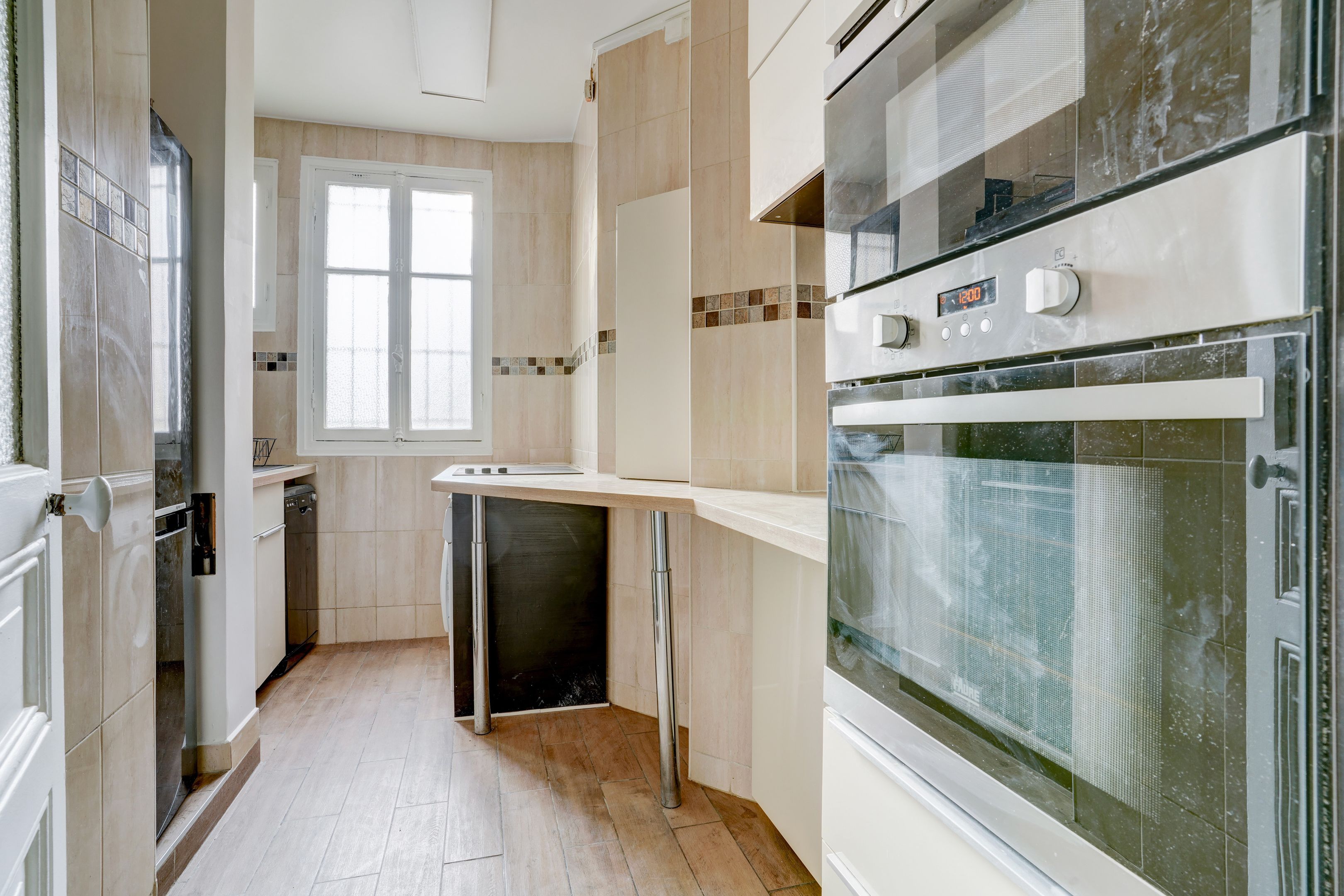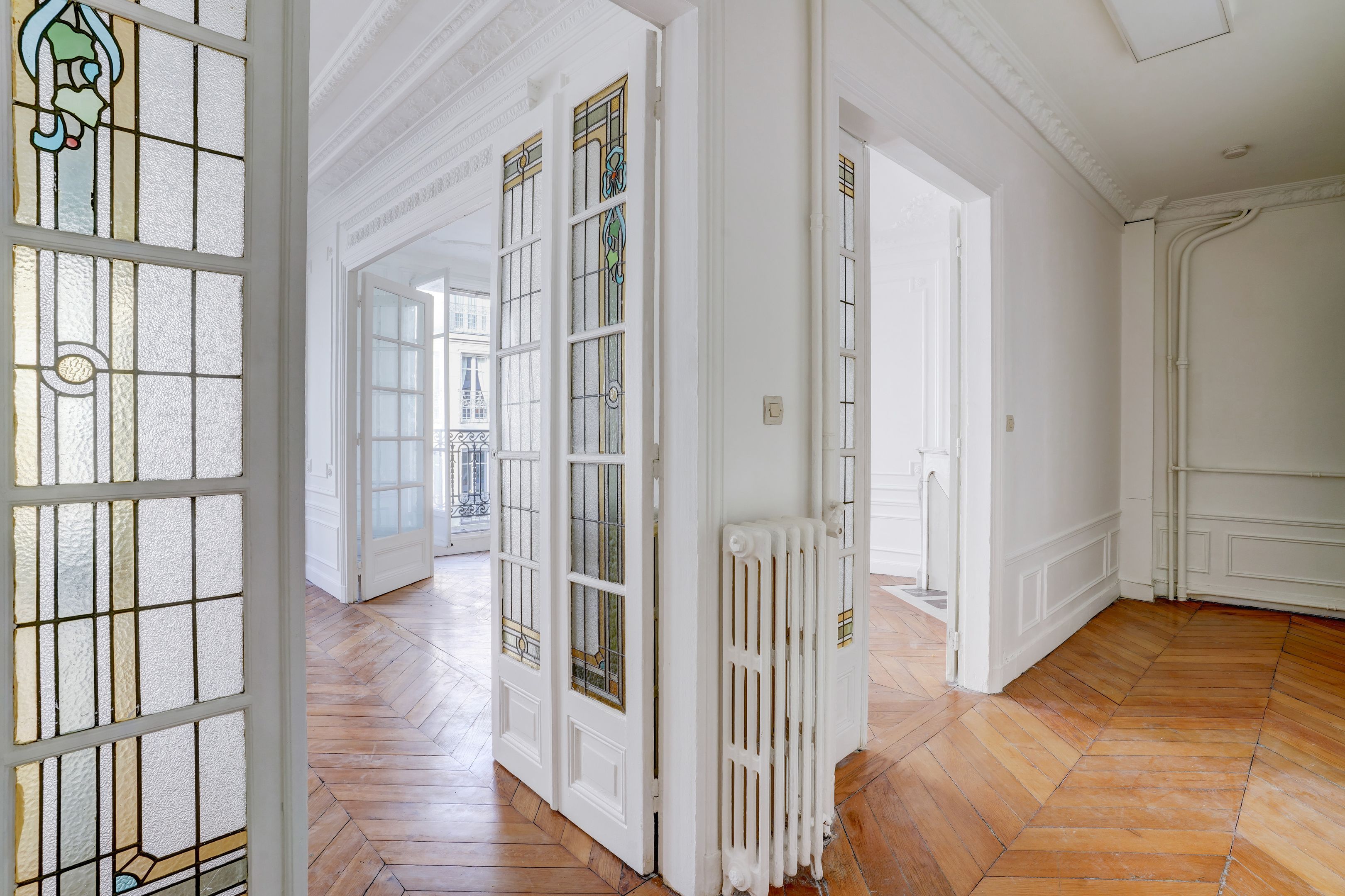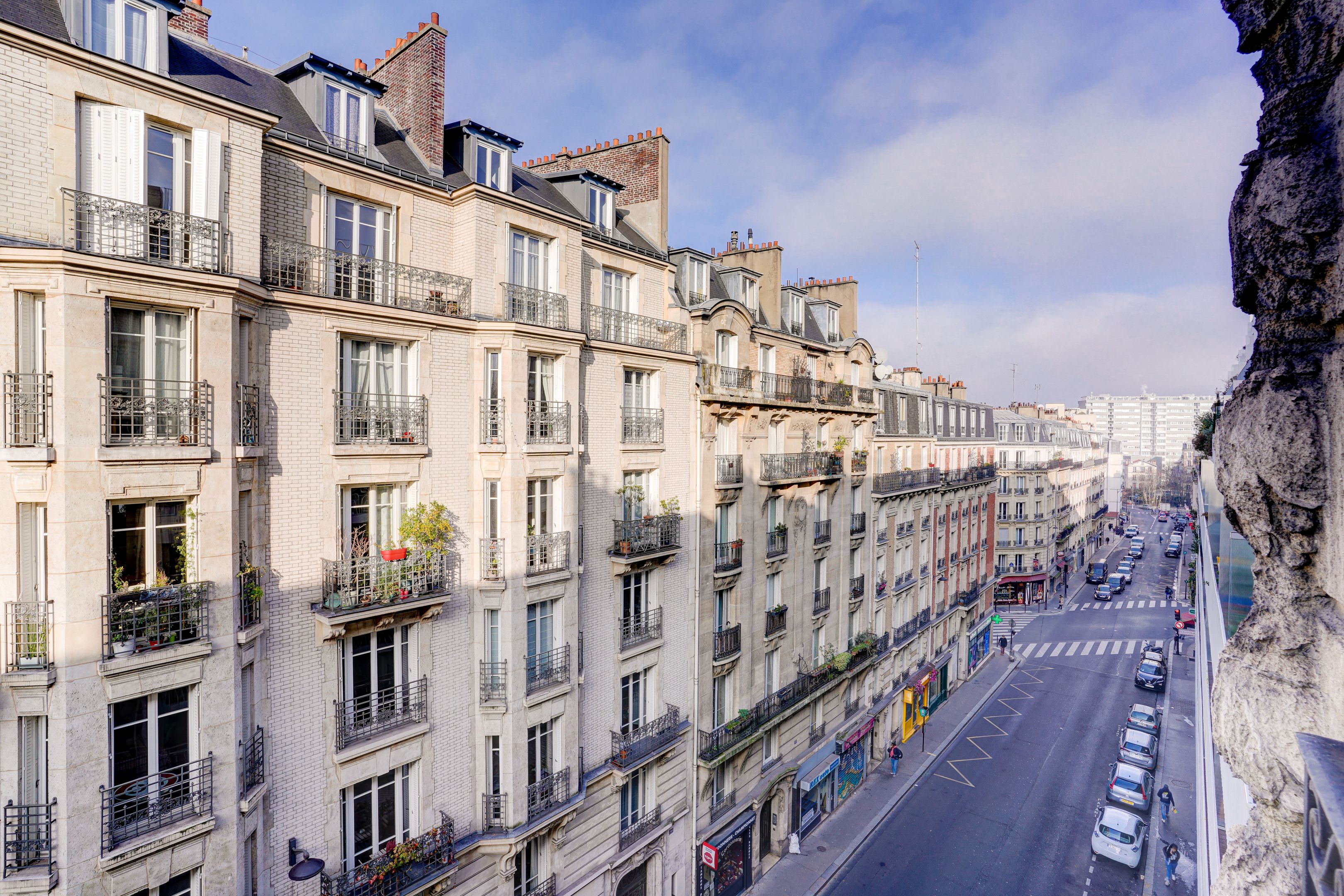 A deux pas de la Mairie et de la butte Montmartre, immeuble pierre de taille, au 5ème étage desservi par ascenseur, appartement de type parquet, moulures, cheminée doté de beaux volumes. Entrée, double réception orientée à l'ouest, dégagement, cuisine séparée , deux chambres au calme coté cour, dont une bénéficiant d'un petit dressing, salle de bains, toilettes séparées. Cave.