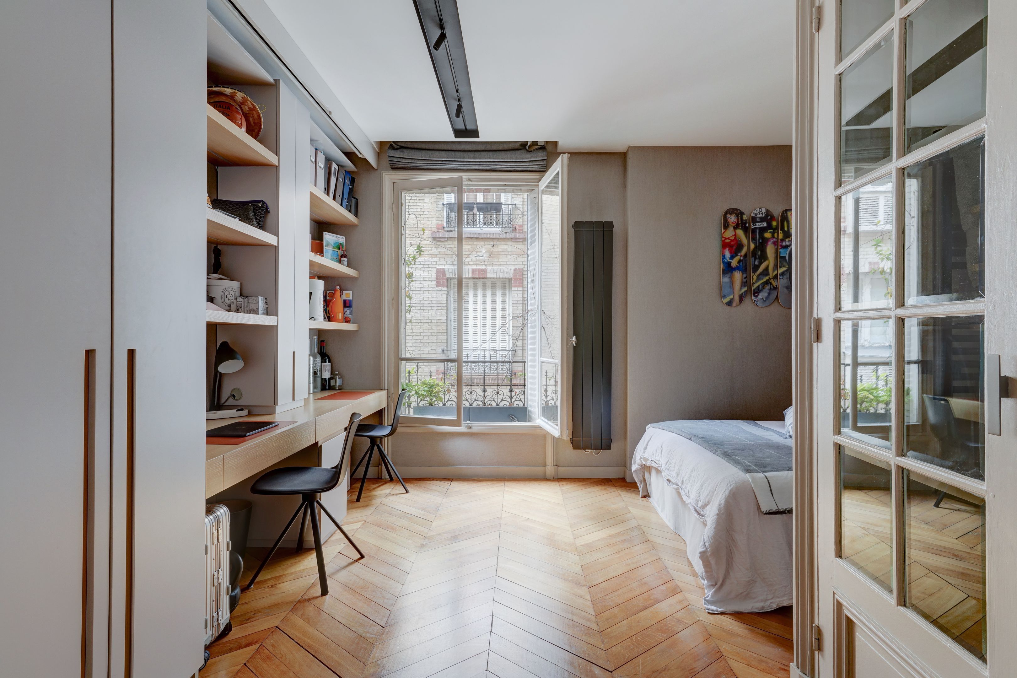 Idéalement situé à Passy, à deux pas des commerces et des écoles, immeuble haussmannien de belle facture, quatrième étage, appartement ensoleillé de 96m2 entièrement rénové et décoré soigneusement. Entrée, double réception orientée au sud-ouest, cuisine entièrement aménagée et équipée, deux chambres, deux salles de douches, dressing et toilettes invités. Vente meublée possible. Cave. Exclusivité Breteuil.