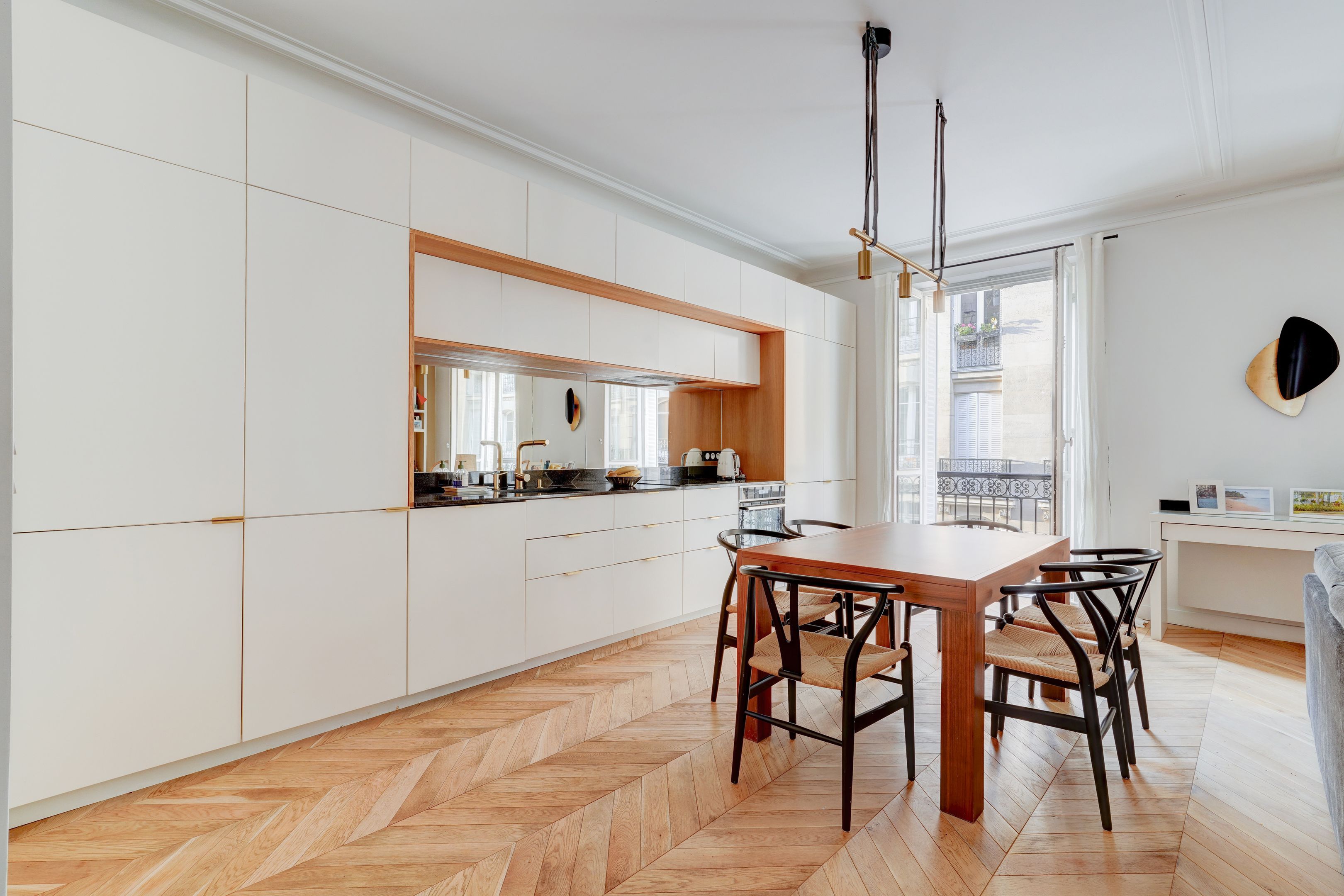 Idéalement situé dans le très prisé quartier des Ternes, avec ses commodités et commerces, au troisième étage d'un bel immeuble ancien bien entretenu. Appartement de 80 m2 en parfait état, refait avec des matériaux de qualité, au plan optimisé. Entrée, double réception dotée de balconnets et d'une cuisine ouverte totalement équipée, deux chambres au calme dont une disposant d'un grand dressing, salle de bains et toilettes indépendantes. Cave. Exclusivité Breteuil.